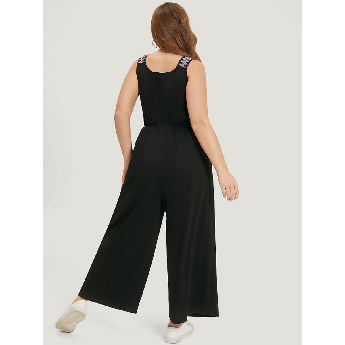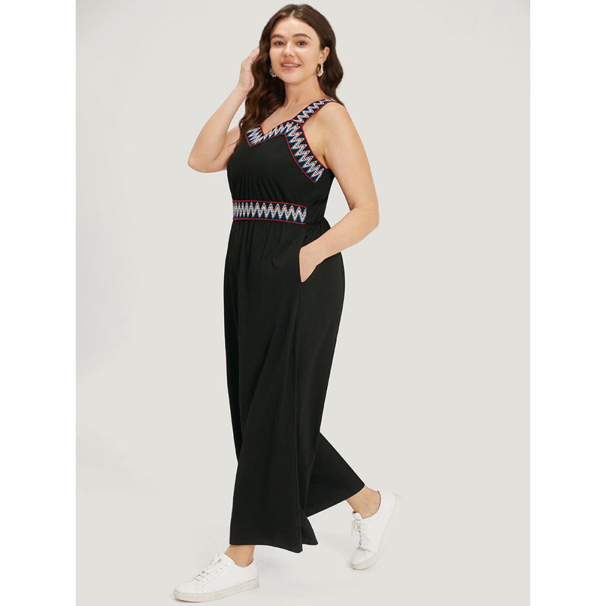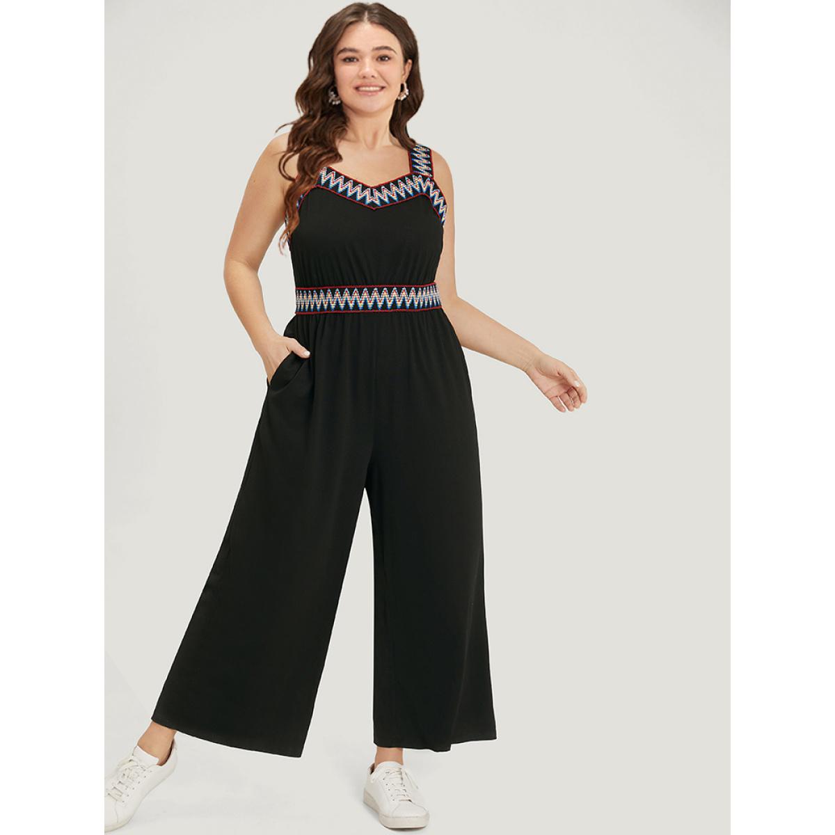 Plus Size Black Contrast Trim Pocket Patchwork Cami Jumpsuit Women Casual Sleeveless Spaghetti Strap Dailywear Loose Jumpsuits BloomChic 30/6X