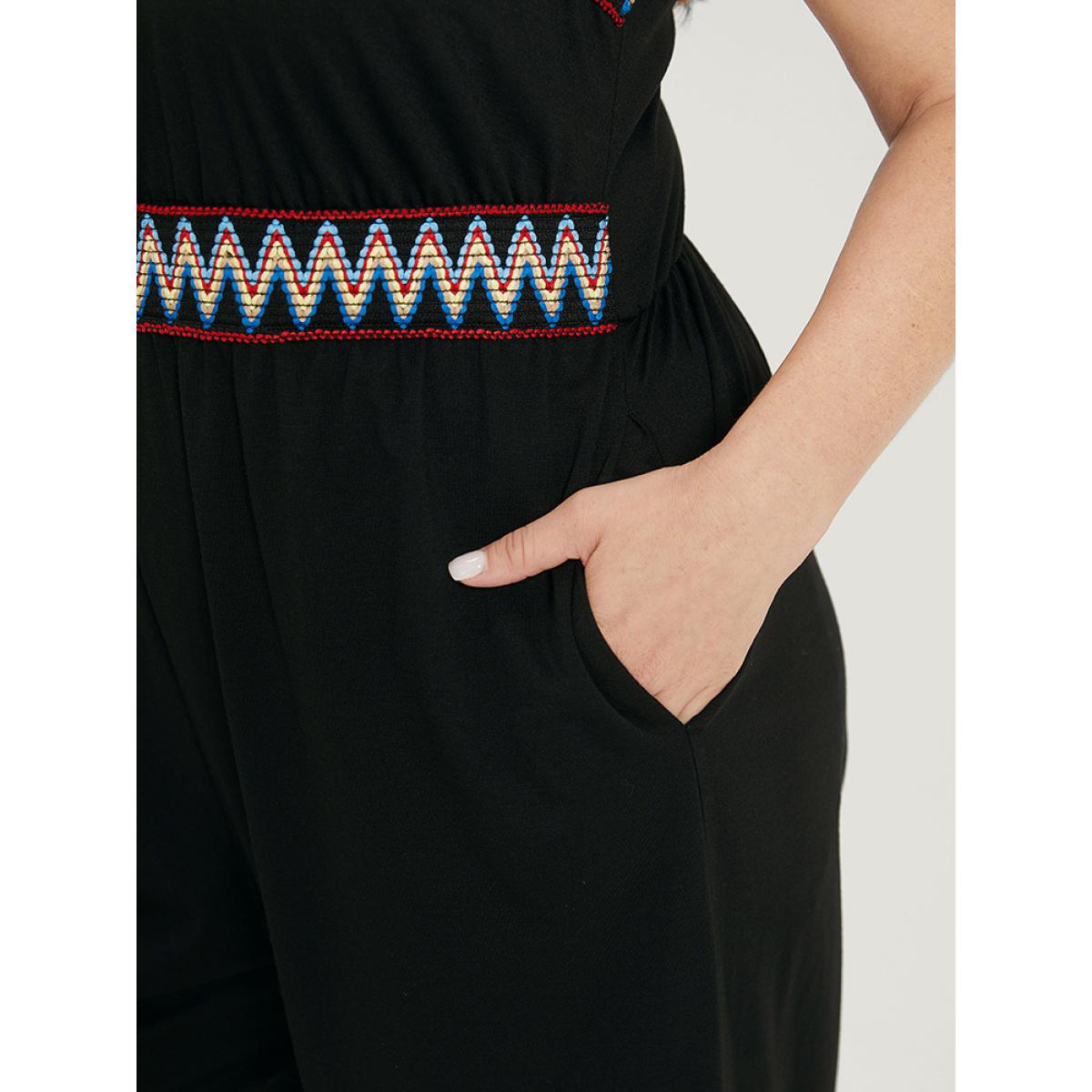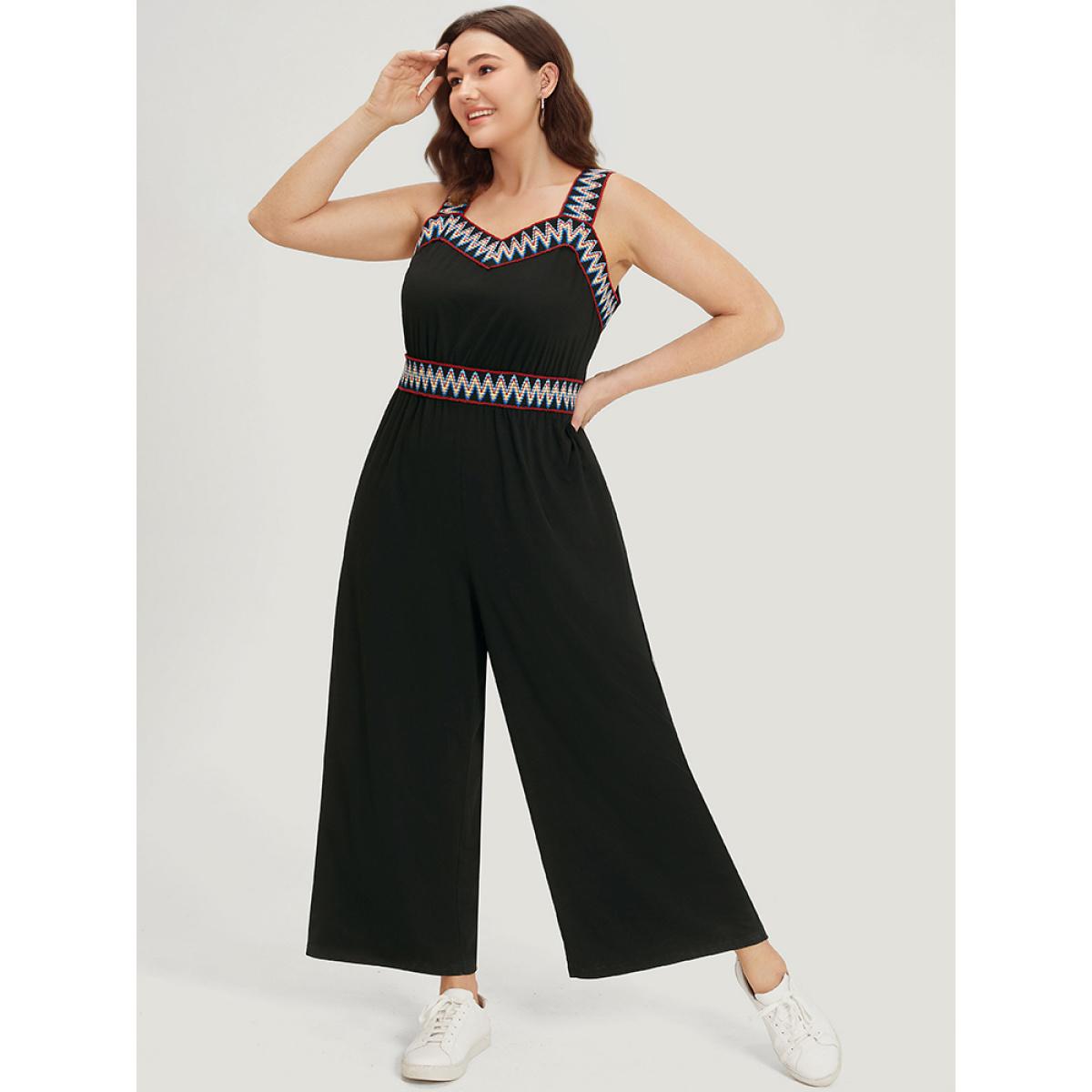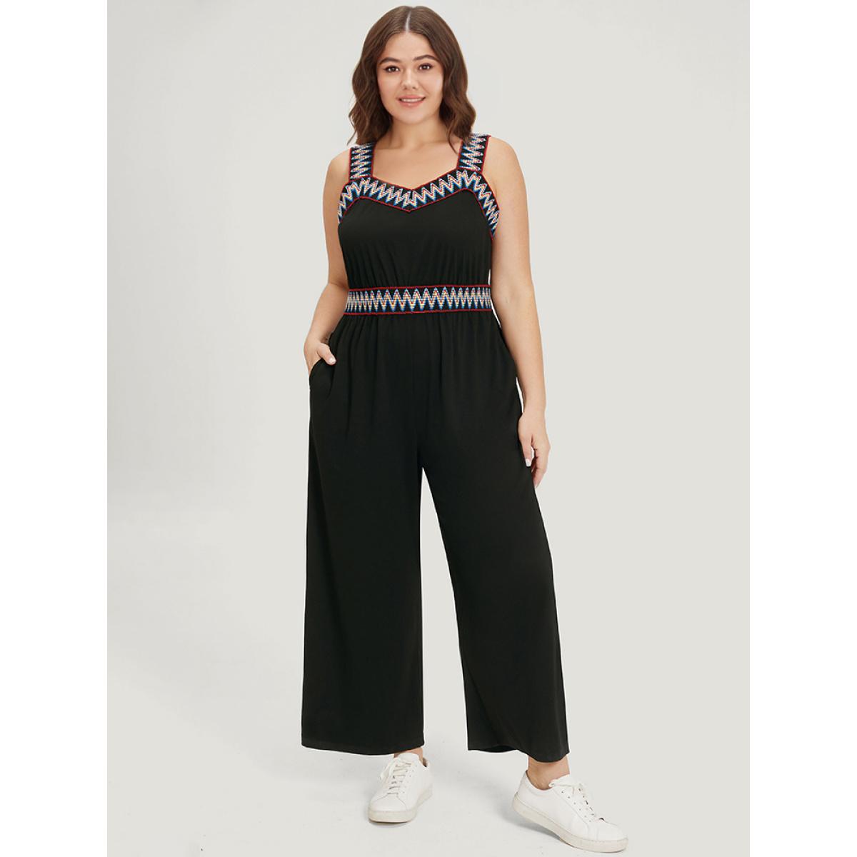 Plus Size Black Contrast Trim Pocket Patchwork Cami Jumpsuit Women Casual Sleeveless Spaghetti Strap Dailywear Loose Jumpsuits BloomChic 30/6X