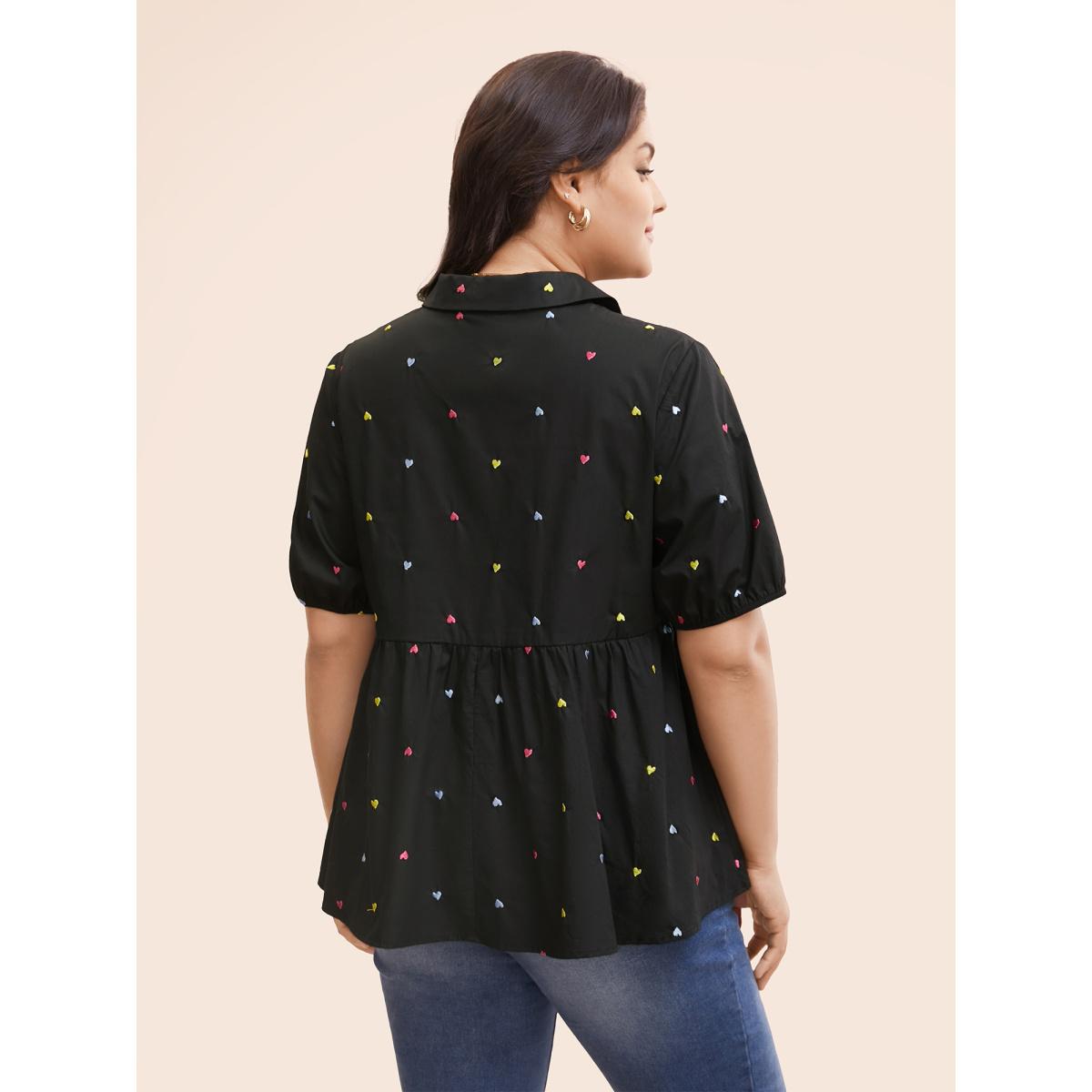 Plus Size Black Cotton Geometric Embroidery Tunic Blouse Women Casual Short sleeve Shirt collar Everyday Blouses BloomChic 18-20/2X