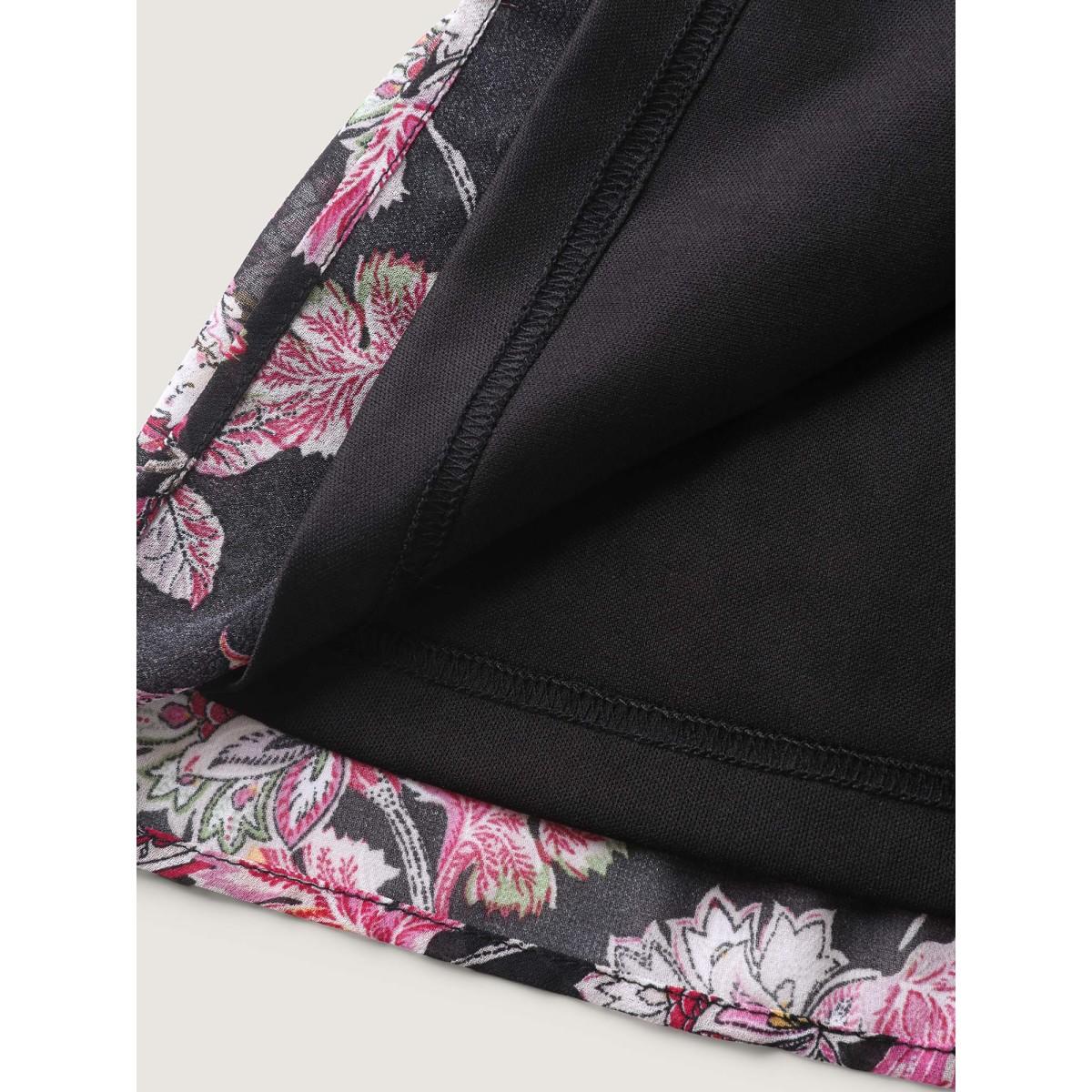 Plus Size BlackFlower Floral Print Shirred Button Detail V Neck Petal Sleeve Blouse Women Vacation Half Sleeve V-neck Dailywear Blouses BloomChic 28/5X