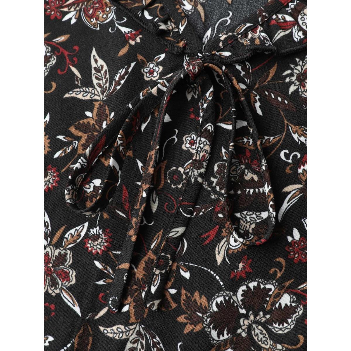 Plus Size Black Floral Print Ruffled Neck Blouse Women Boho Extra Long Sleeve V-neck Vacation Blouses BloomChic 14-16/1X Product Image