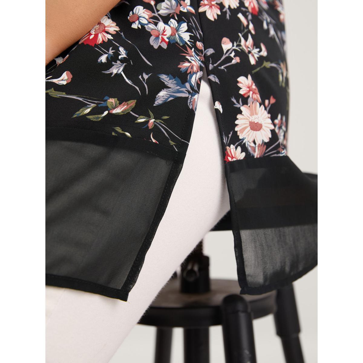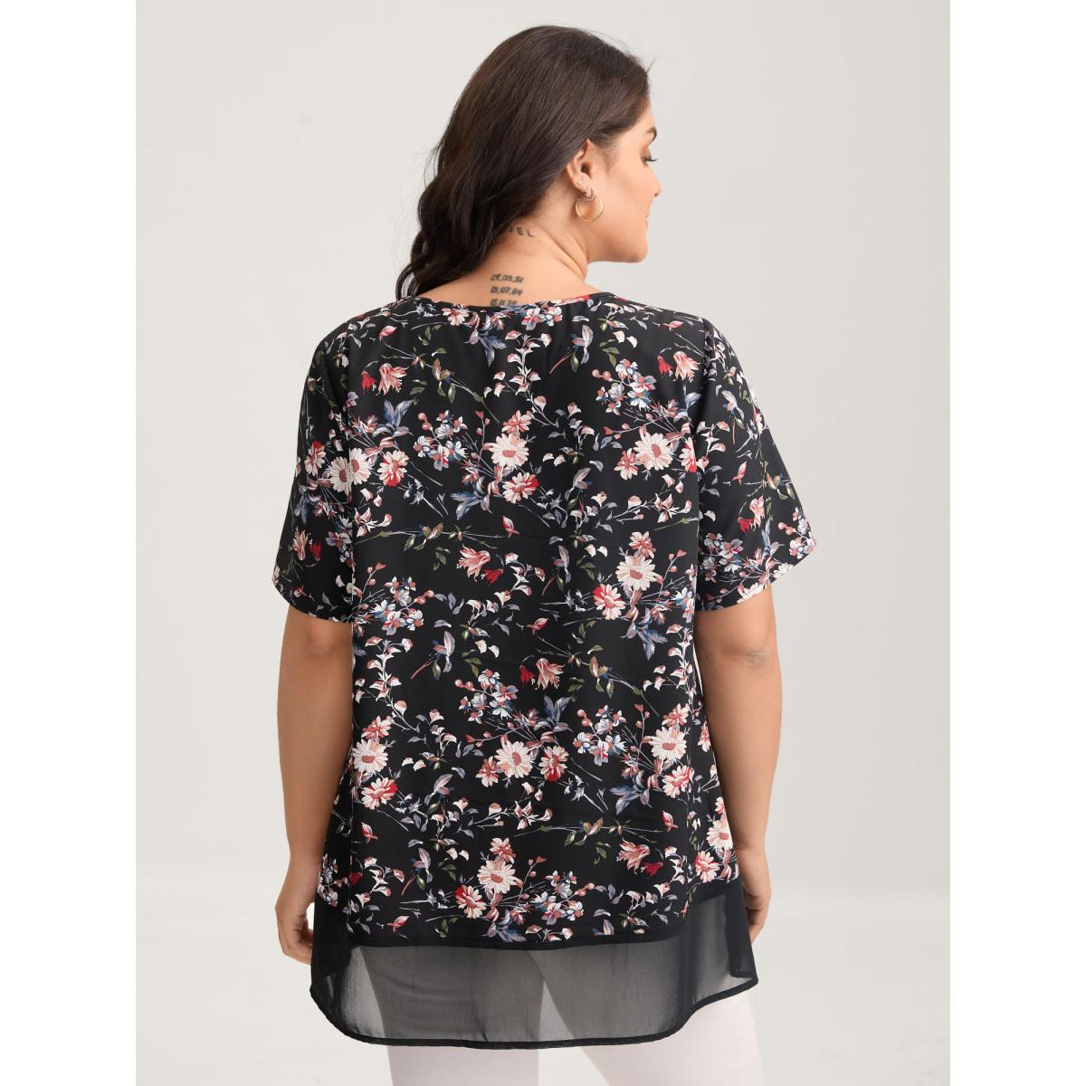 Plus Size BlackFlower Floral Print Layered Ruffle Sleeve Blouse Women Elegant Short sleeve V-neck Dailywear Blouses BloomChic 30/6X