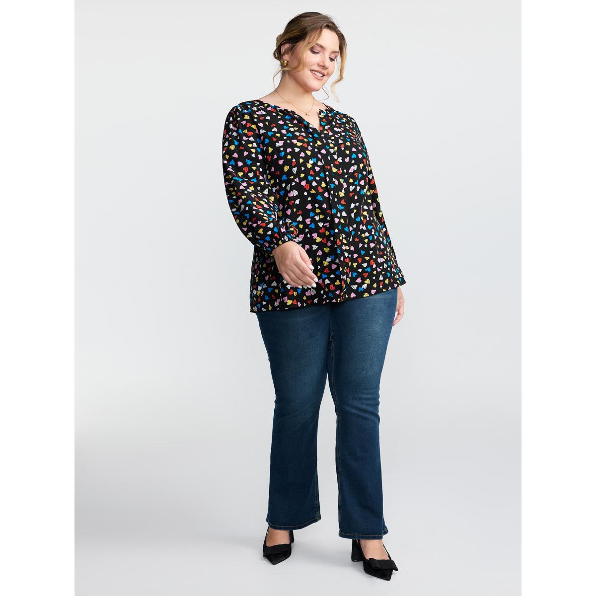 Plus Size Indigo Notched Collar Multi-Color Hearts Blouse Women Elegant Extra Long Sleeve Flat collar with V-notch Everyday Blouses BloomChic 26/4X