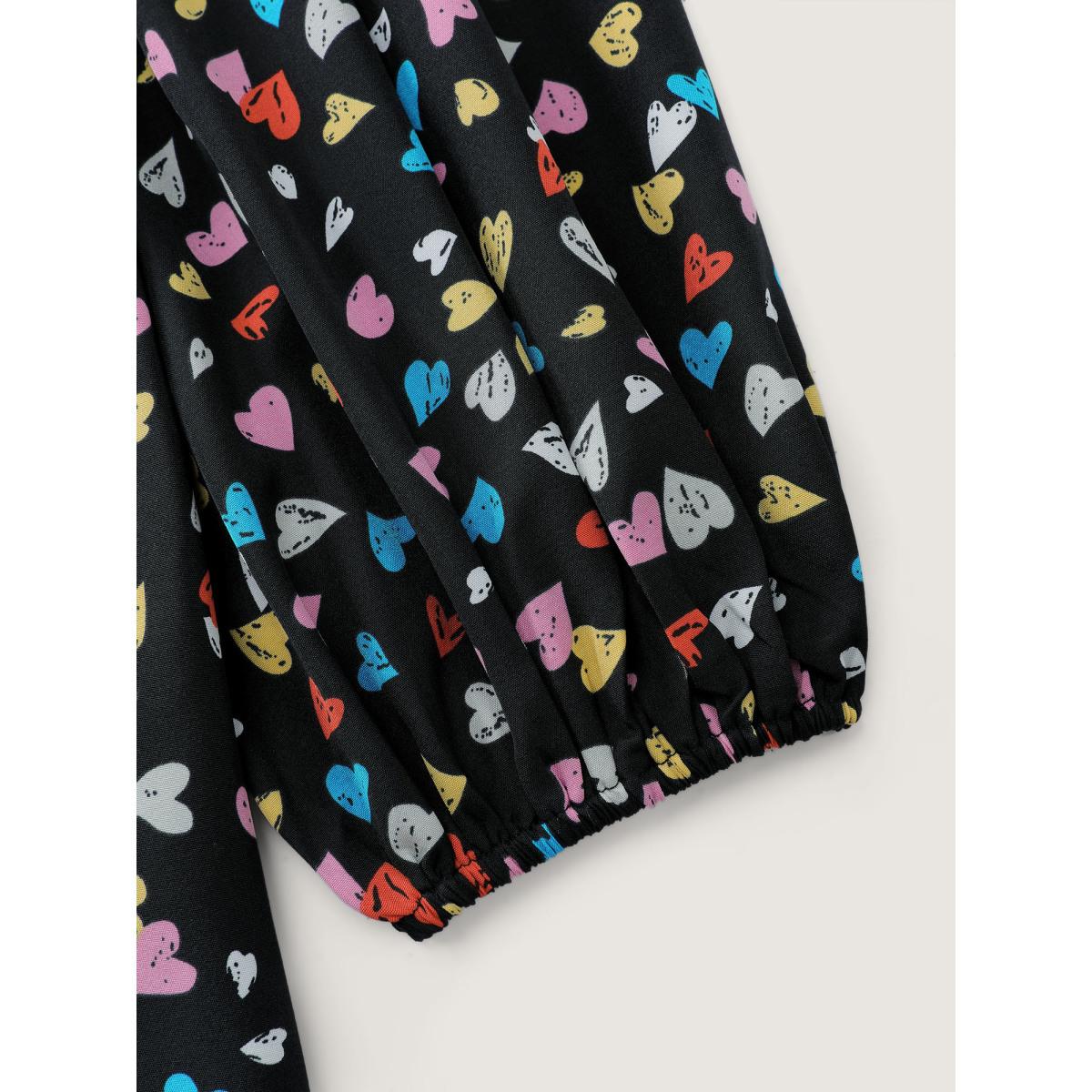 Plus Size Black Heart Print Patchwork Waist-Tie Blouse Women Romantic Extra Long Sleeve Square Neck Elegant Blouses BloomChic 12/L