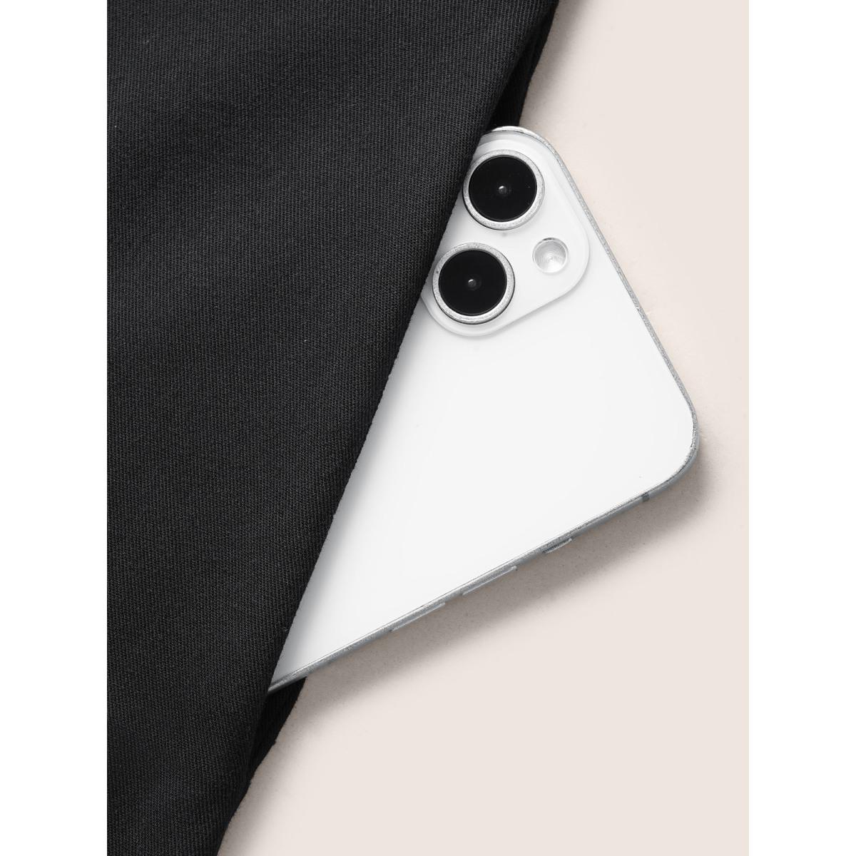 Plus Size Black Rayon Shirt Collar Cuffed Sleeve Pocket Blouse Women Casual Short sleeve Shirt collar Everyday Blouses BloomChic 18-20/2X