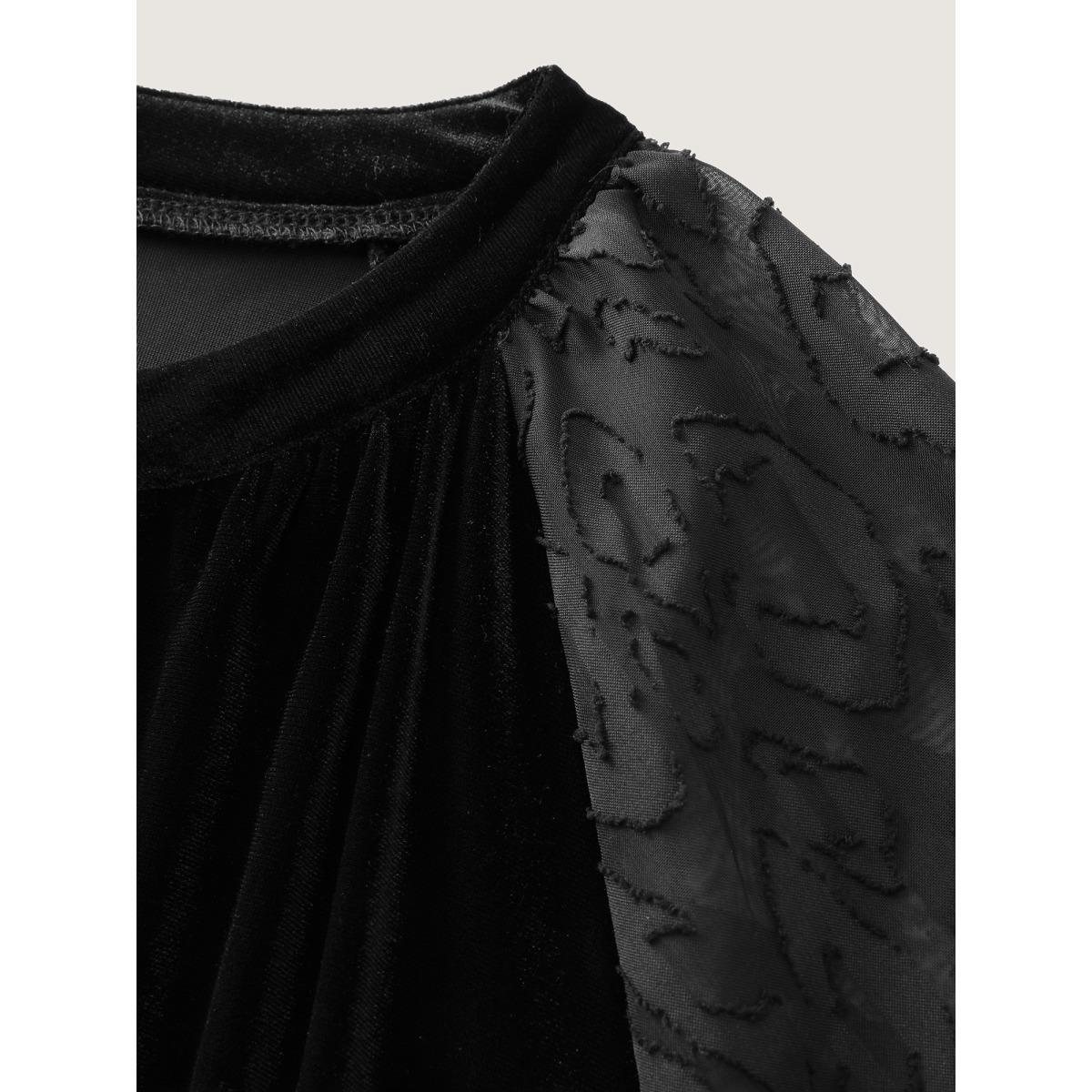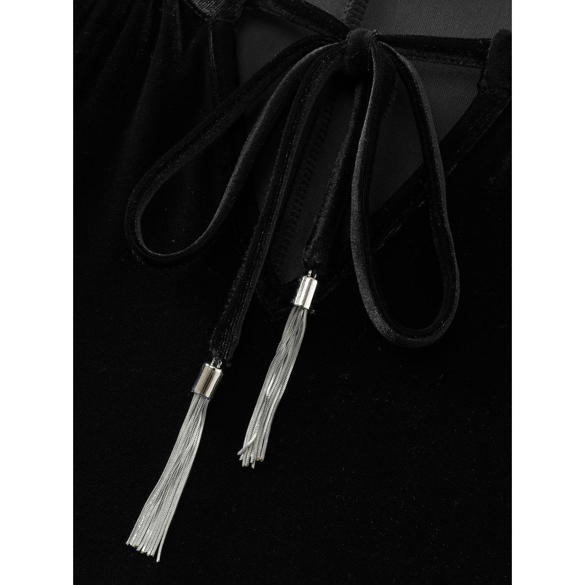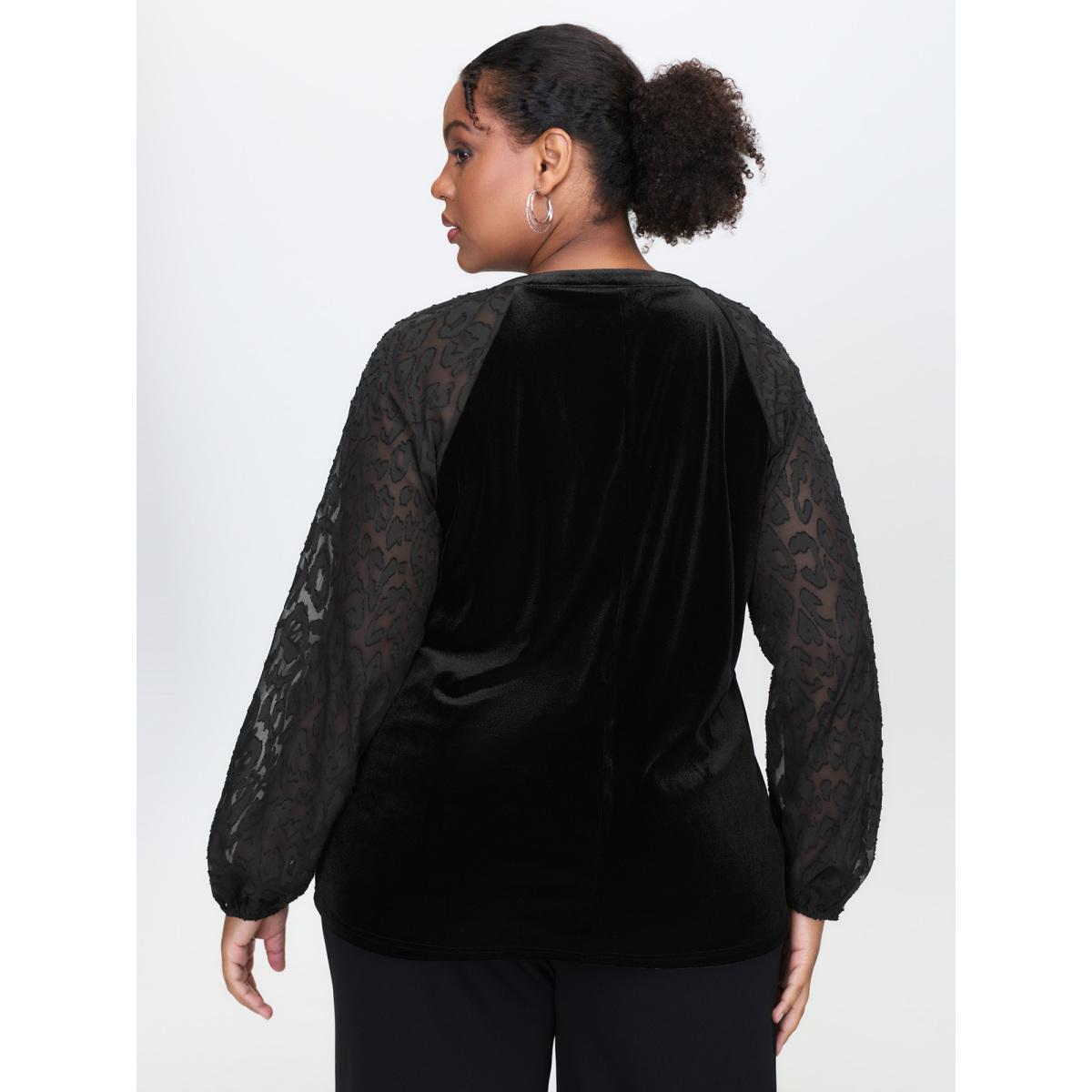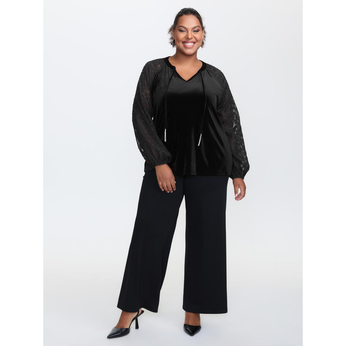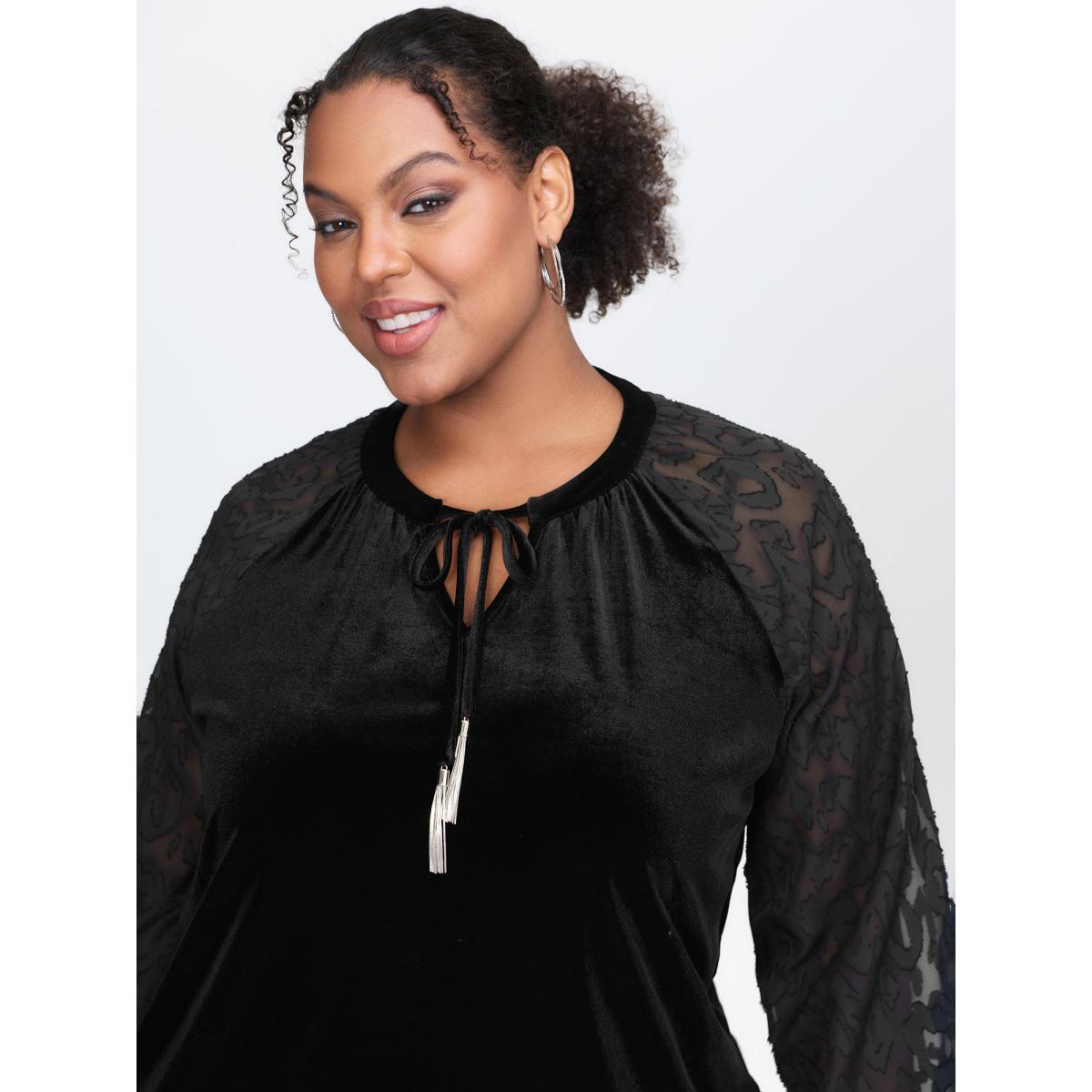Plus Size Black Velvet Leopard Laser Cut Neck-Tie Blouse Women Timeless Long Sleeve Flat collar with V-notch Elegant Blouses BloomChic 26/4X
