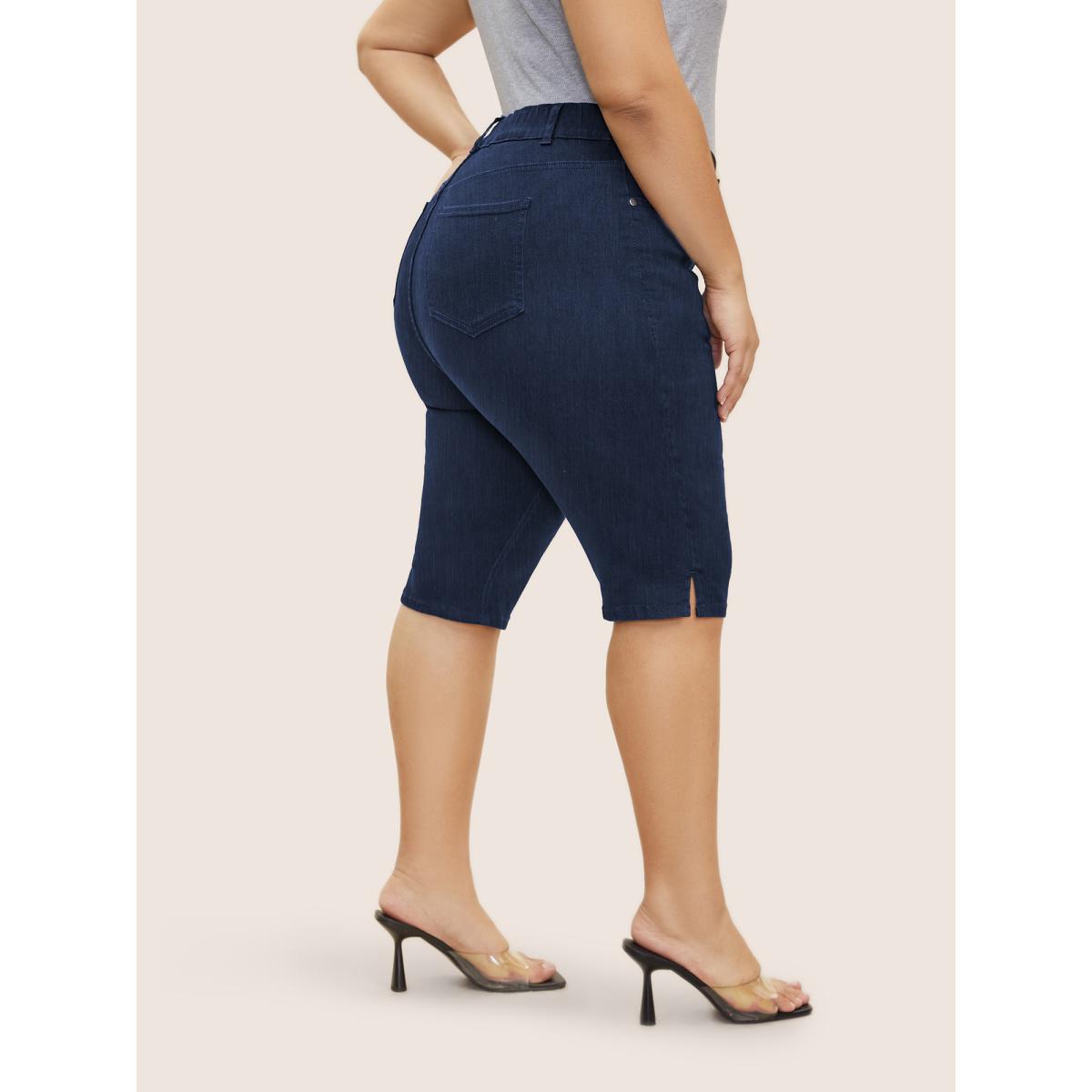 Plus Size Black Wash Split Side Pull-on Jegging Jeans Women Denimindigo Casual Slit High stretch Slanted pocket Jeans BloomChic 22/3X
