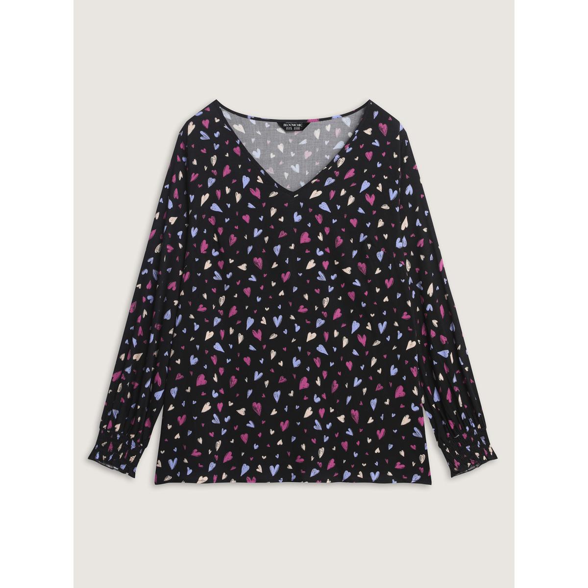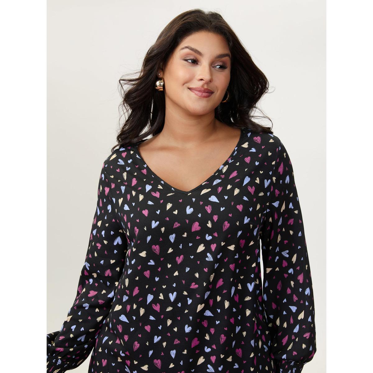 Plus Size BlackFlower Colorful Heart Print V-Neck Blouse Women Leisure Extra Long Sleeve V-neck Casual Blouses BloomChic 26/4X Product Image