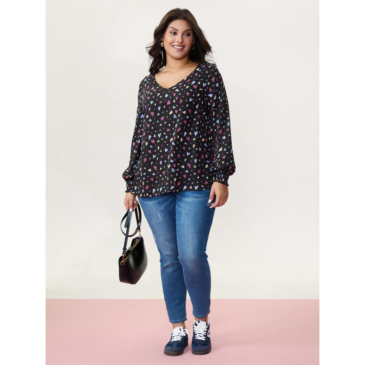 Plus Size BlackFlower Colorful Heart Print V-Neck Blouse Women Leisure Extra Long Sleeve V-neck Casual Blouses BloomChic 26/4X