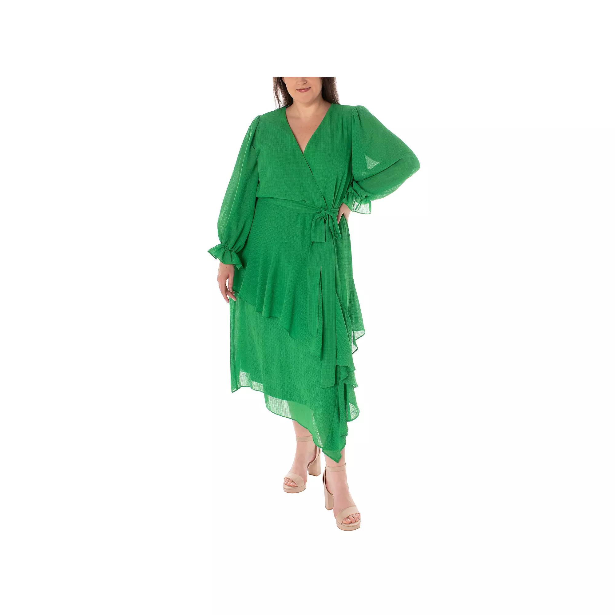Update your wardrobe with this stylish Plus Size Bleecker 126 Modern Ruffle Midi Dress.Click on this WOMENS GUIDE to find the perfect fit and more! Update your wardrobe with this stylish Plus Size Bleecker 126 Modern Ruffle Midi Dress. Click on this WOMENS GUIDE to find the perfect fit and more! FEATURES Surplice neckline Bracelet sleeves Balloon sleeves Faux-wrap silhouette Elastic cuffs Coordinating sash Straight hem Zipper back Fully linedFIT & SIZING 52-in. length from shoulder to hem Midi length hits below the kneeFABRIC & CARE Polyester/Spandex Lining: Polyester Hand wash Imported Size: 14 W. Color: Green. Gender: female. Age Group: adult.