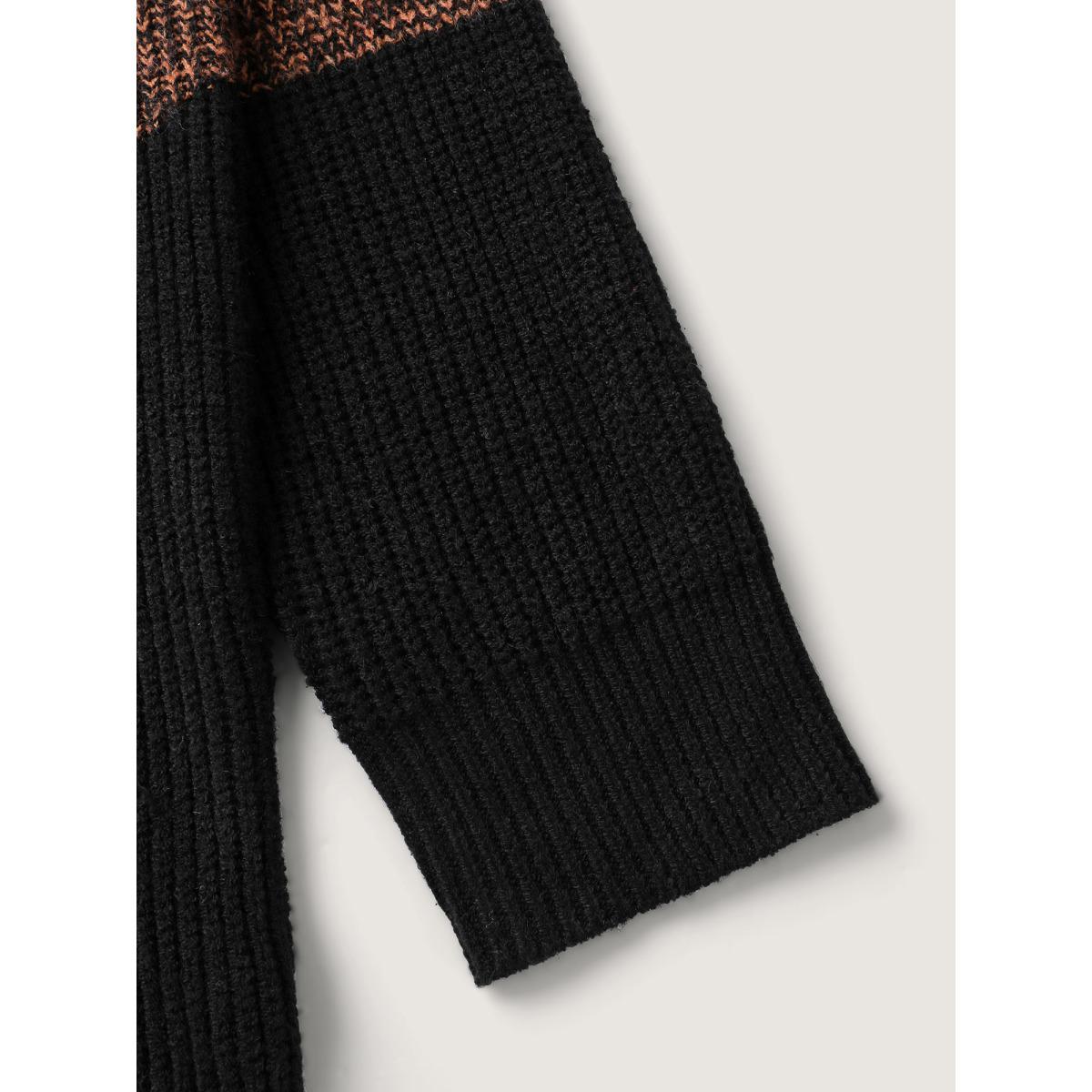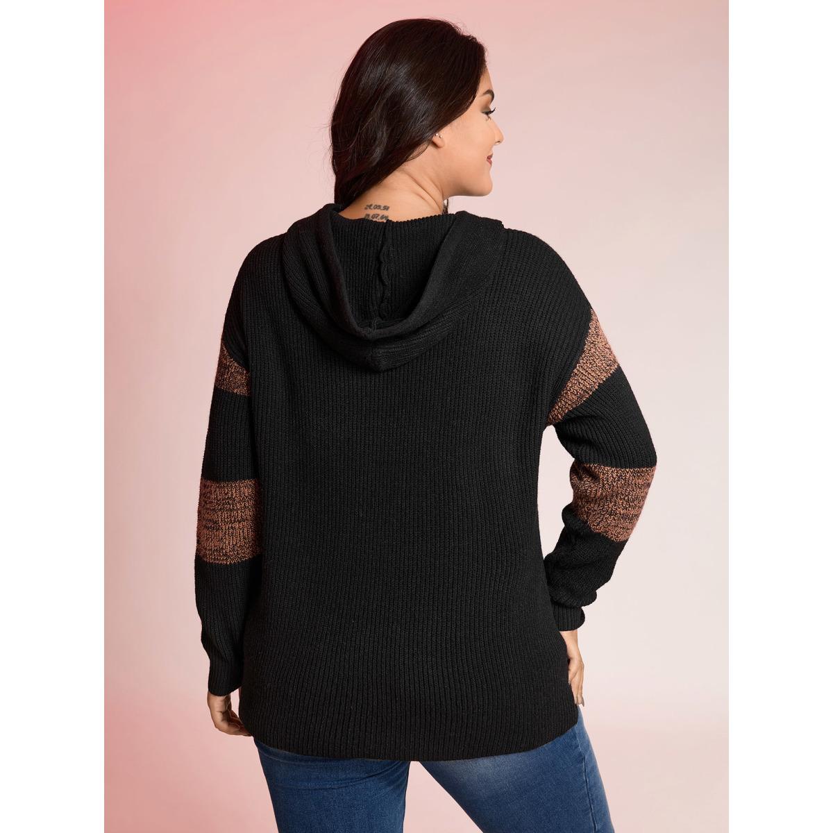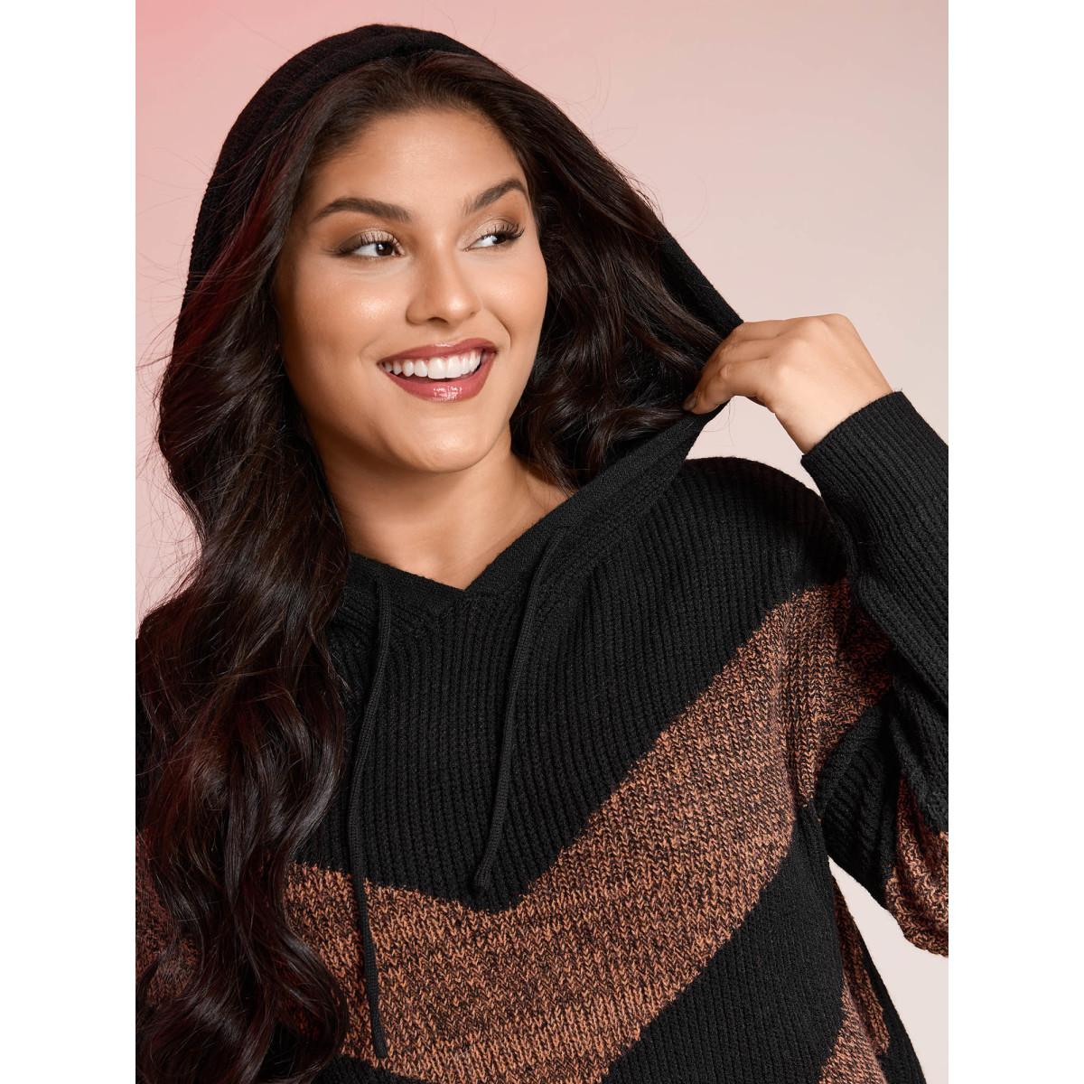 Plus Size Blended Yarn Colorblock Hooded Pullover Black Women Leisure Loose Long Sleeve Hooded Casual Pullovers BloomChic 26/4X