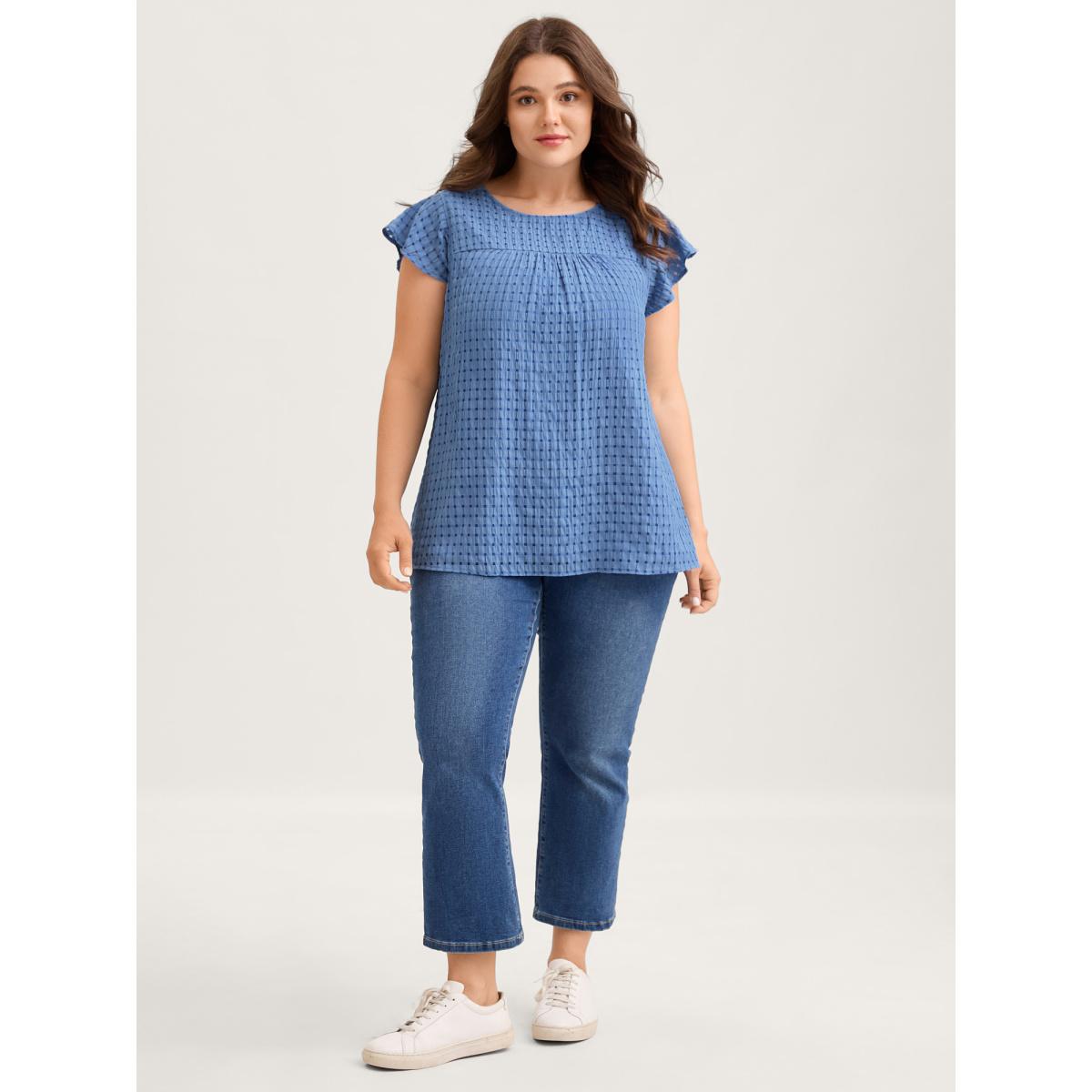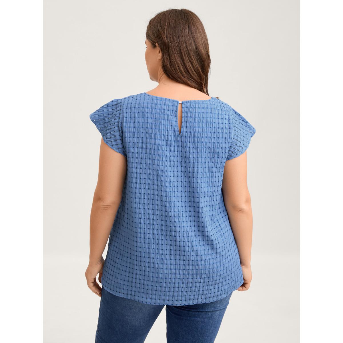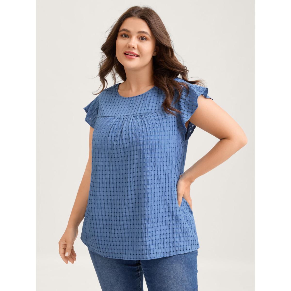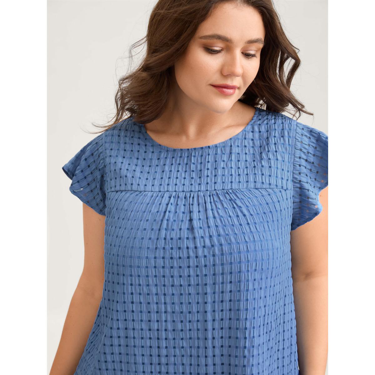 Plus Size Bluepurple Textured Sheer Lined Flutter Sleeve Blouse Women Leisure Cap Sleeve Round Neck Casual Blouses BloomChic 22-24/3X