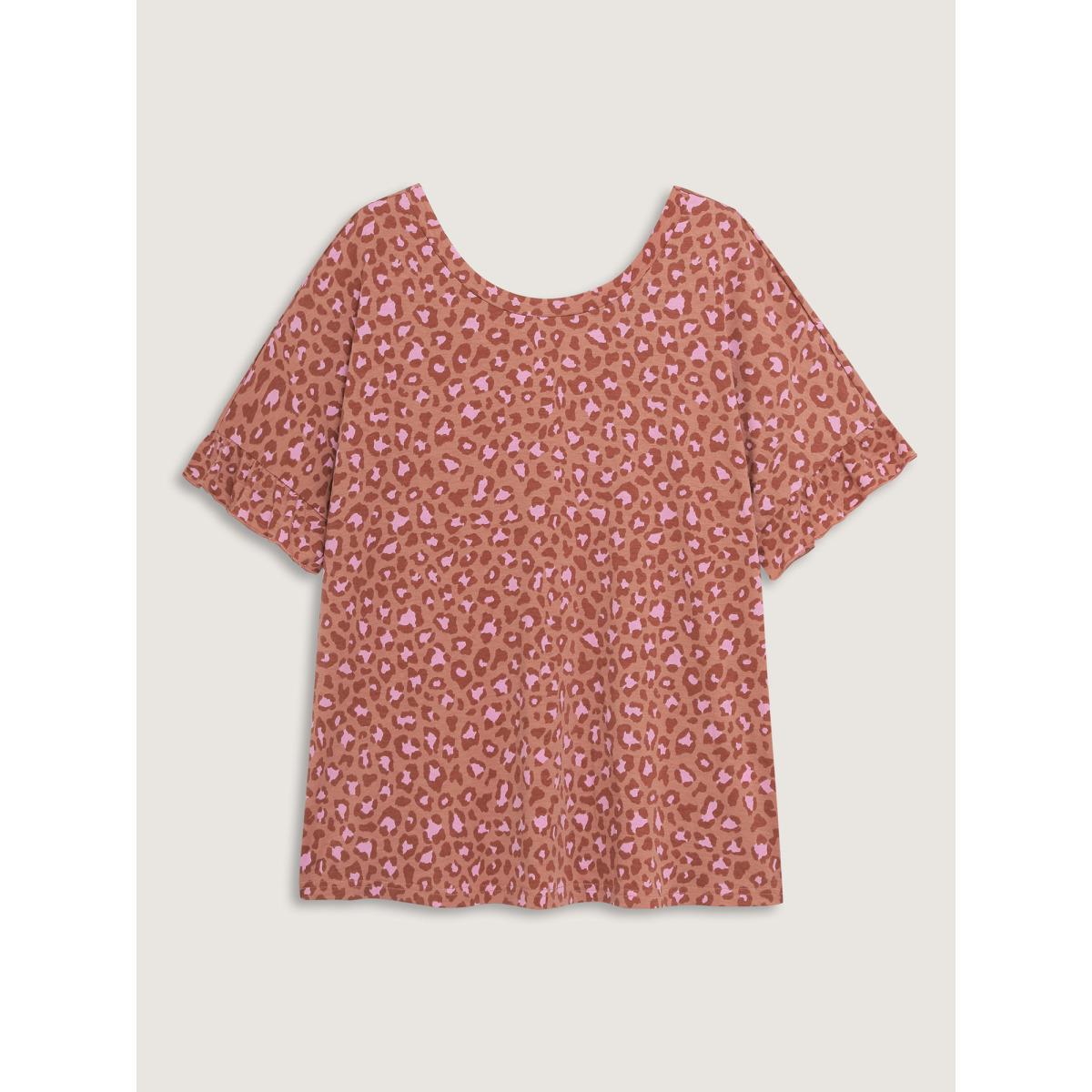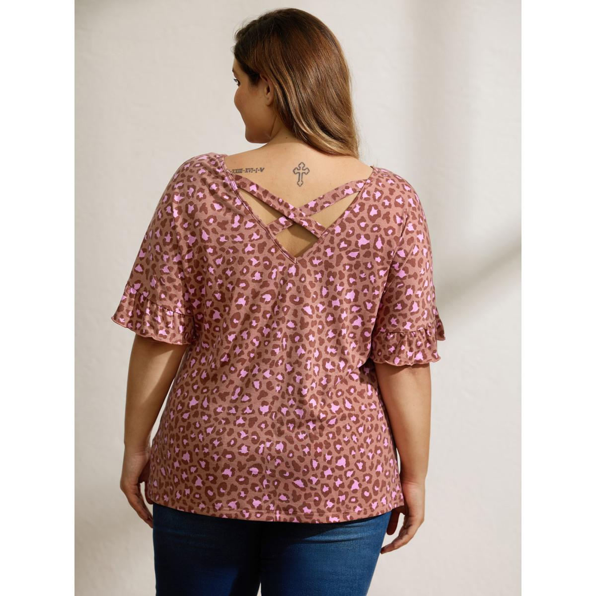 Plus Size Blushing Leopard Print Cross-Strap Back T-Shirt Salmon Women Playful Round Neck Casual T-shirts BloomChic 22-24/3X