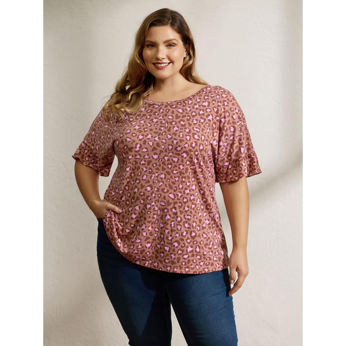 Plus Size Rosy Leopard Print Relaxed T-Shirt Peach Women Non V-neck Everyday-Casual T-shirts BloomChic 10/M