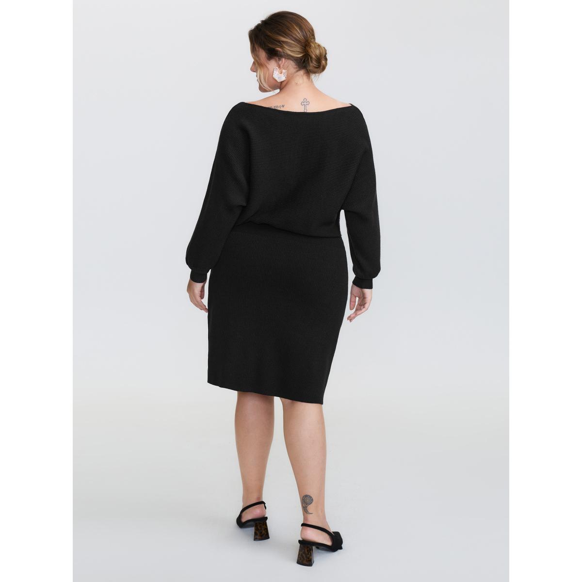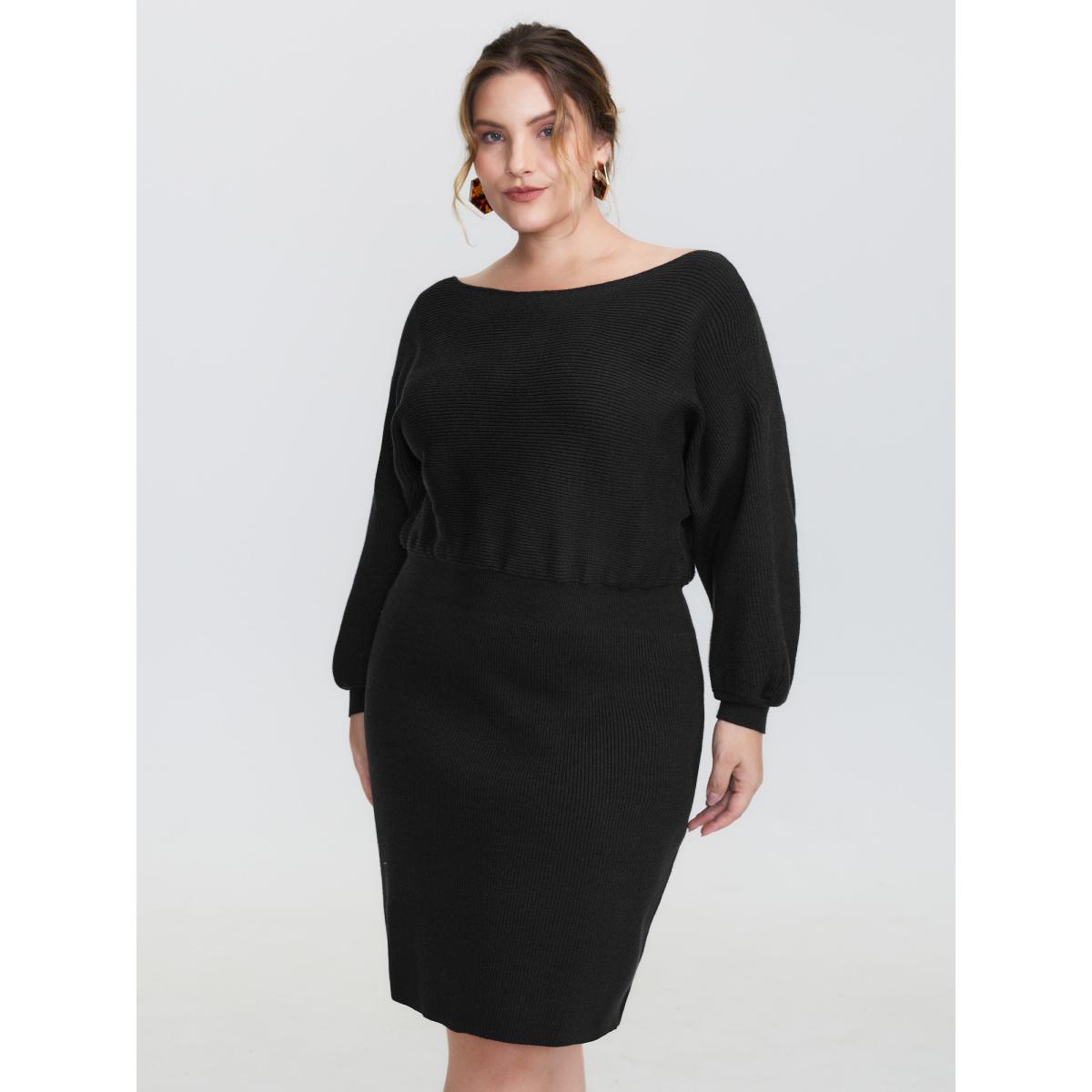 Plus Size Boatneck Textured Dolman Sleeve Sweater Dress Black Women Timeless Bodycon Long Sleeve Elegant Sweater Dresses BloomChic 10/M