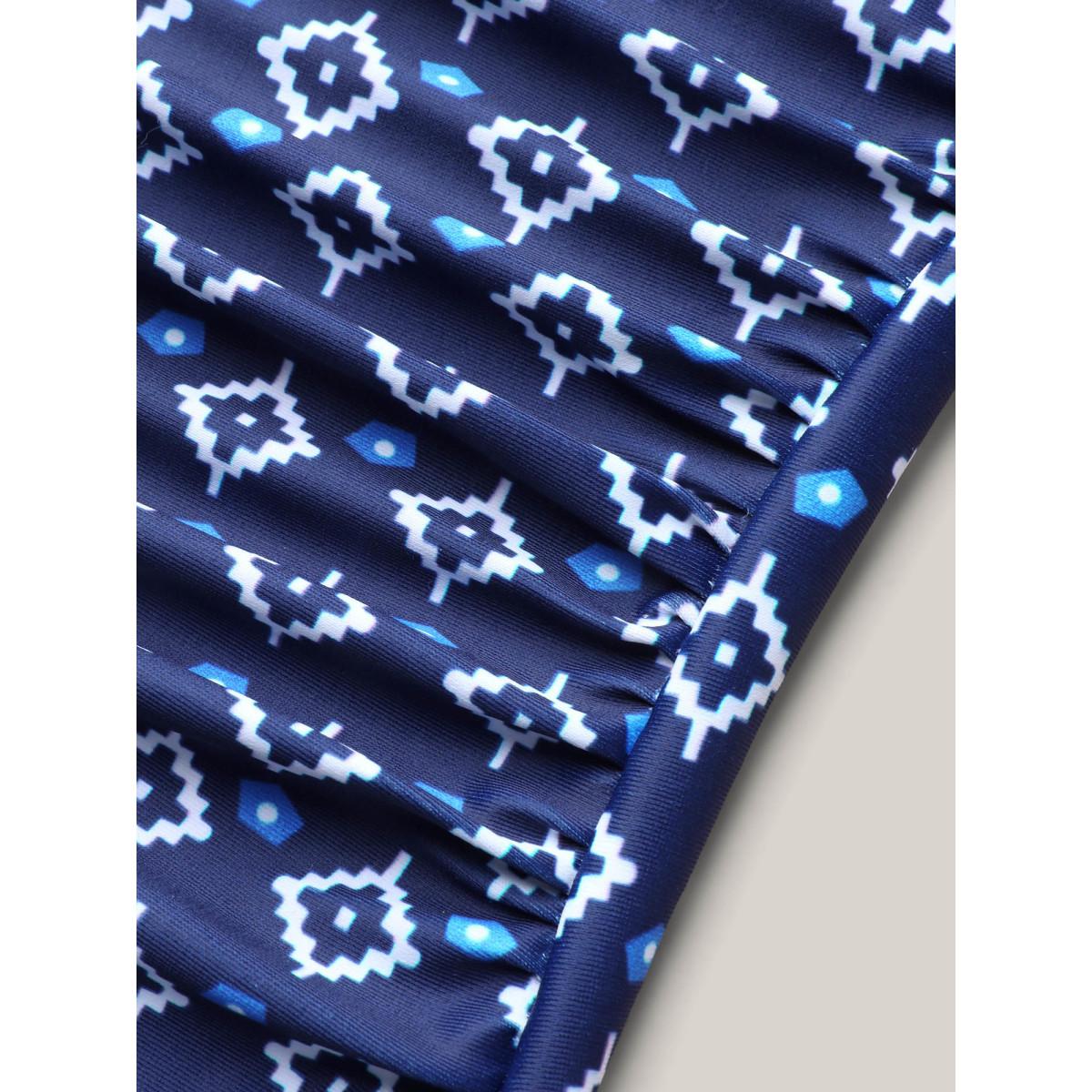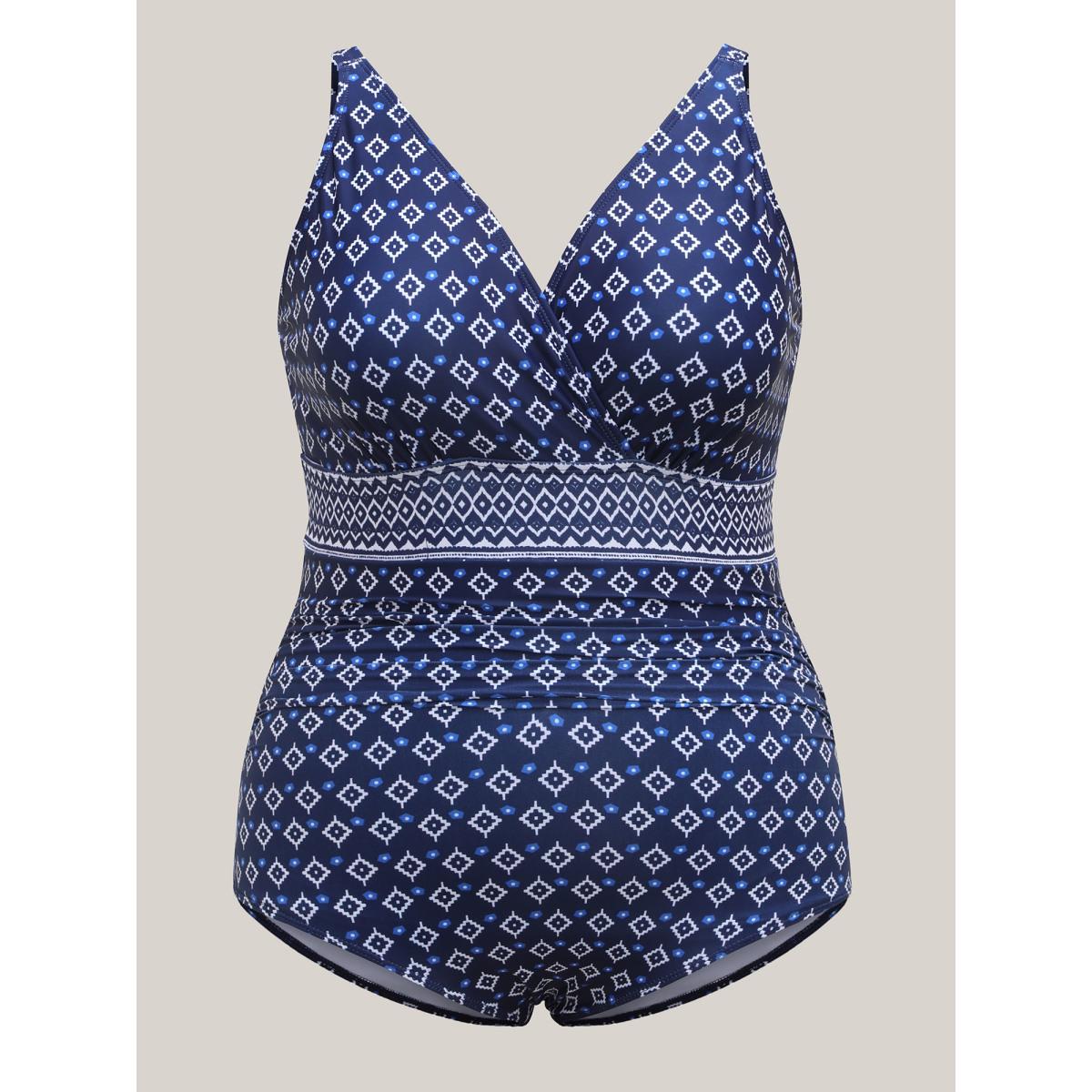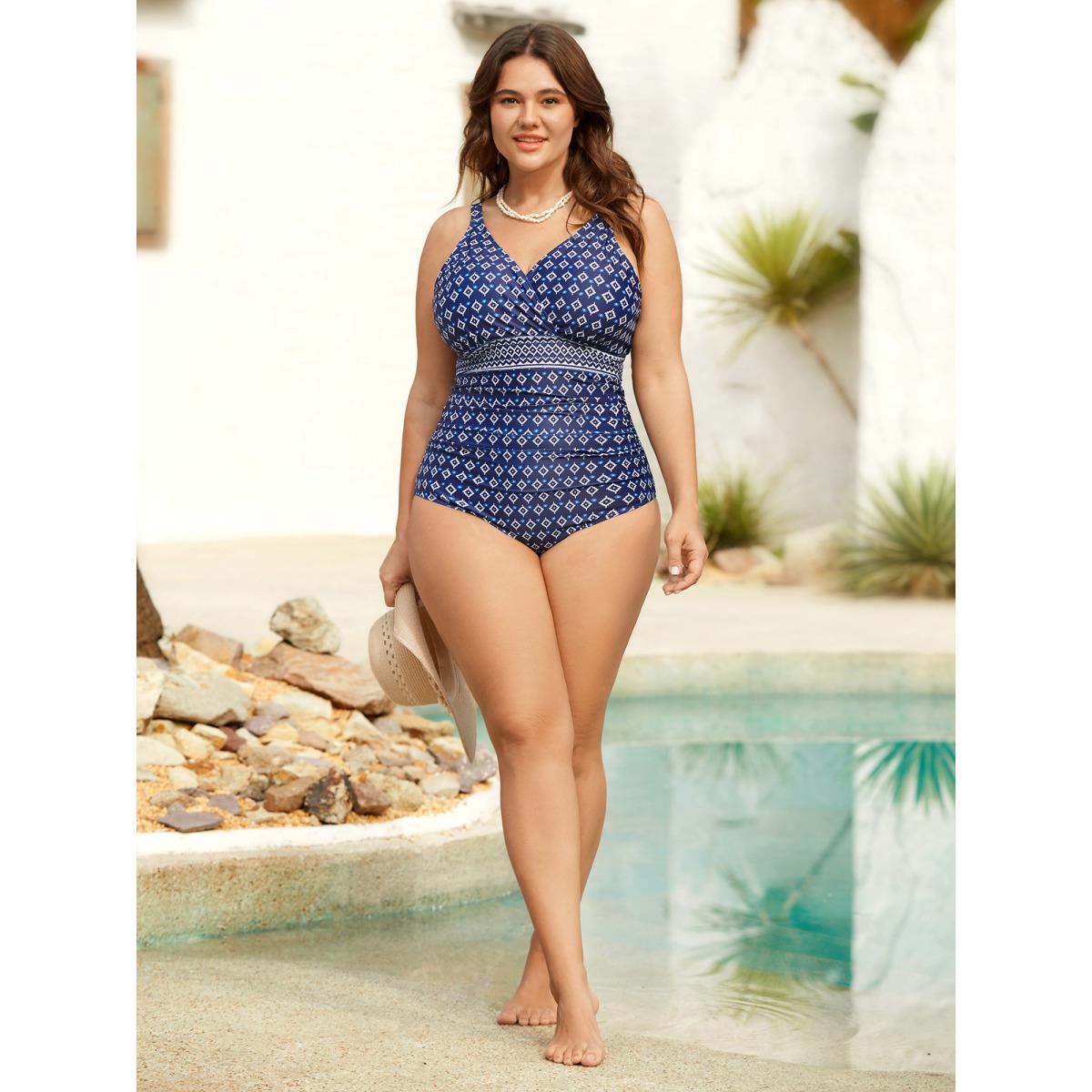 Plus Size Boho Print Color Contrast One-Piece Swimsuit Women's Swimwear Indigo Resort Contrast Curve Bathing Suits High stretch One Pieces BloomChic 26/4X