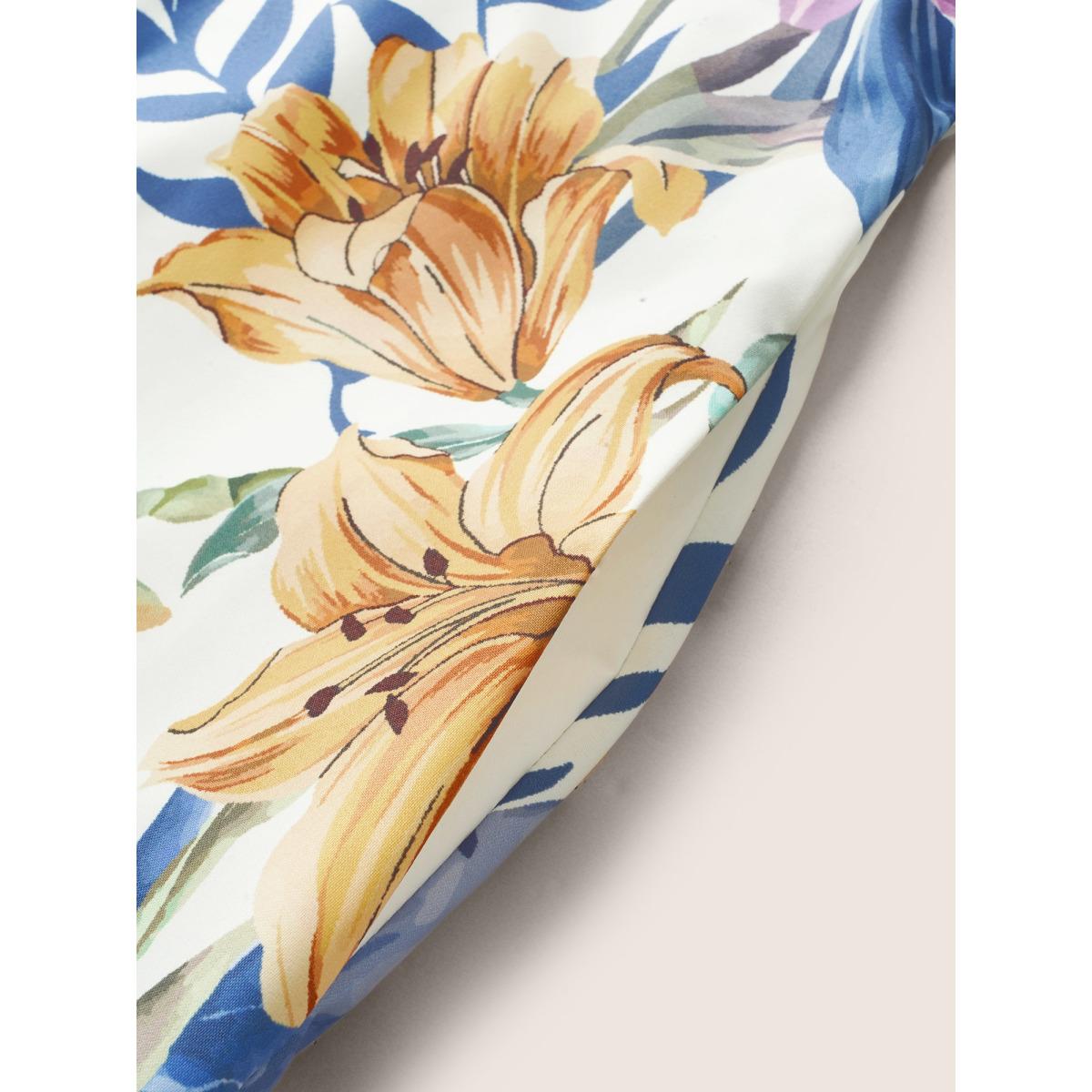 Plus Size Floral Print Shirred Cami Midi Dress Originalwhite Women Resort Square Neck Sleeveless Curvy BloomChic 26/4X