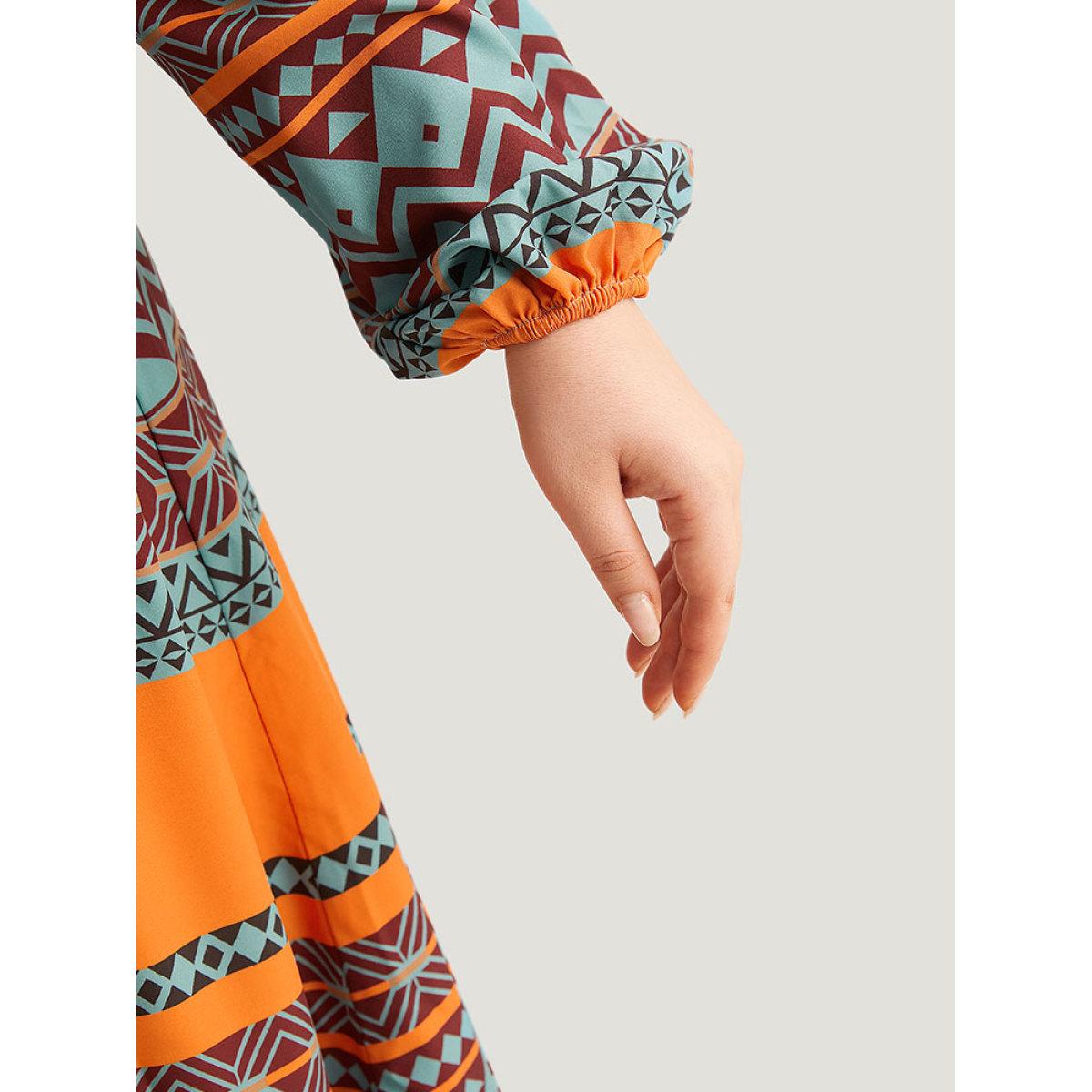 Plus Size Boho Print Tassel Tie Neck Dress OrangeRed Women Vacation Elastic cuffs Tie Neck Long Sleeve Curvy Midi Dress BloomChic 30/6X Product Image