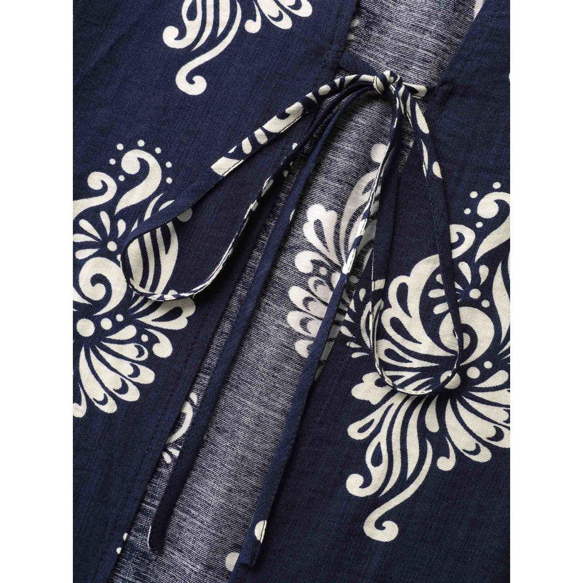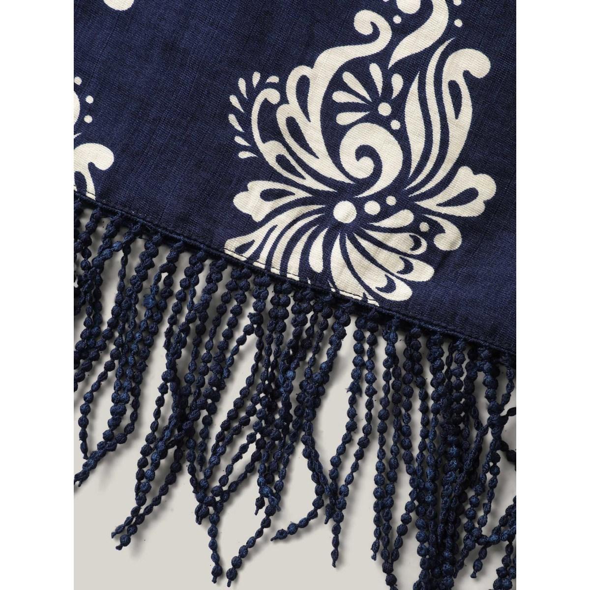 Plus Size Boho Print Tassels Hem Kimono Women Indigo Tie knot Loose Vacation Kimonos BloomChic 30/6X Product Image