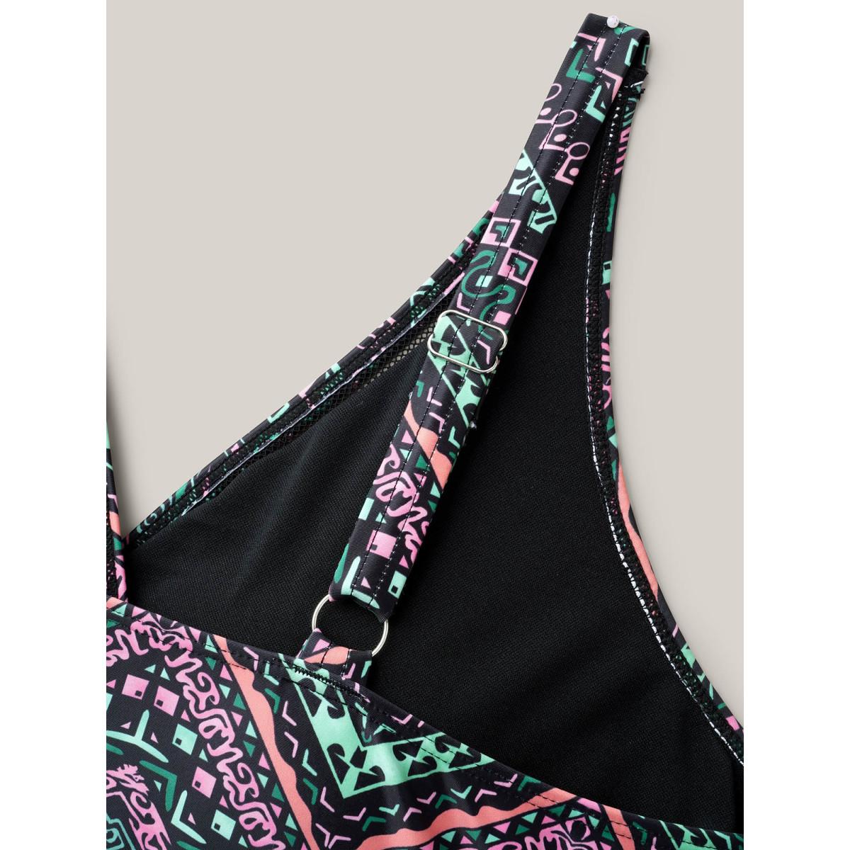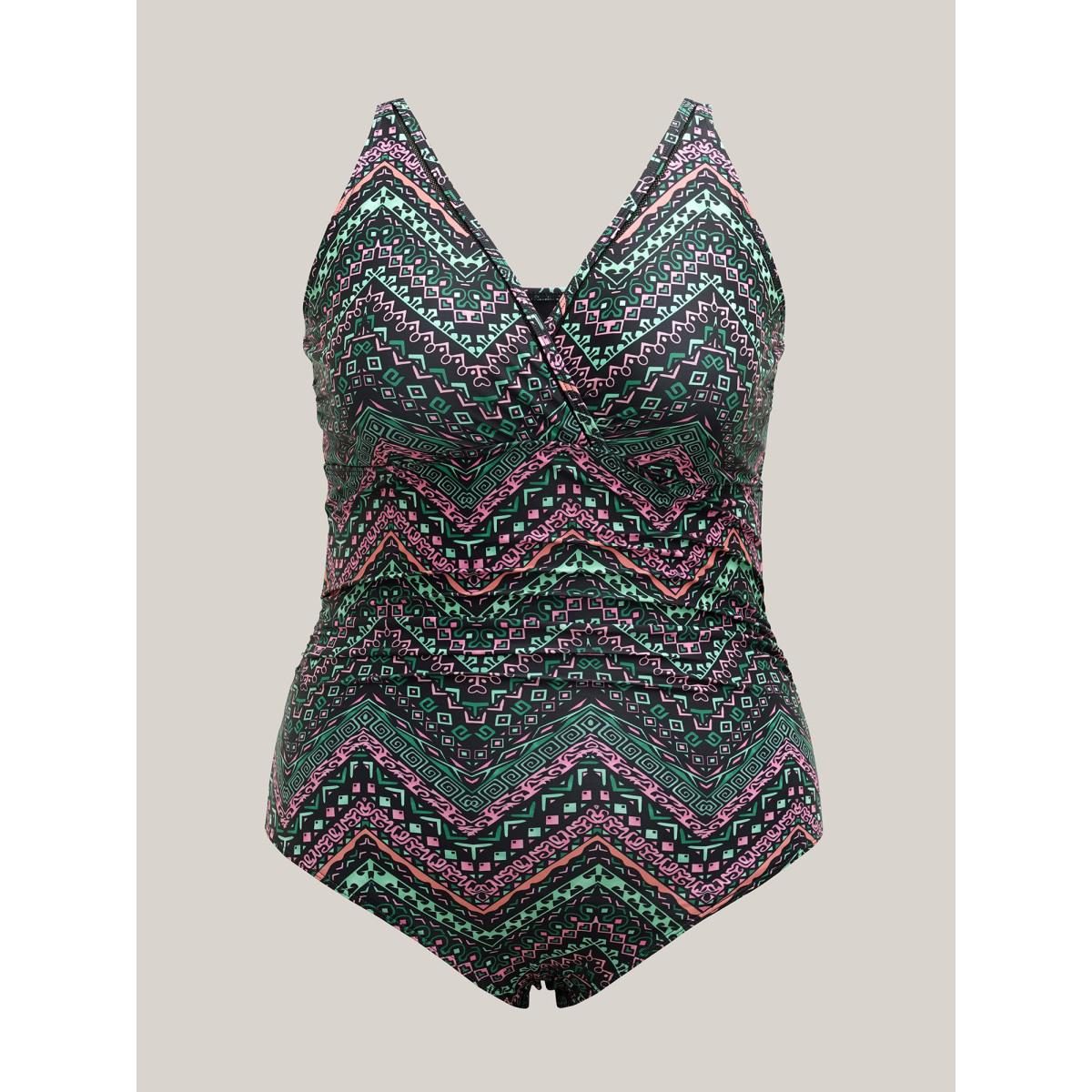 Plus Size Boho Print Webbed Ruched One-Piece Swimsuit Women's Swimwear Multicolor Resort Gathered Curve Bathing Suits High stretch One Pieces BloomChic 14-16/1X