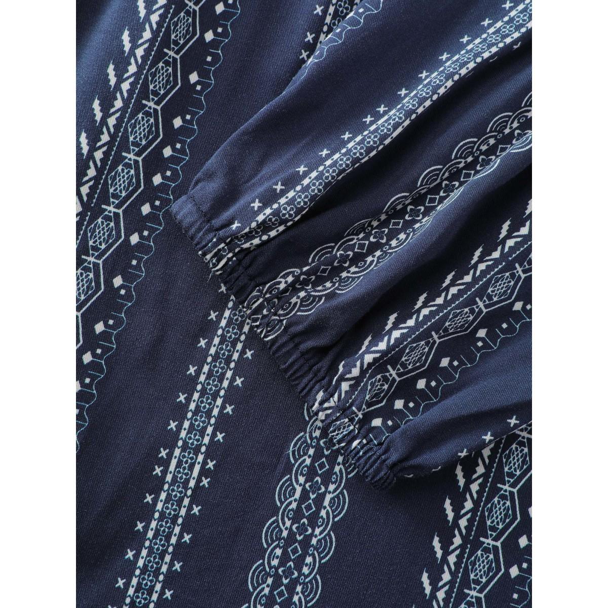 Plus Size Notched Collar Boho Print Shirred Dress Mediumblue Women Elegant Shirred Notched collar Short sleeve Curvy BloomChic 14-16/1X
