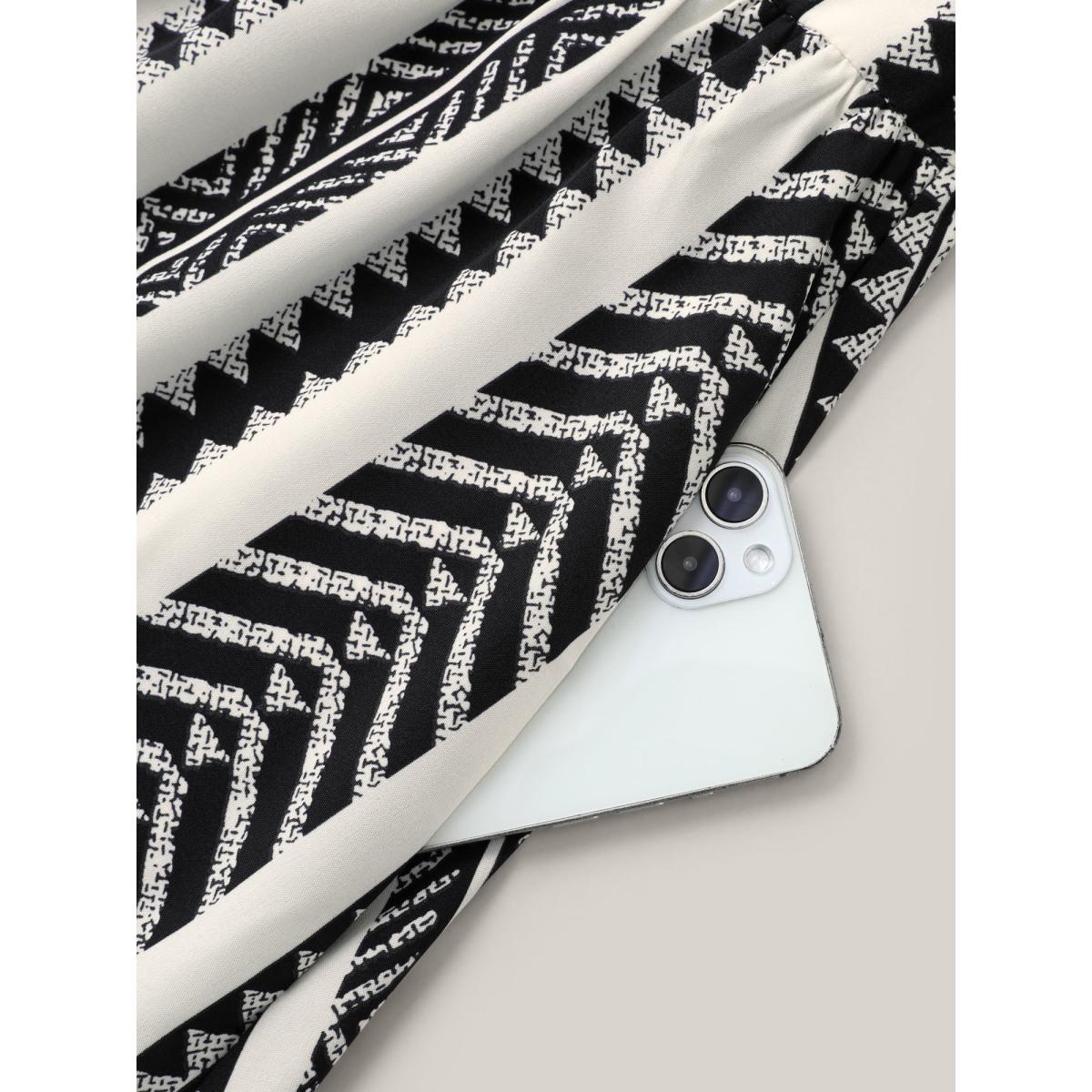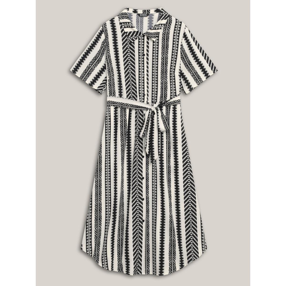 Plus Size Boho Striped Stretchy Waist Shirt Dress WhiteSmoke Women Resort Belted Shirt collar Short sleeve Curvy BloomChic 12/L Product Image