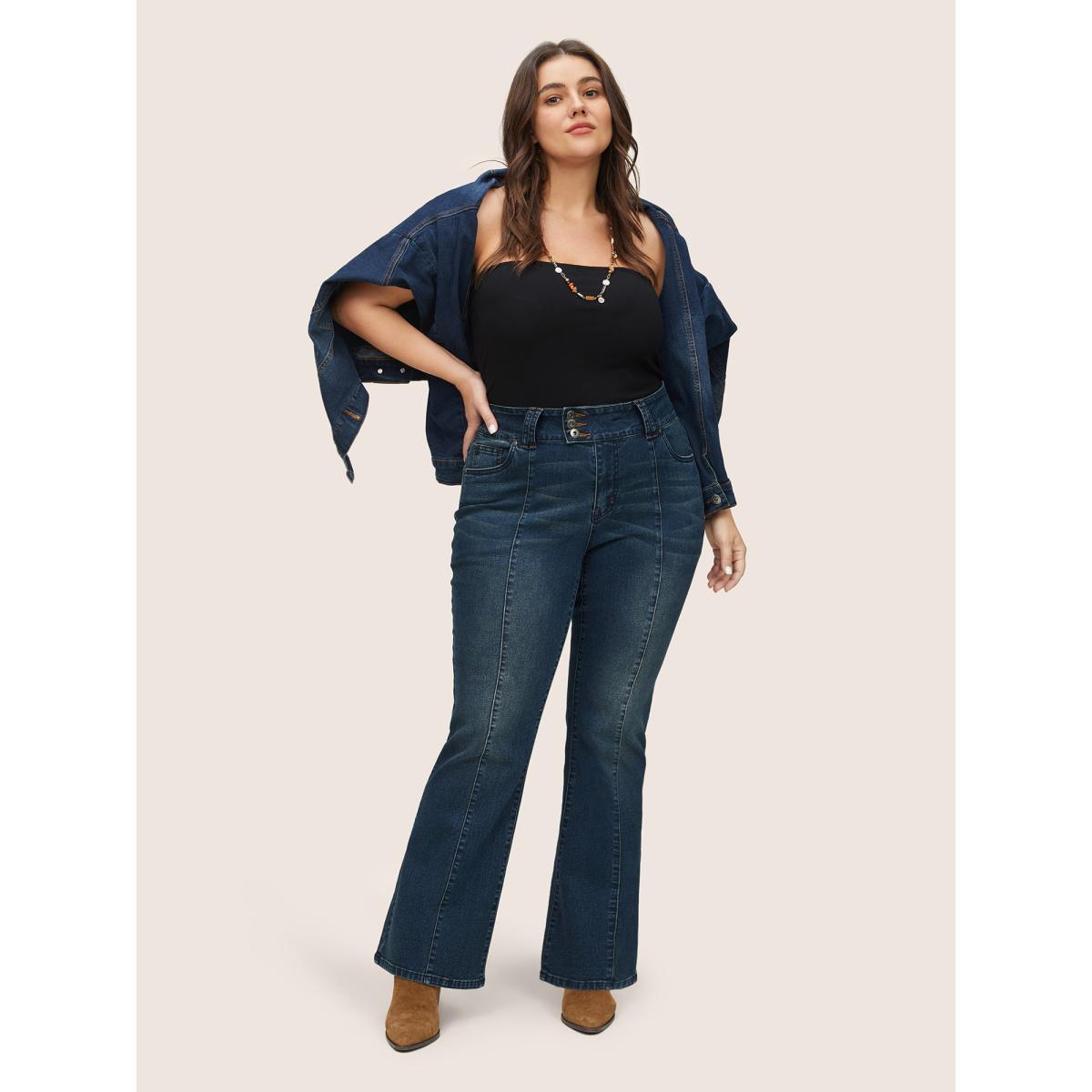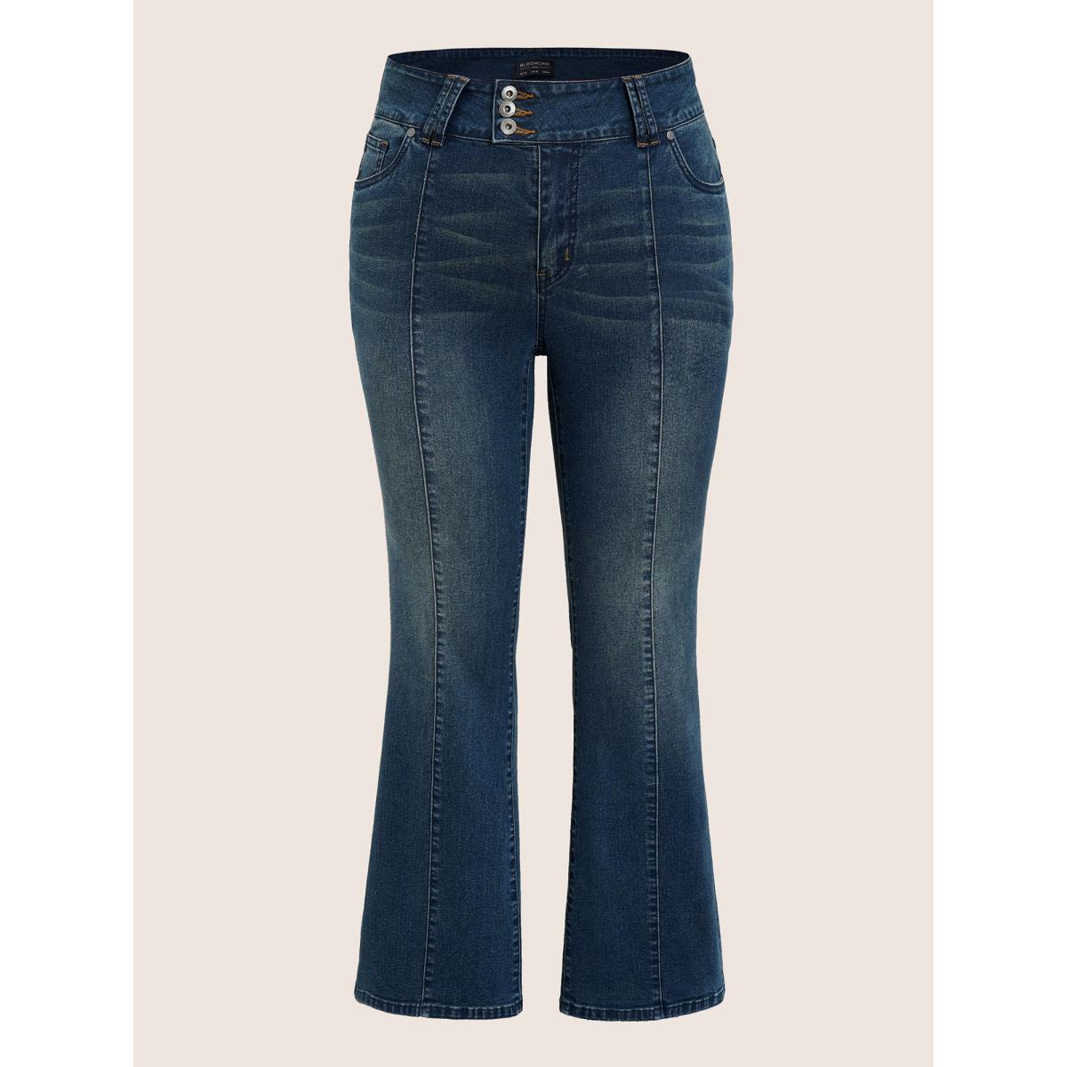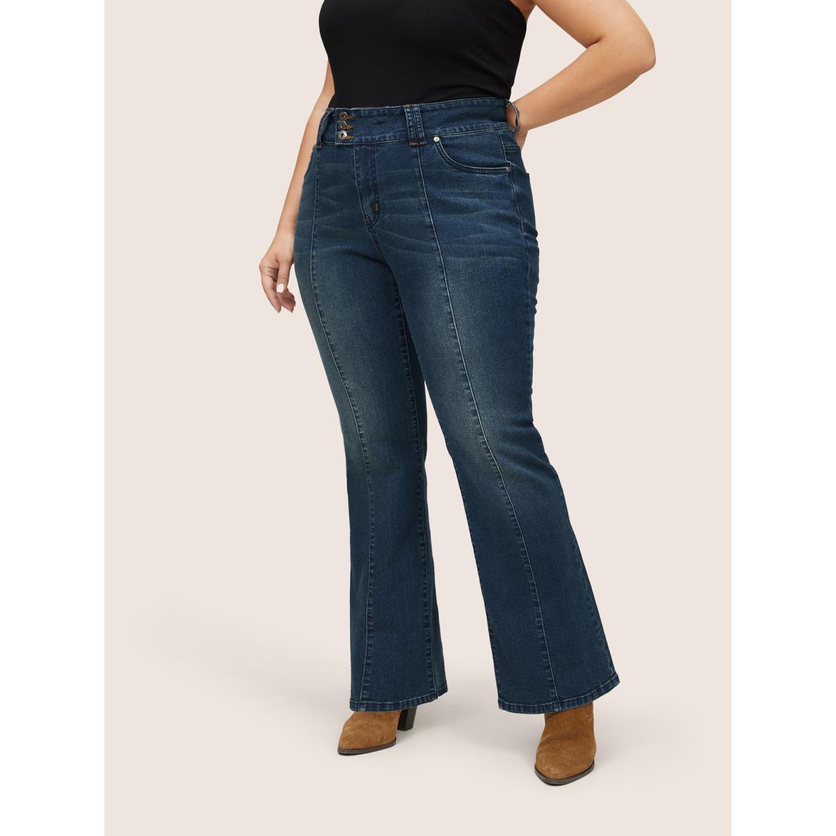 Plus Size Bootcut Button Through Full Length Jeans Women Aegean Casual Plain Non High stretch Slanted pocket Jeans BloomChic 30/6X