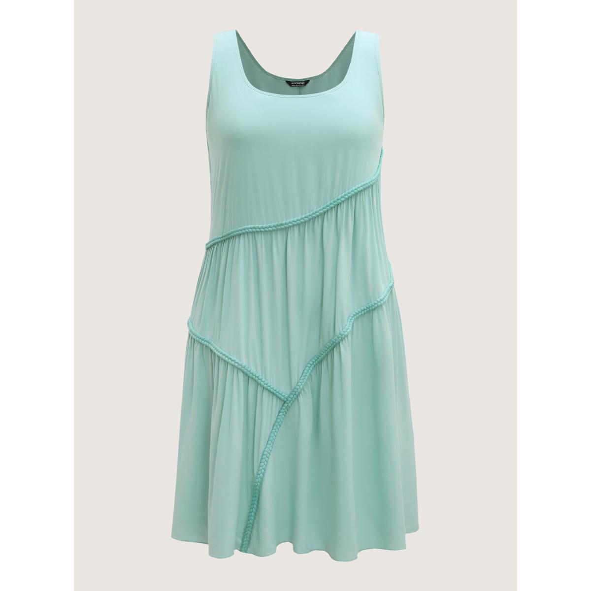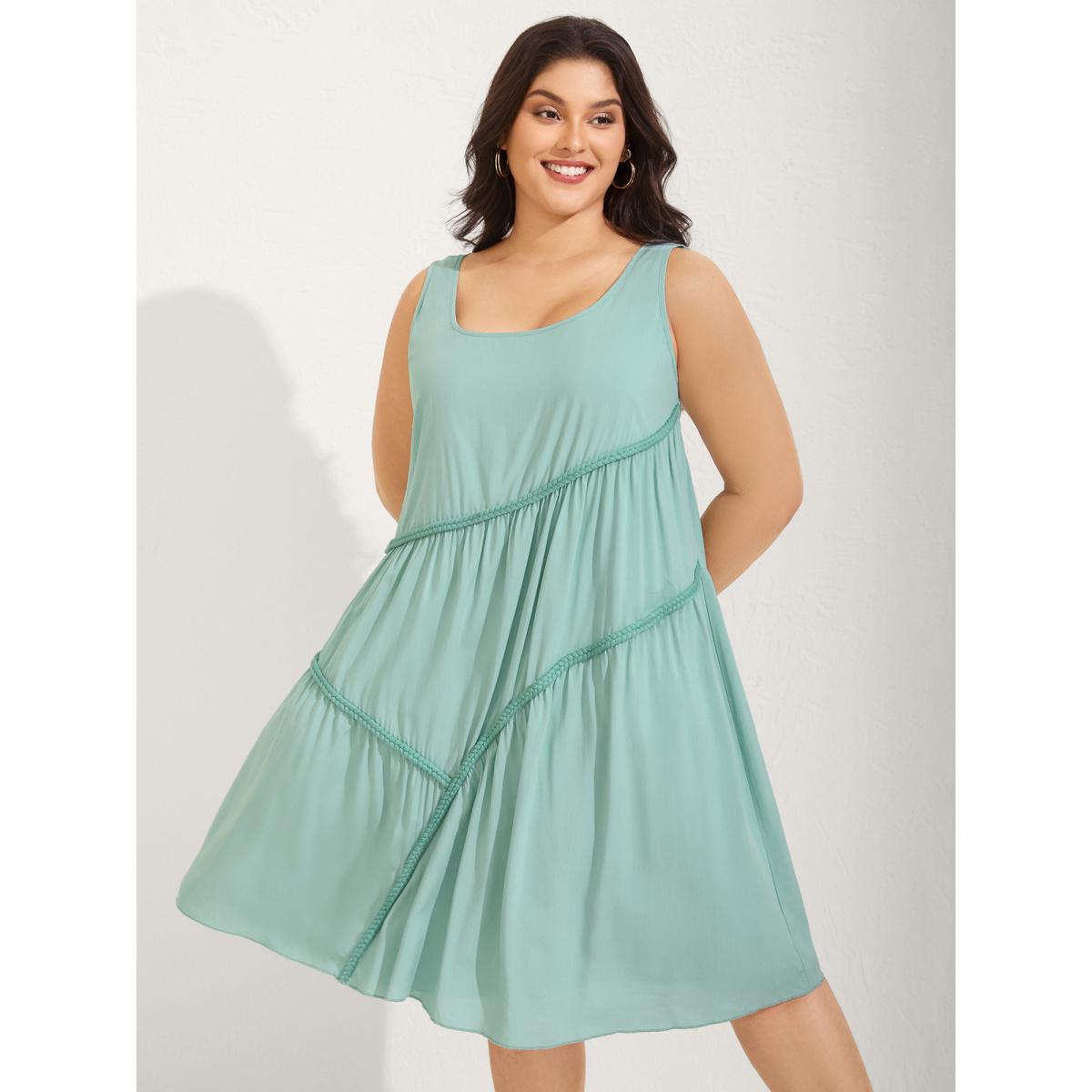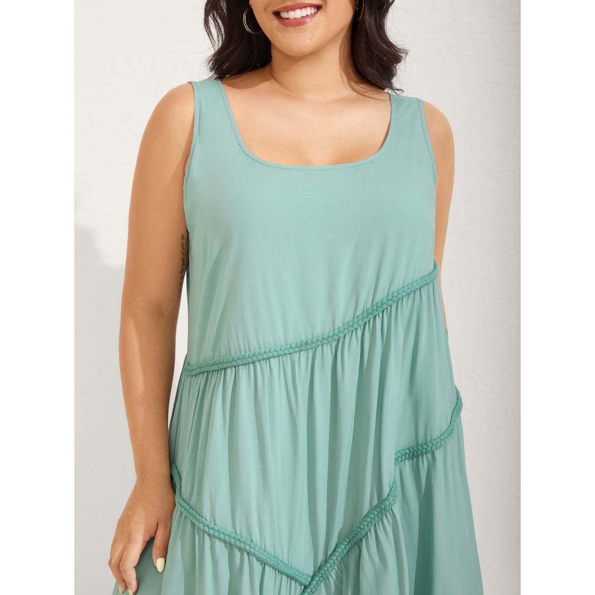 Plus Size Braided Embroidery Asymmetrical Cami Midi Dress Mint Women U-neck Sleeveless Curvy BloomChic 26/4X