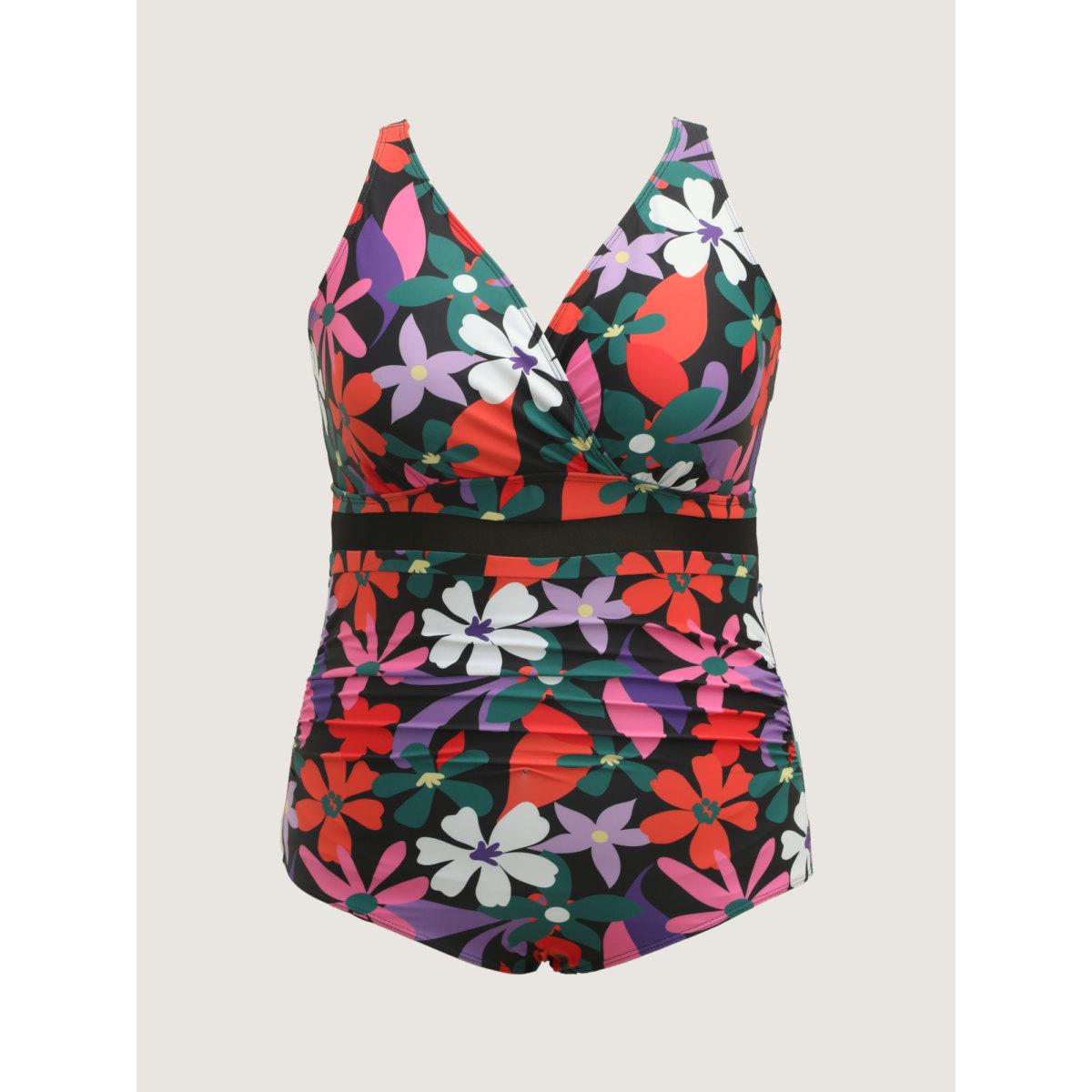 Plus Size Bright Florals Pleated One-Piece Swimsuit Women's Swimwear Multicolor Resort Gathered Curve Bathing Suits High stretch One Pieces BloomChic 10/M