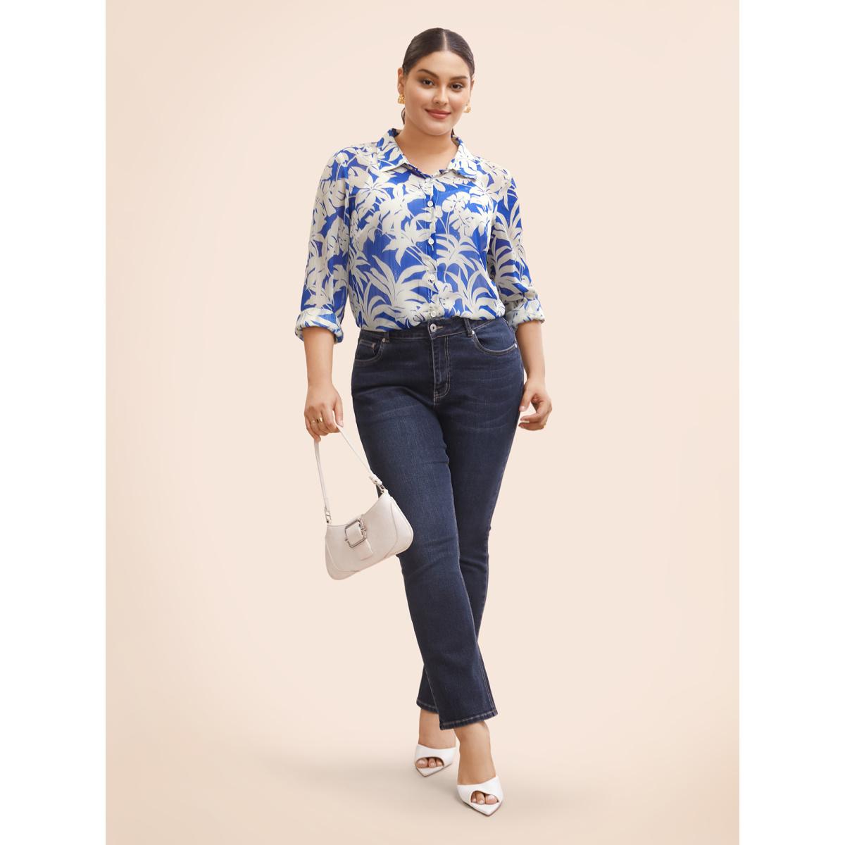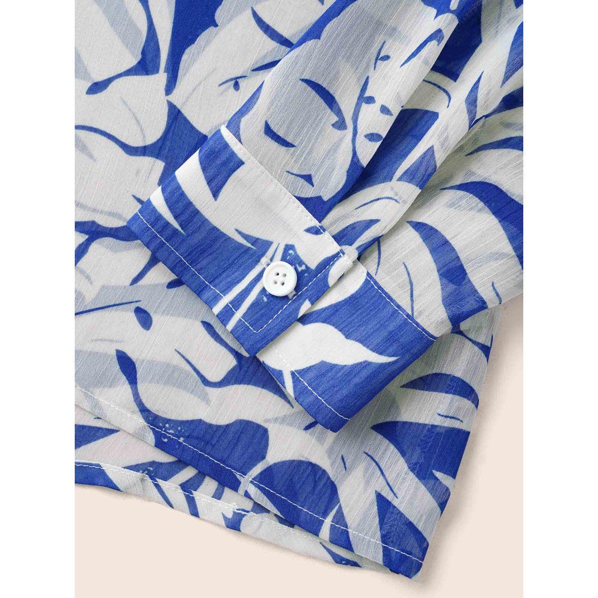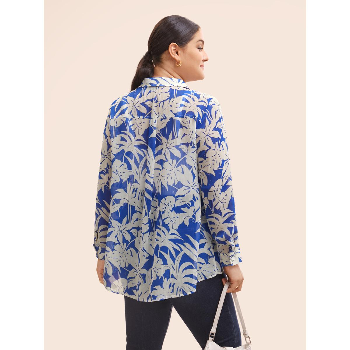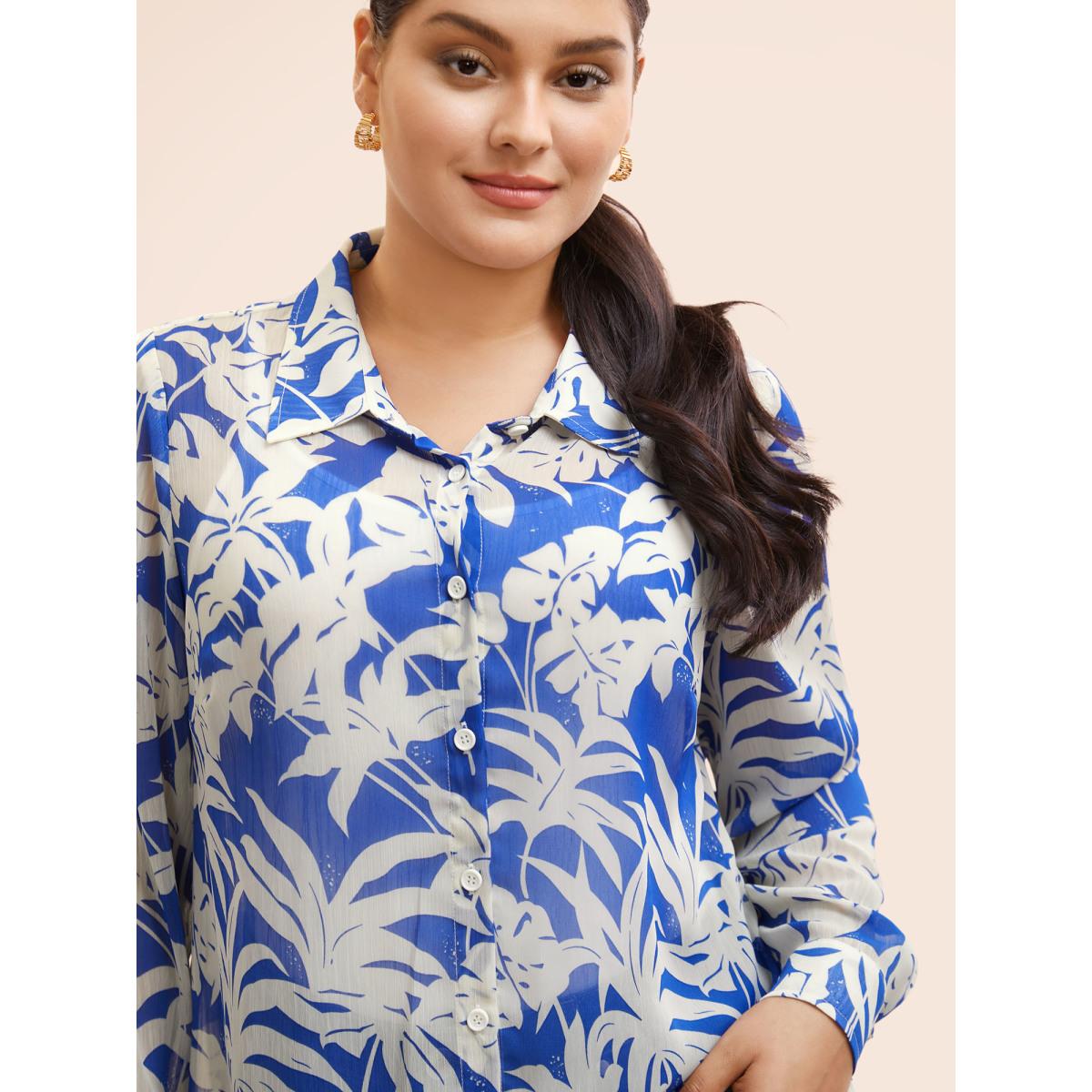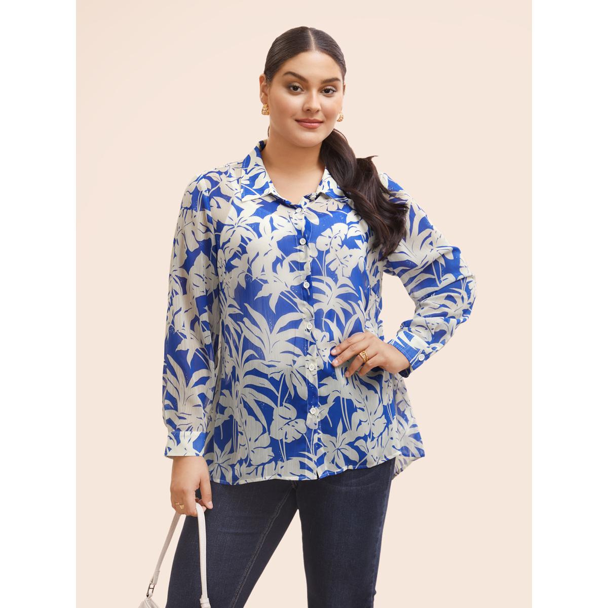 Plus Size Brightblue Silhouette Floral Print Shirt Collar Blouse Women Work From Home Long Sleeve Shirt collar Work Blouses BloomChic 14-16/1X