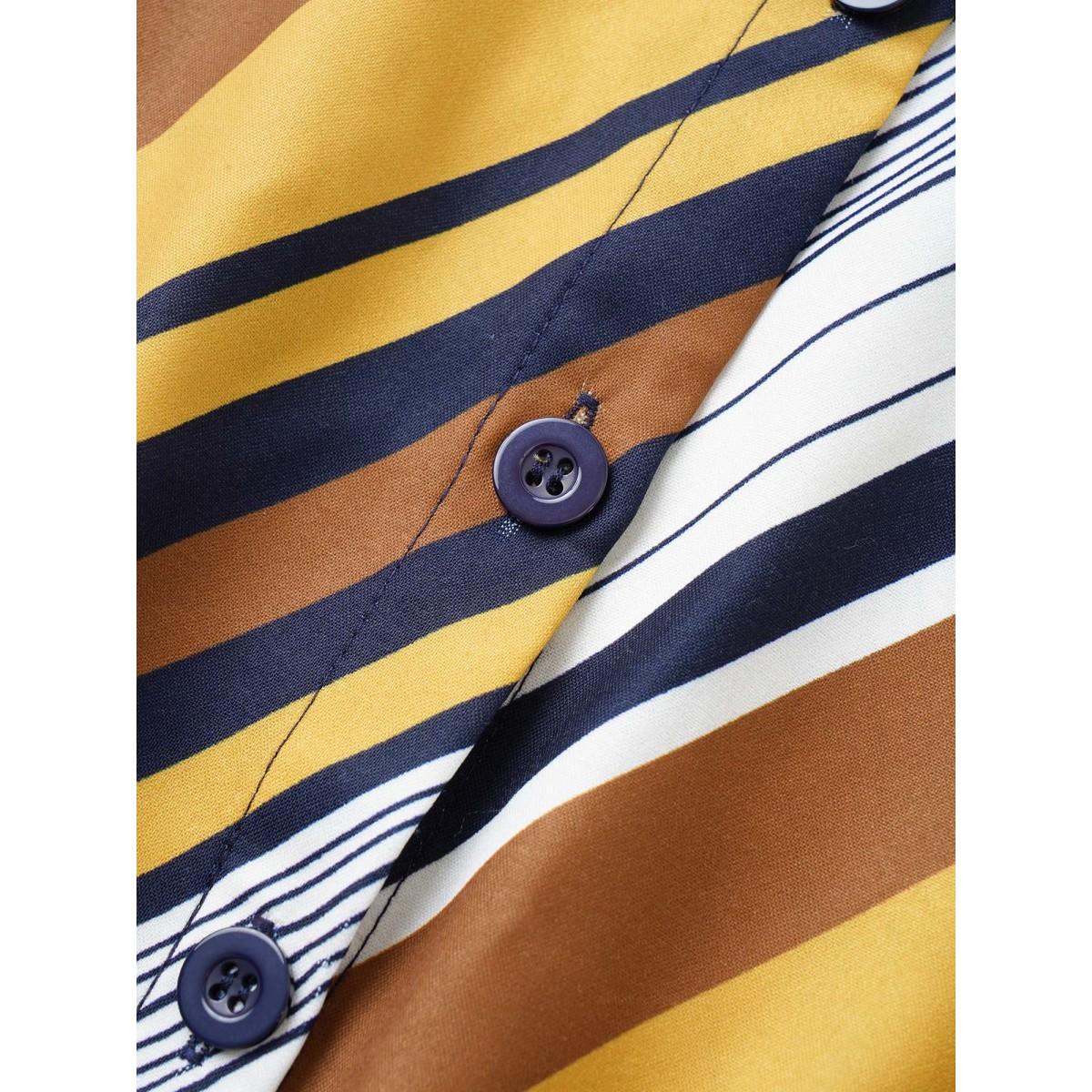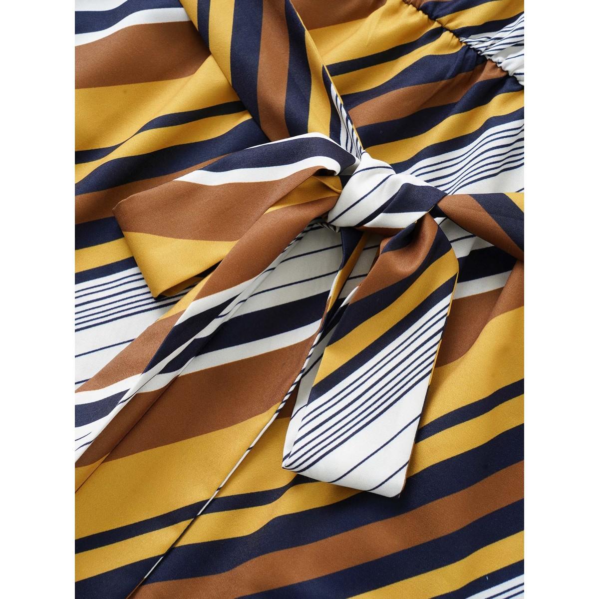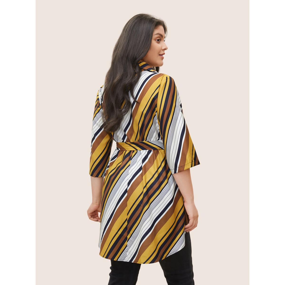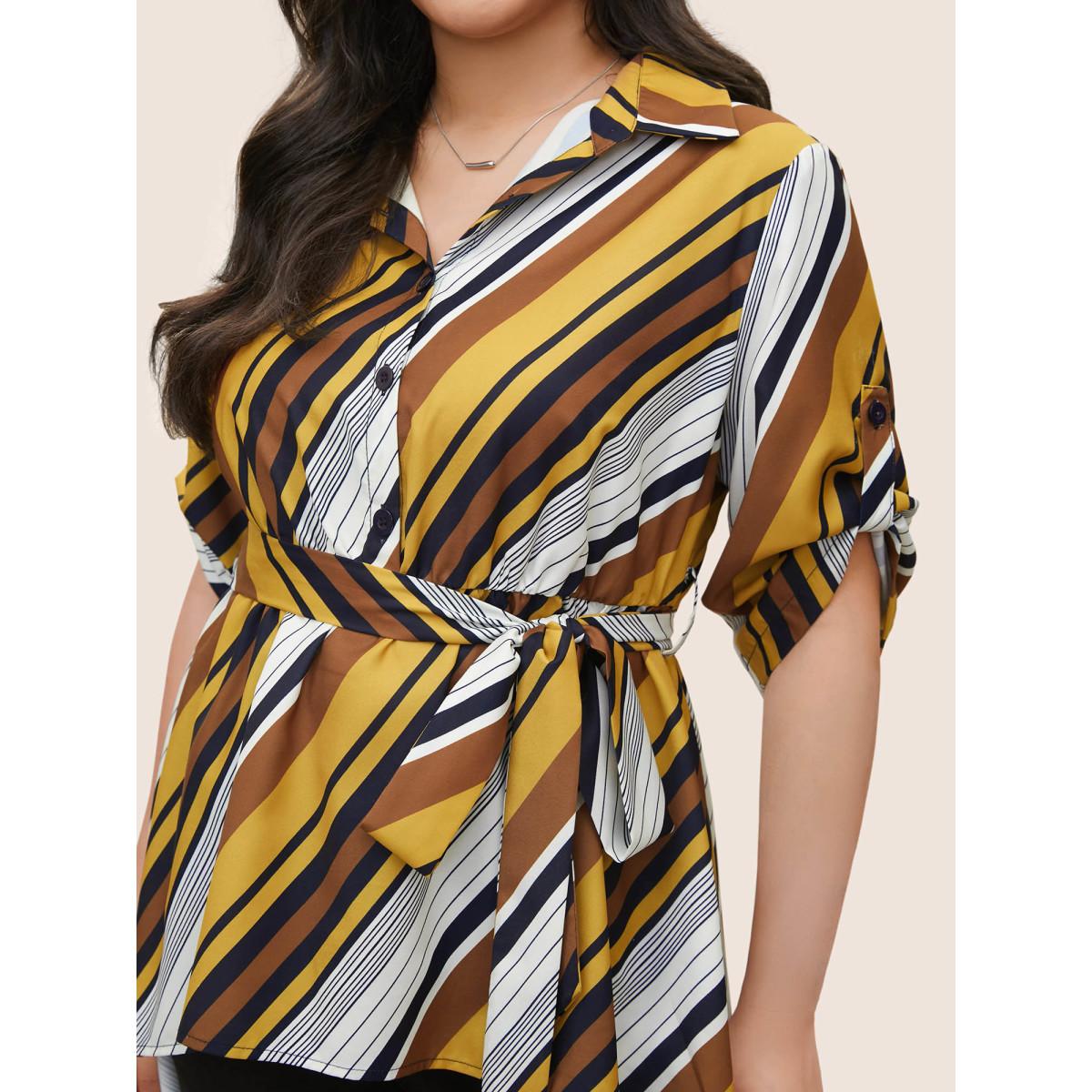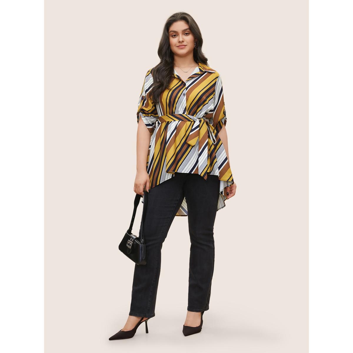 Plus Size Bronze Color Striped Ties High Low Hem Blouse Women At the Office Elbow-length sleeve Shirt collar Work Blouses BloomChic 18-20/2X