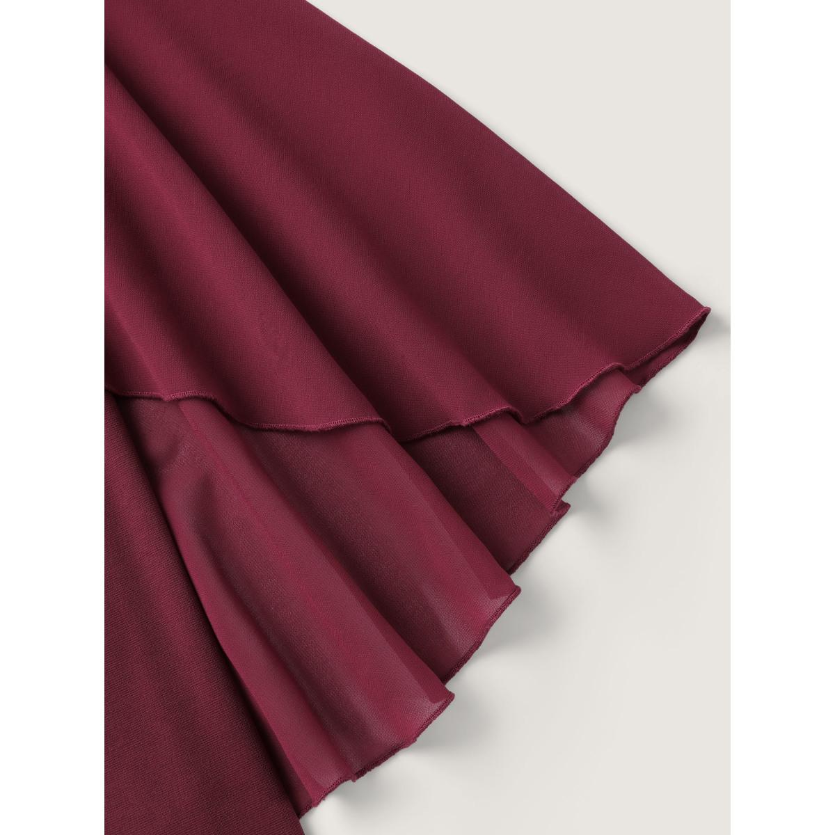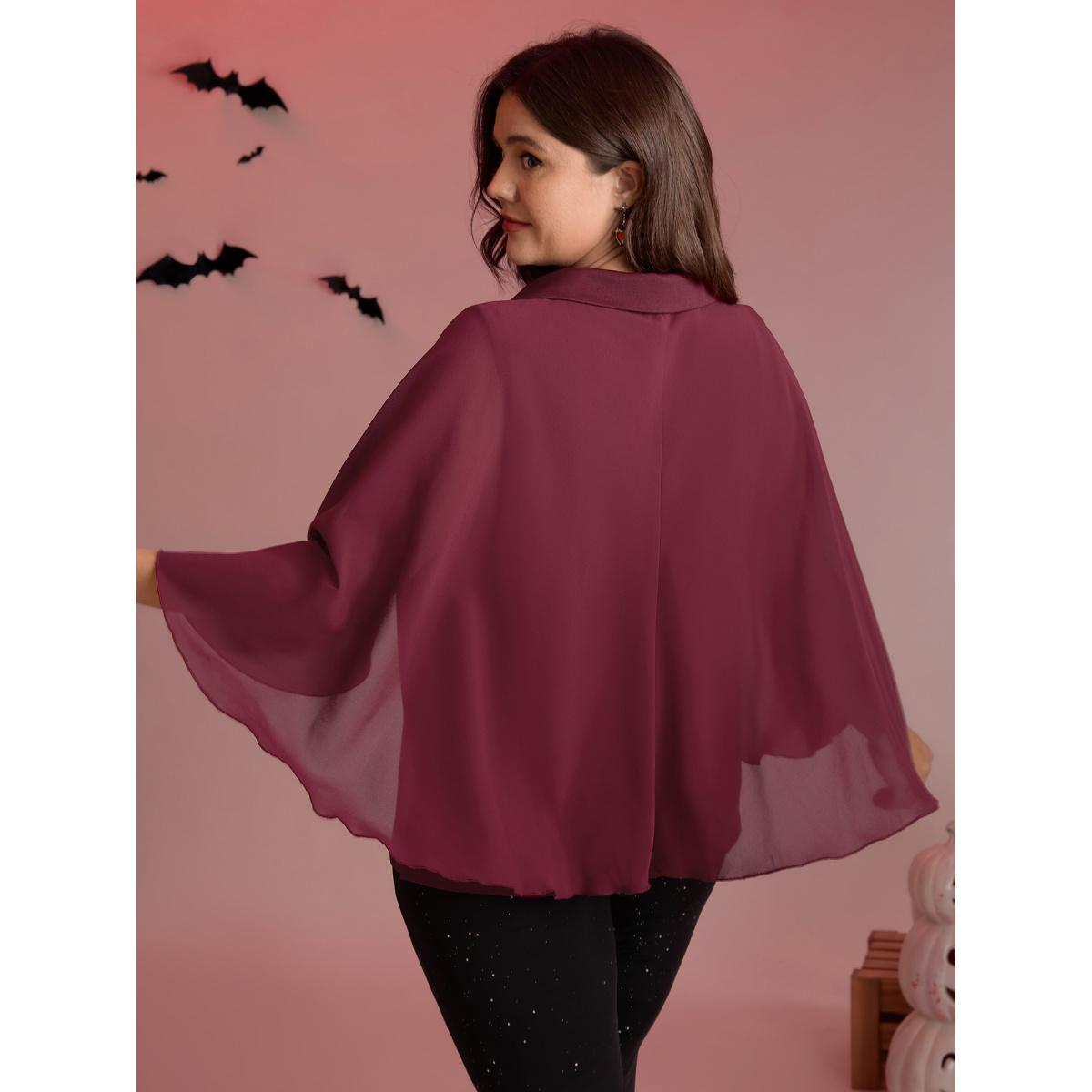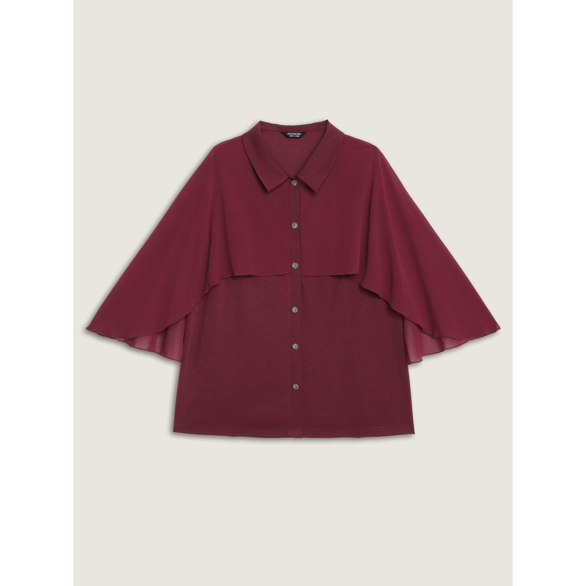 Plus Size Burgundy 2-in-1 Chiffon Shawl Layered Blouse Women Timeless Elbow-length sleeve Shirt collar Elegant Blouses BloomChic 22-24/3X
