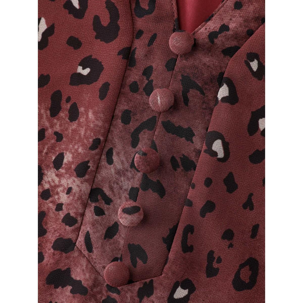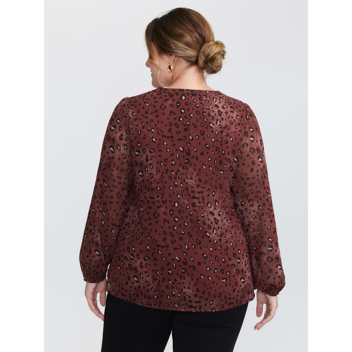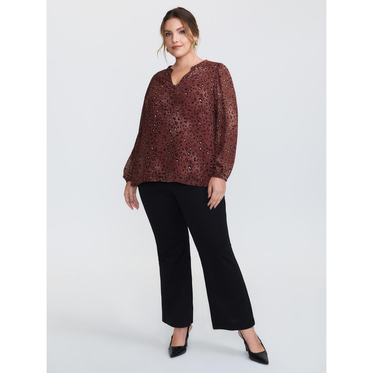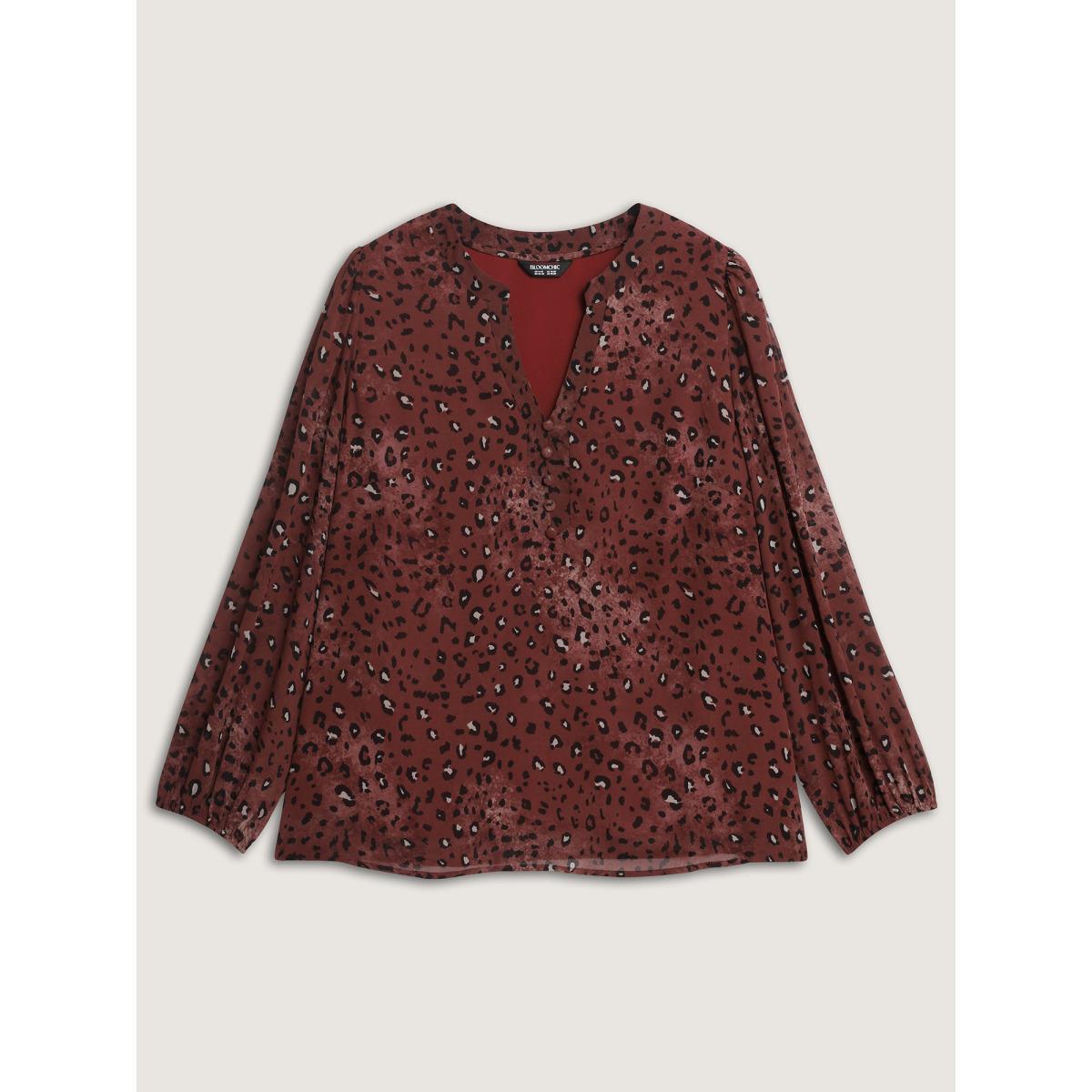 Plus Size Burgundy Leopard Print Notched Collar Blouse Women Timeless Extra Long Sleeve Flat collar with V-notch Elegant Blouses BloomChic 26/4X