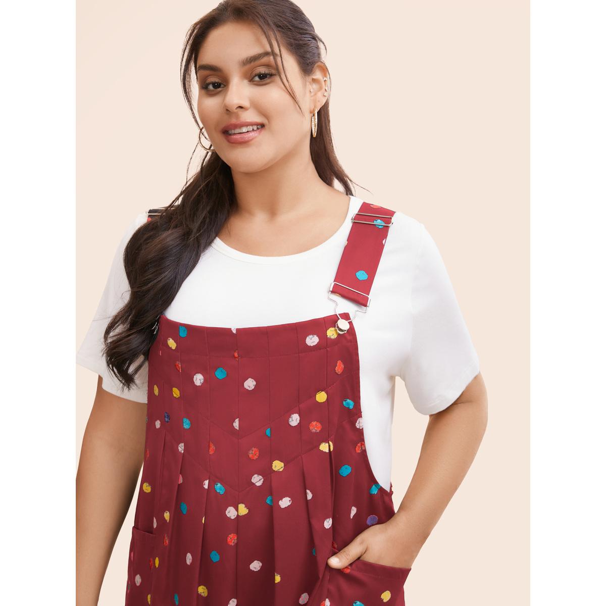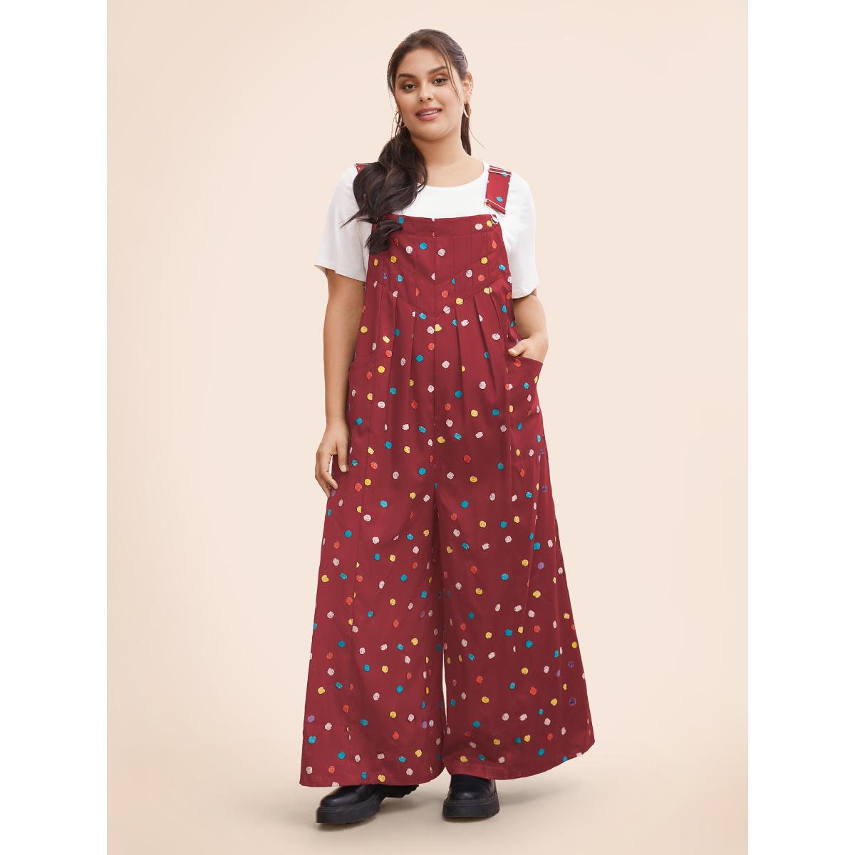Plus Size Burgundy Painted Polka Dot Adjustable Straps Jumpsuit Women Playful Sleeveless Non Casual Loose Jumpsuits BloomChic 26/4X