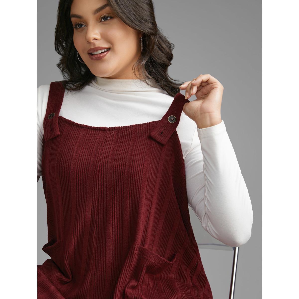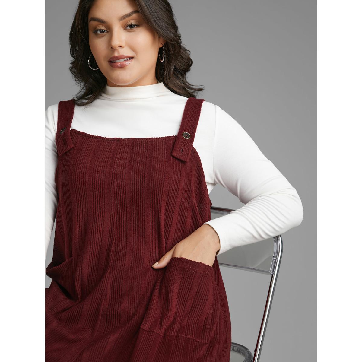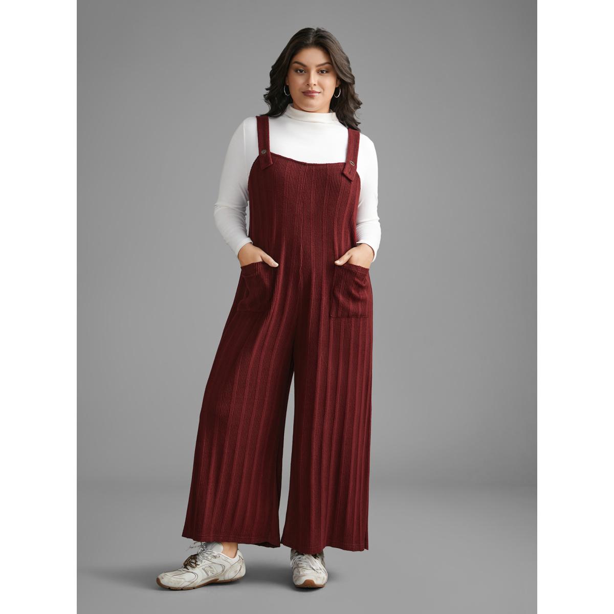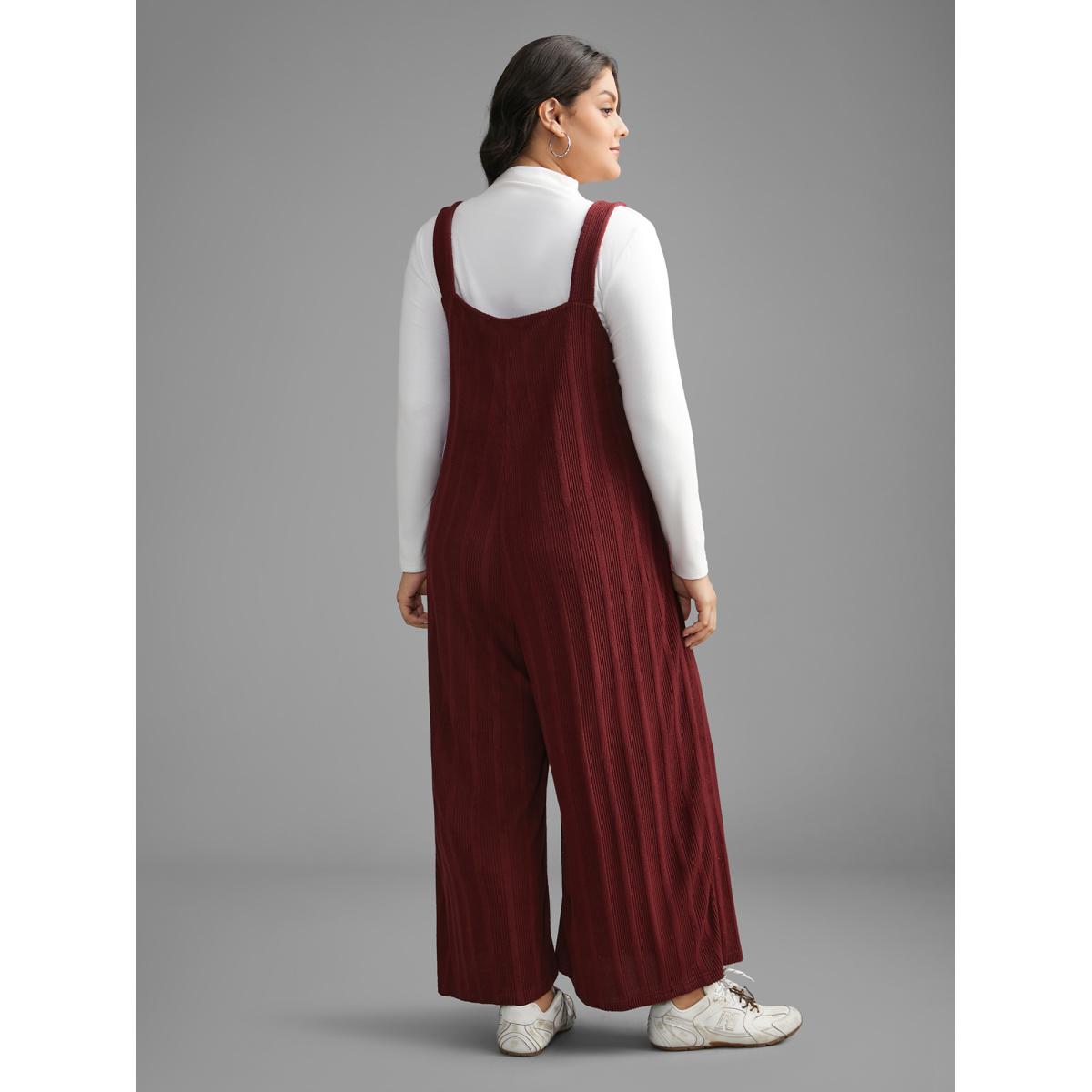 Plus Size Burgundy Textured Pockets Straight Leg Overall Women Casual Sleeveless Non Everyday Loose Jumpsuits BloomChic 12/L
