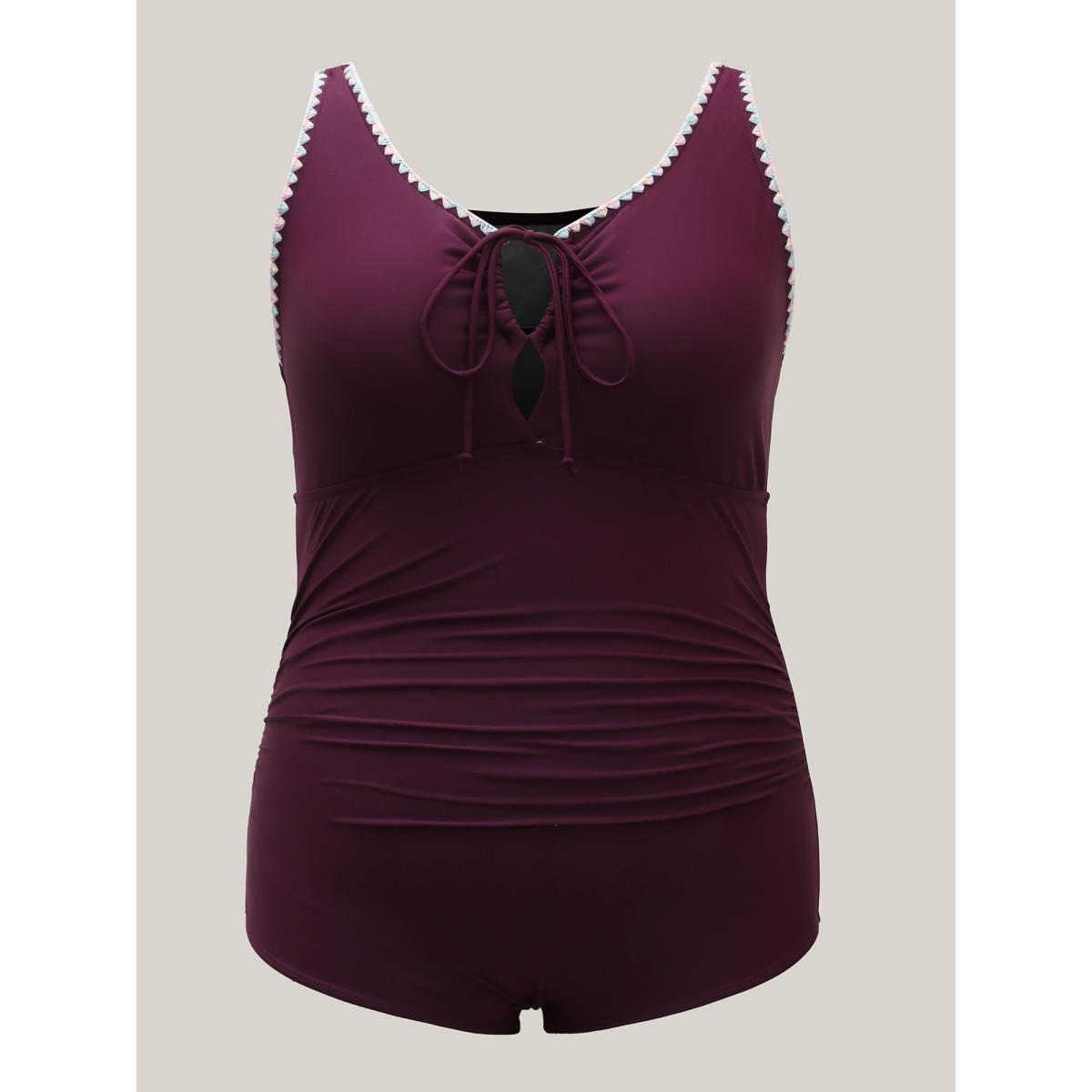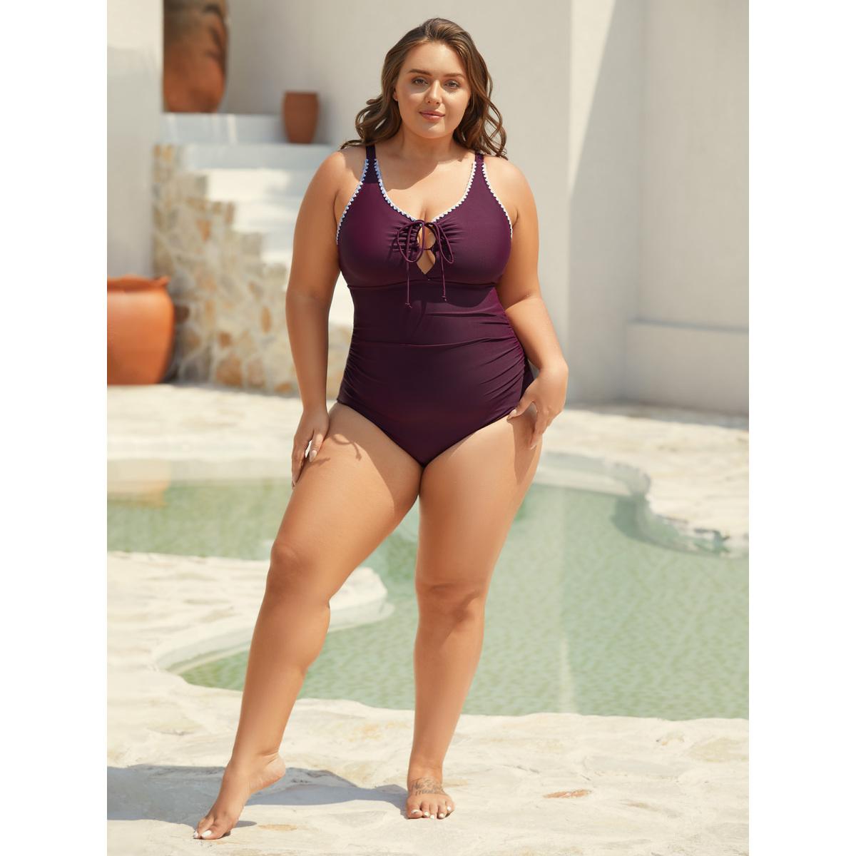 Plus Size Bust Drawstring Keyhole One-Piece Swimsuit Women's Swimwear Plum Beach Tie knot Curve Bathing Suits High stretch One Pieces BloomChic 12/L