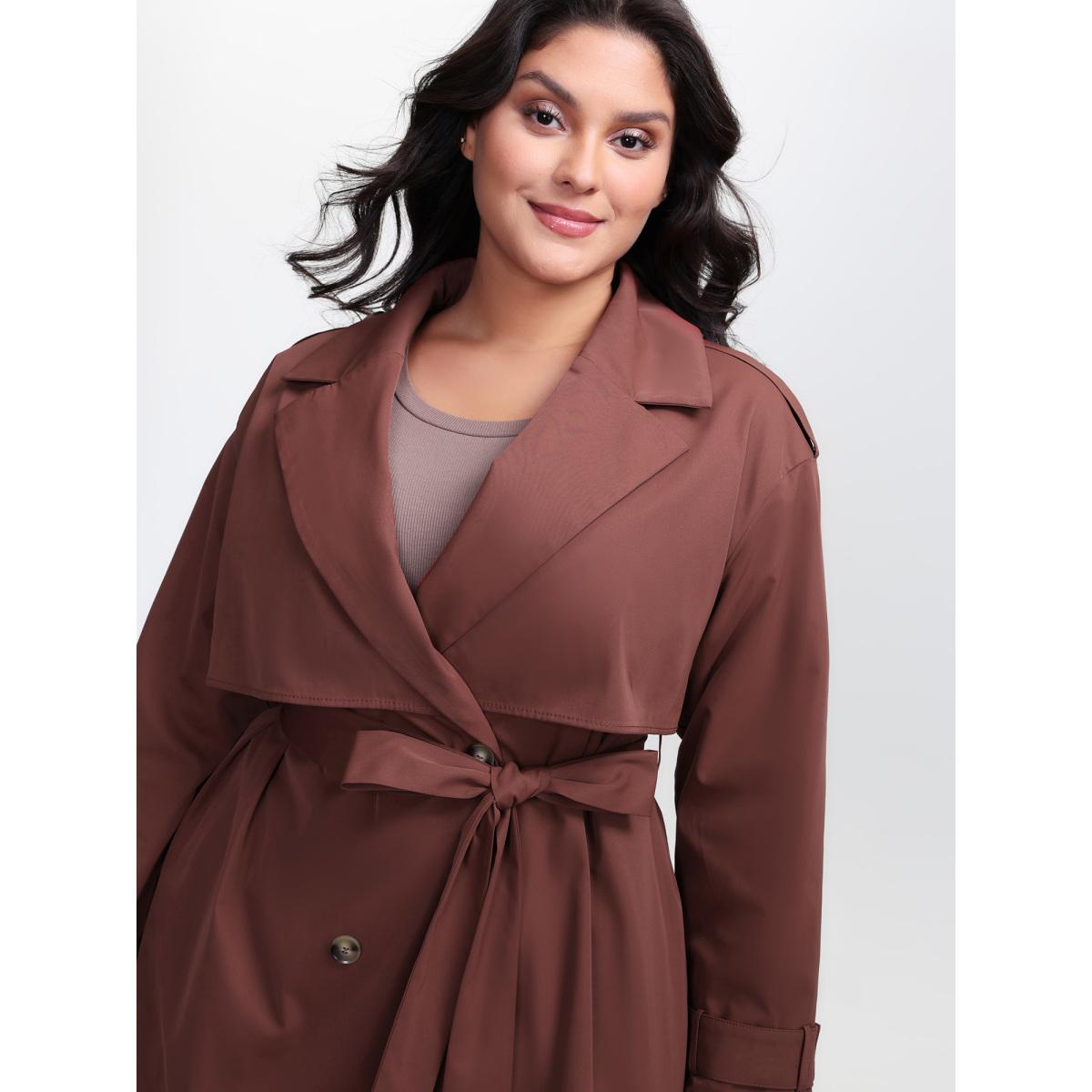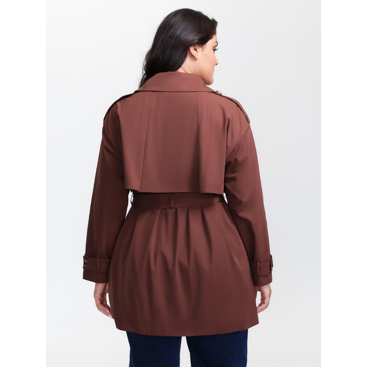 Plus Size Button Belted Layered Trench Coat Women Maroon Casual Belted 18-20/2X Single-flap pocket Belt Leisure Trench Coats BloomChic