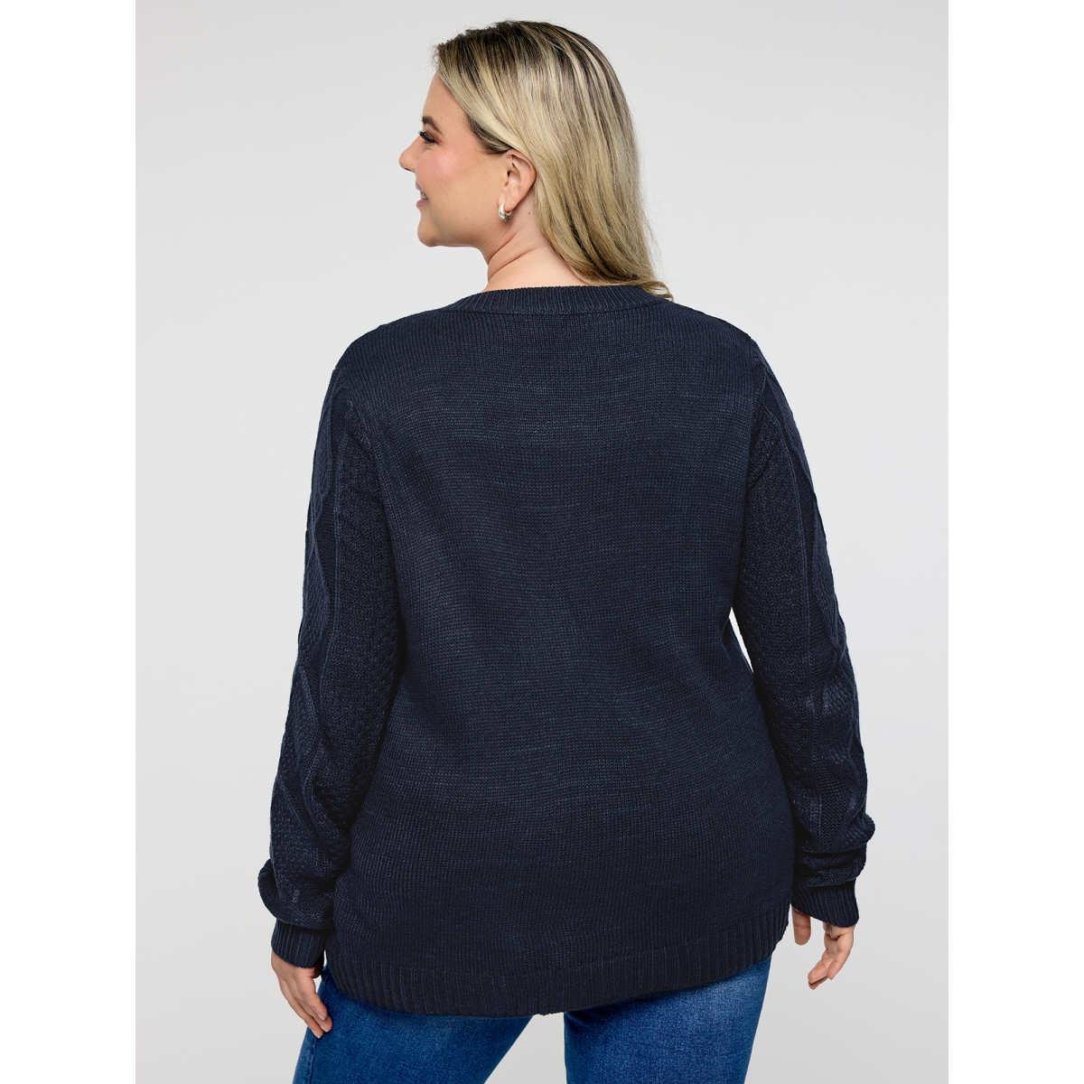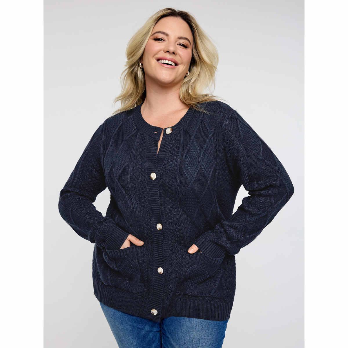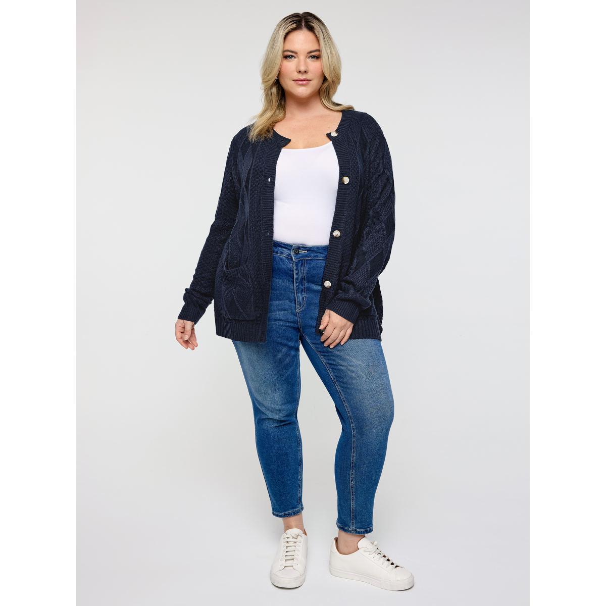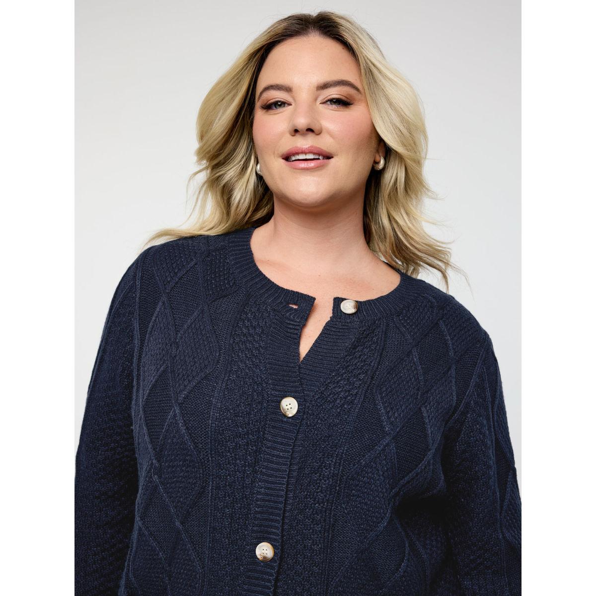 Plus Size Cable Knit Button Pockets Cardigan Midnight Women Loose Long Sleeve Casual Cardigans BloomChic 26/4X Product Image