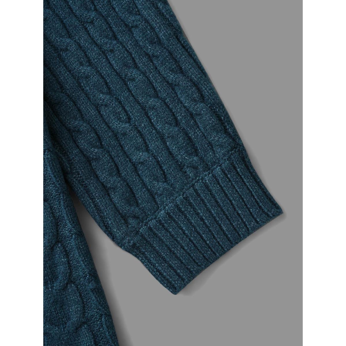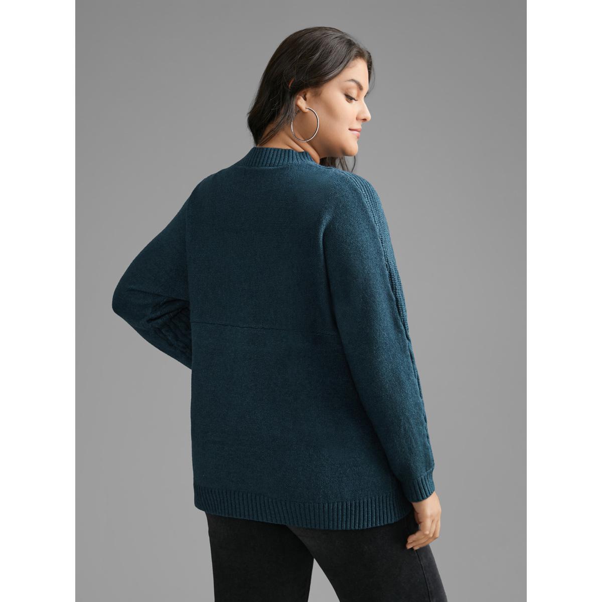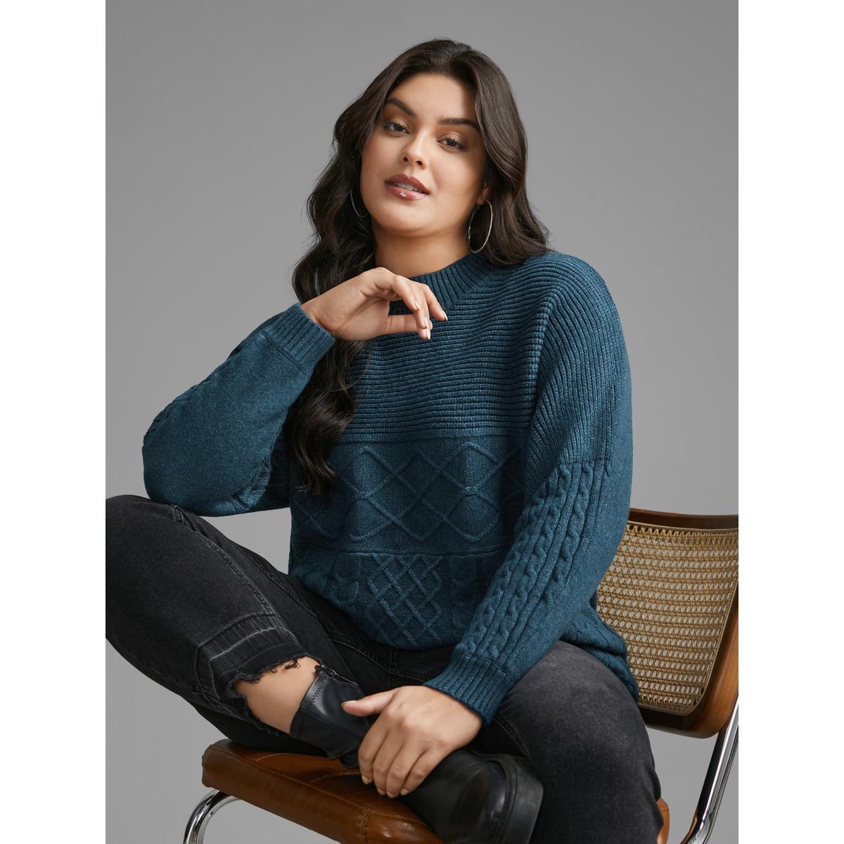 Plus Size Cable Knit Texture Drop Shoulder Sleeve Pullover Aegean Women Casual Loose Long Sleeve Round Neck Everyday Pullovers BloomChic 26/4X