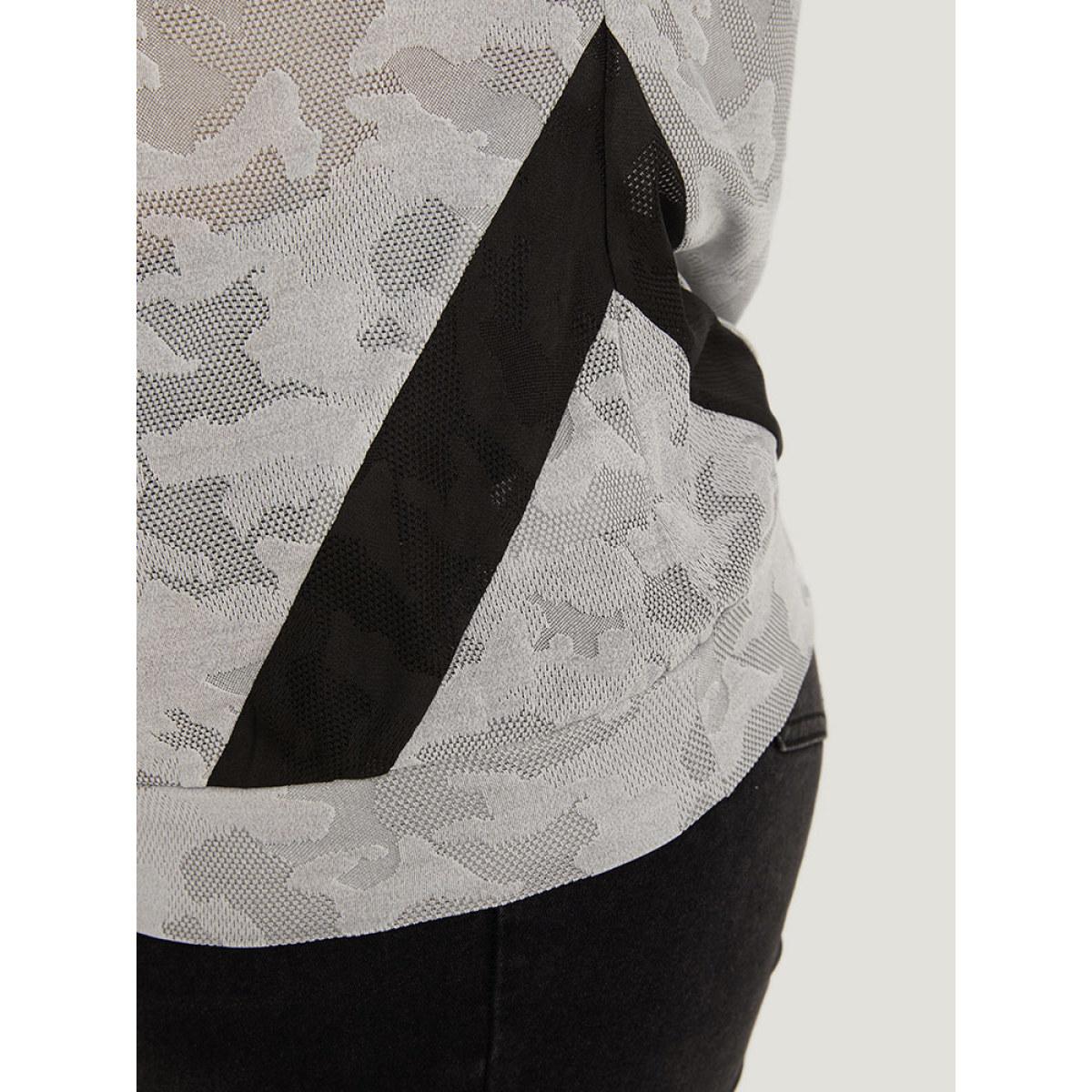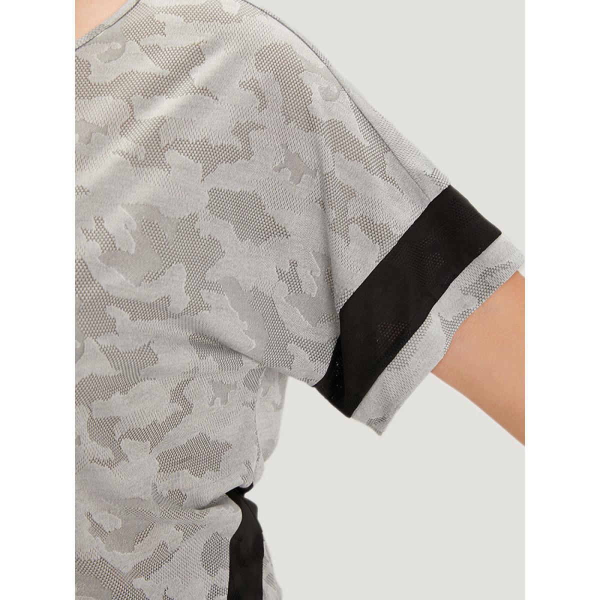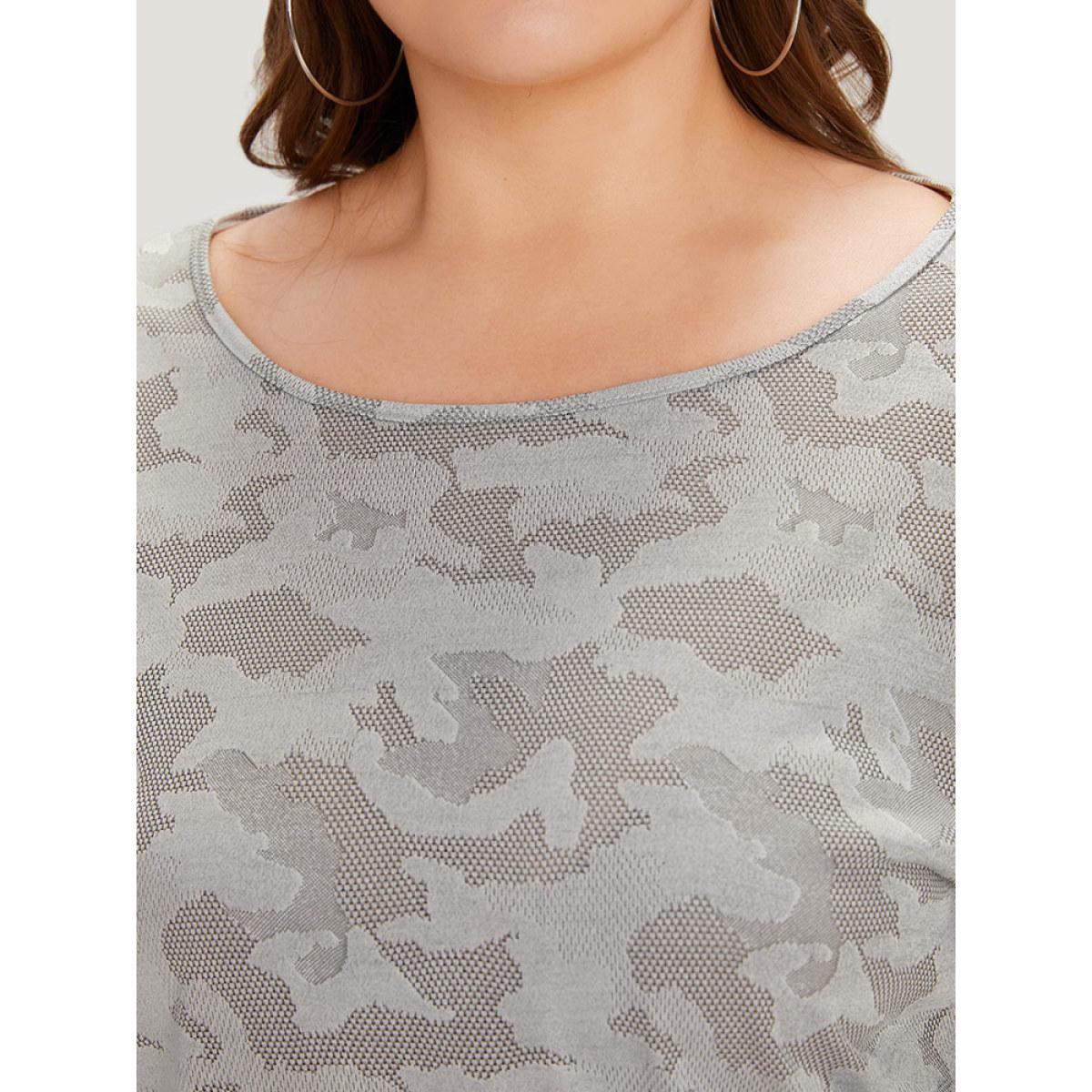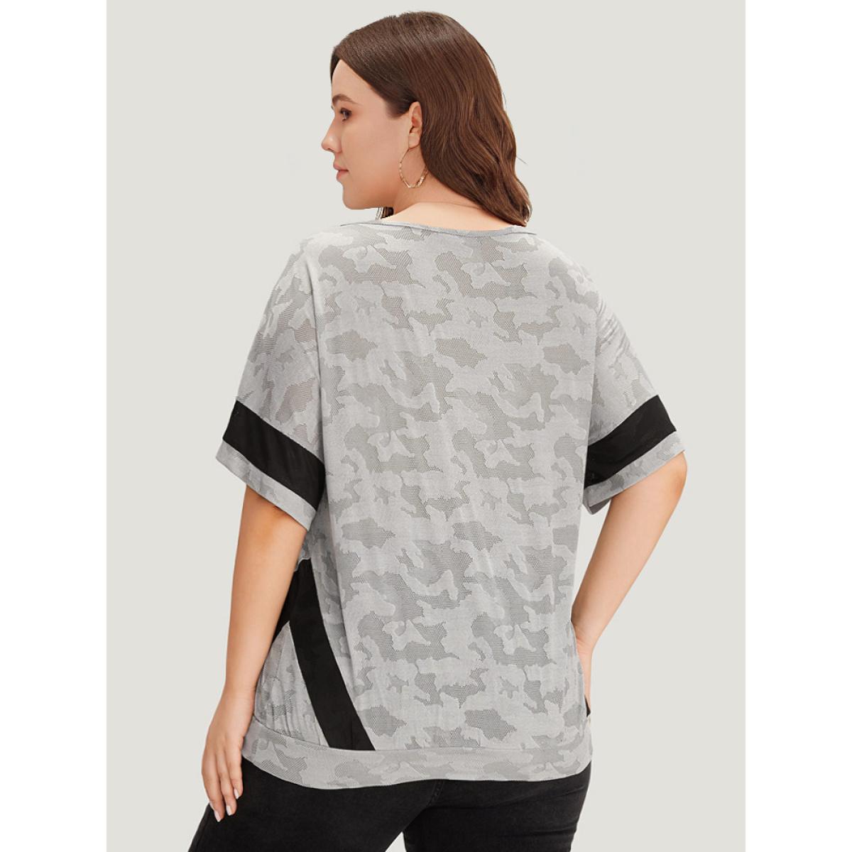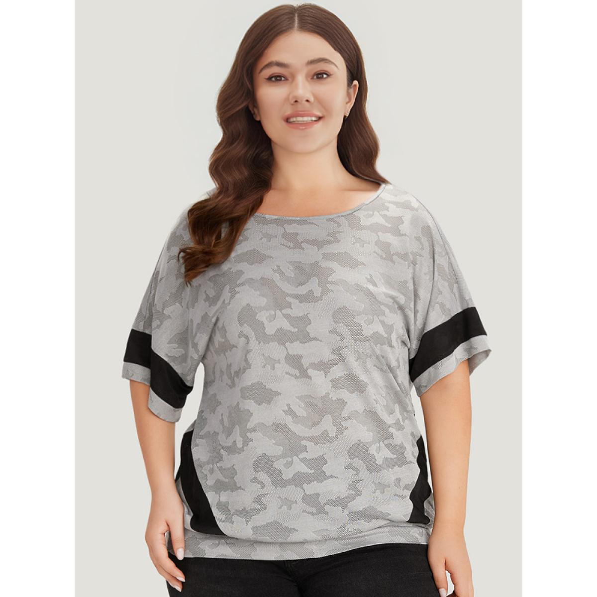 Plus Size Camo Contrast Patchwork Dolman Sleeve T-shirt Gray Women Sporty Contrast Camo Round Neck Dailywear T-shirts BloomChic 30/6X
