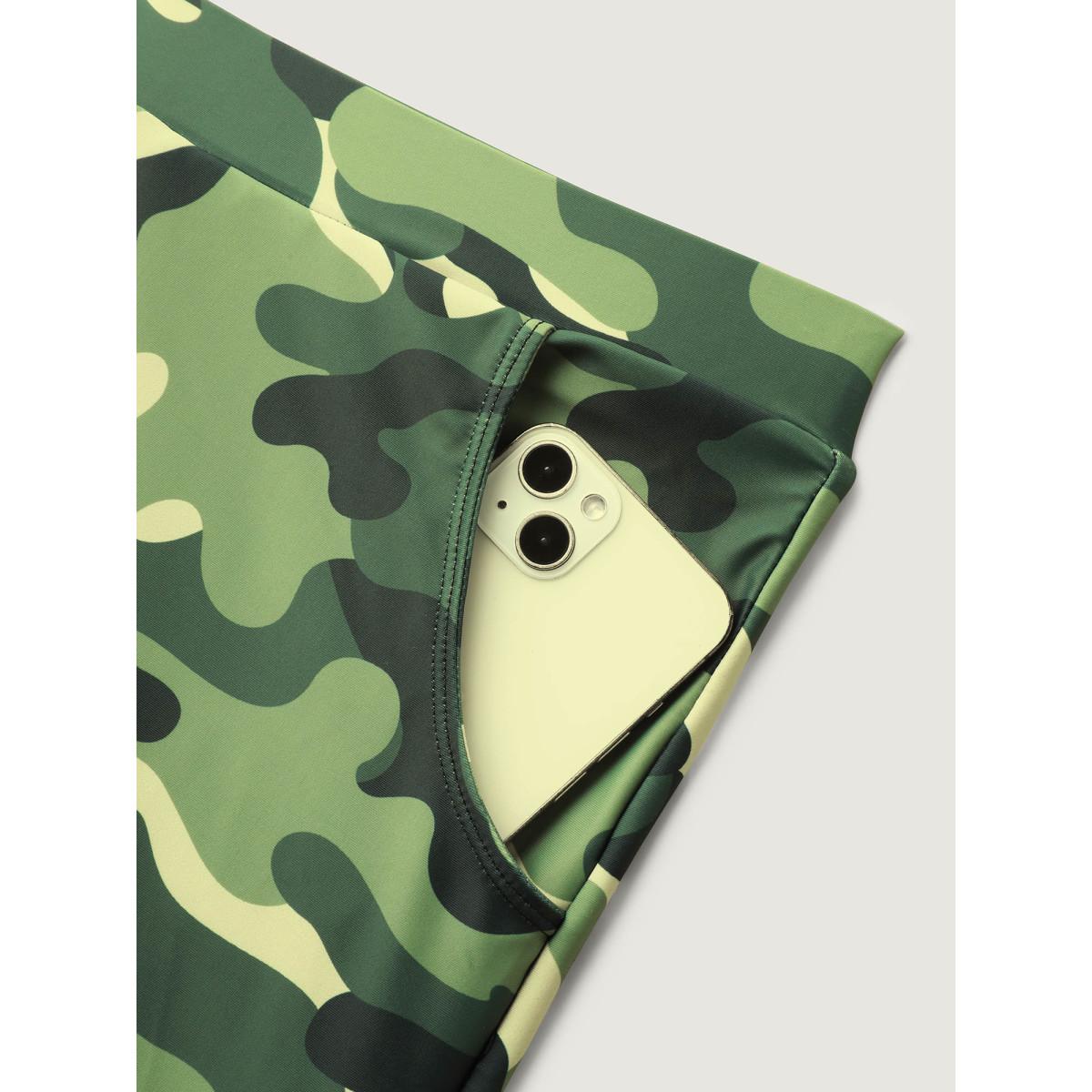Plus Size Camouflage Print Pockets Swim Bottoms Women's Swimwear ArmyGreen Beach Contrast High stretch Skinny Mid Rise Side seam pocket Curve Swim Bottoms BloomChic 18-20/2X