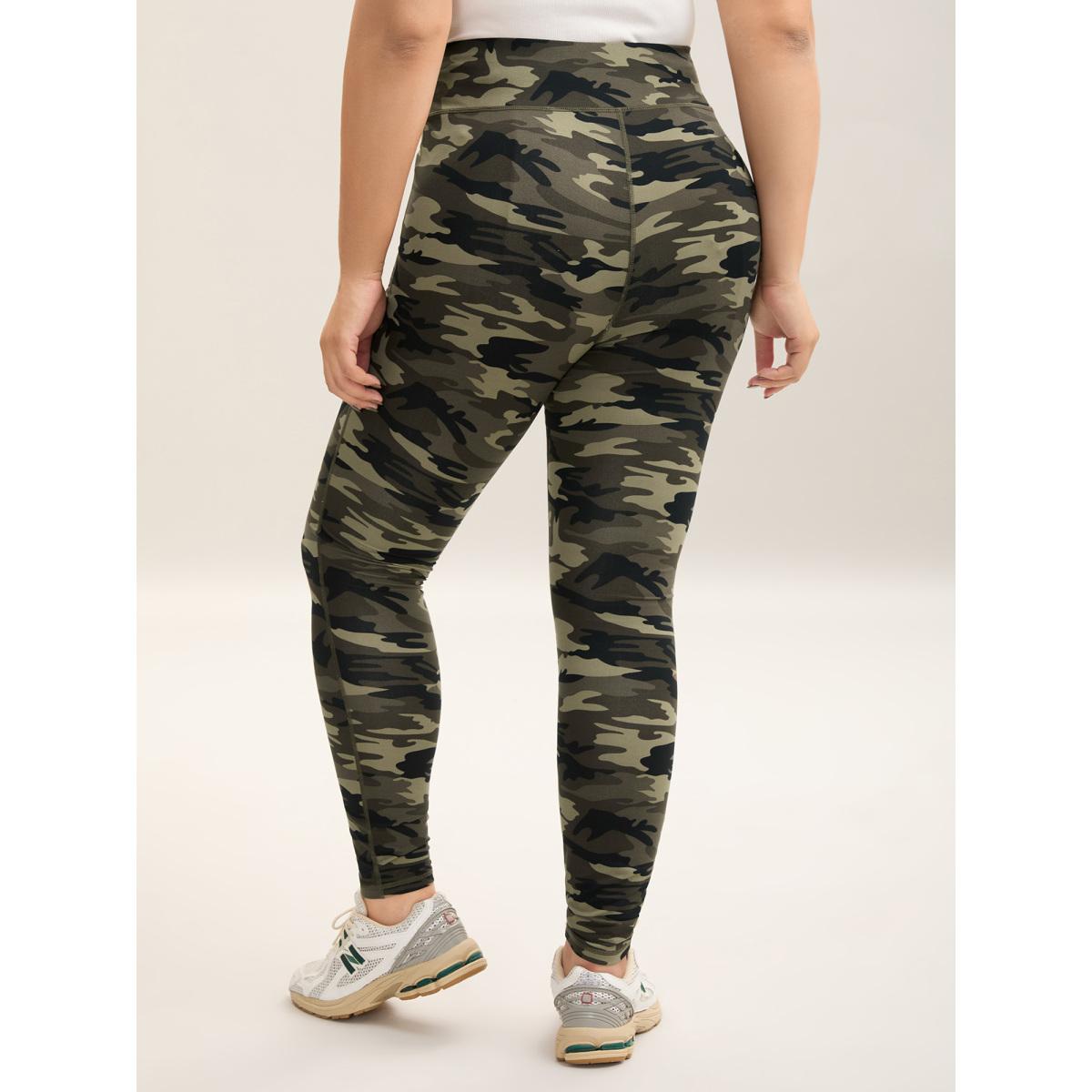 Plus Size Camouflage Print Stretch Leggings Women Olive Medium stretch Skinny Mid Rise Everyday-Casual Leggings BloomChic 18-20/2X
