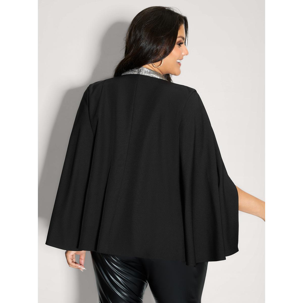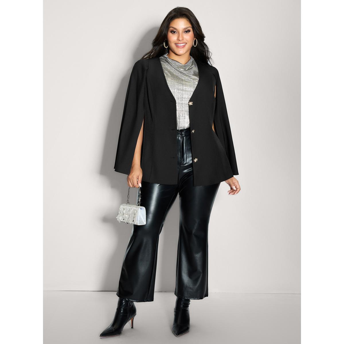 Plus Size Cape Style Buttons V-Neck Blazer Black Women Party Button Sleeve Extra Long Sleeve V-neck 10/M Party&Cocktail Blazers BloomChic