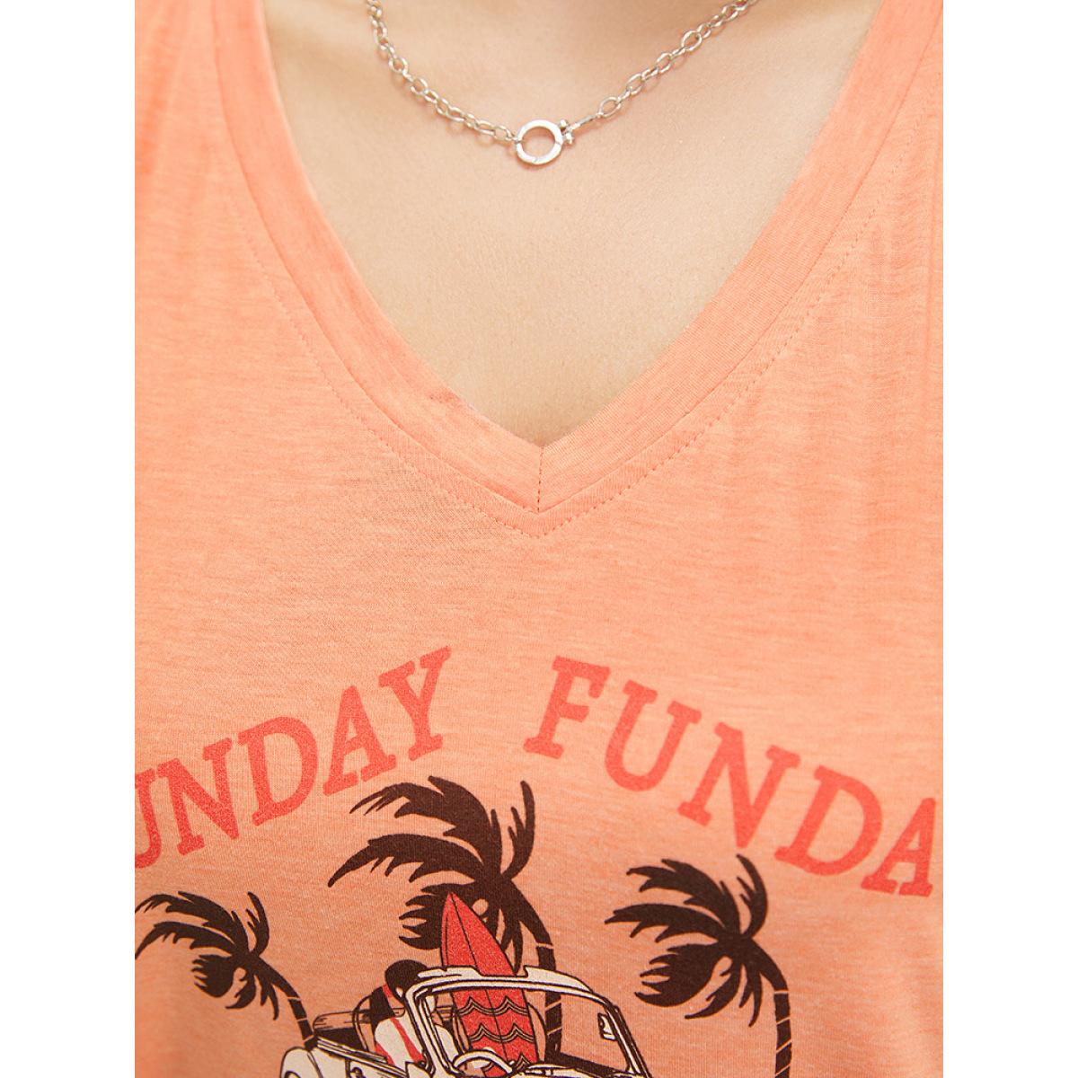 Plus Size Car & Letter Print V Neck Drop Shoulder T-shirt Coral Women Casual Tropical Dailywear T-shirts BloomChic 12/L Product Image