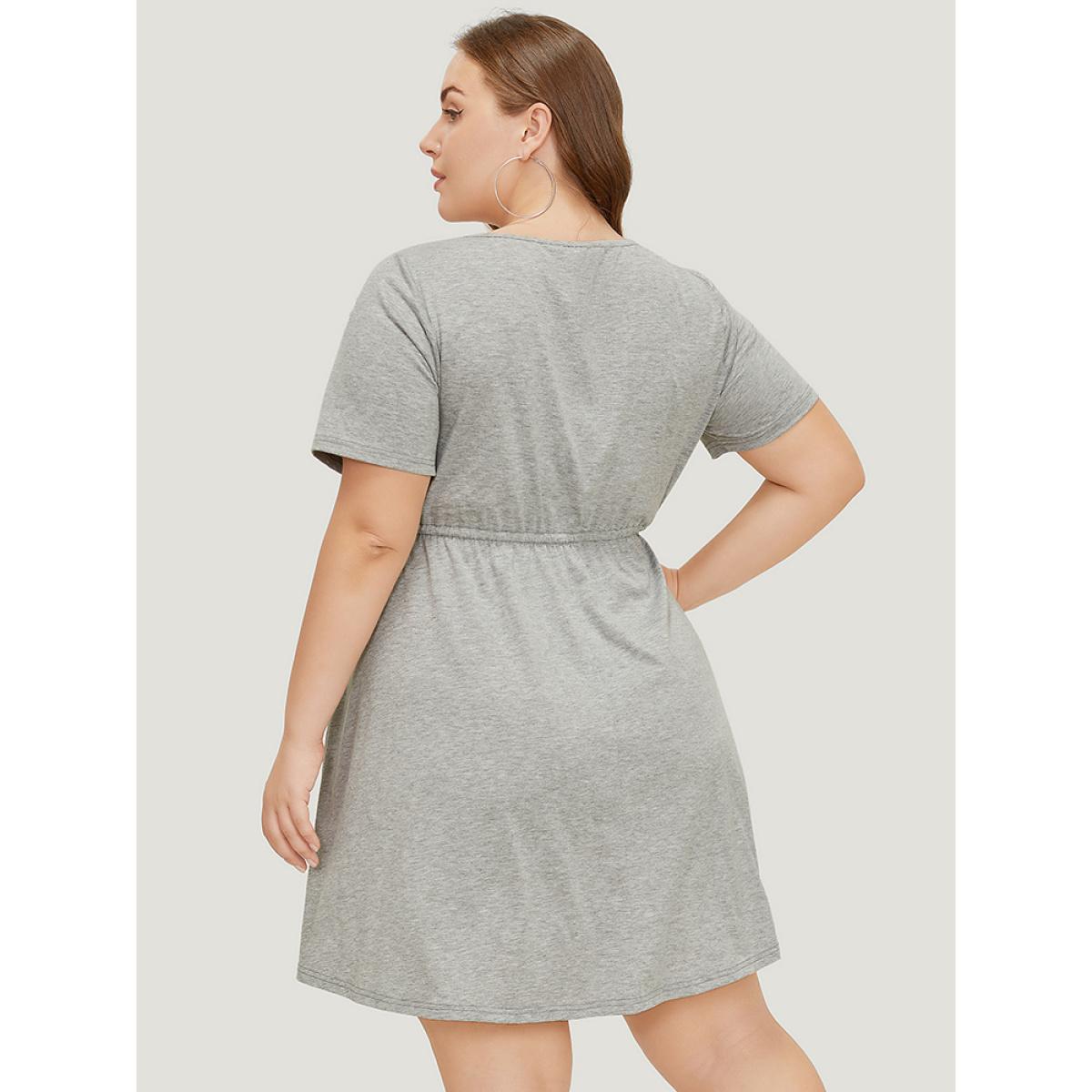 Plus Size Plain Lace Batwing Sleeve Pocket Gathered Dress DimGray Women Casual Gathered Round Neck Short sleeve Curvy Knee Dress BloomChic 28/5X