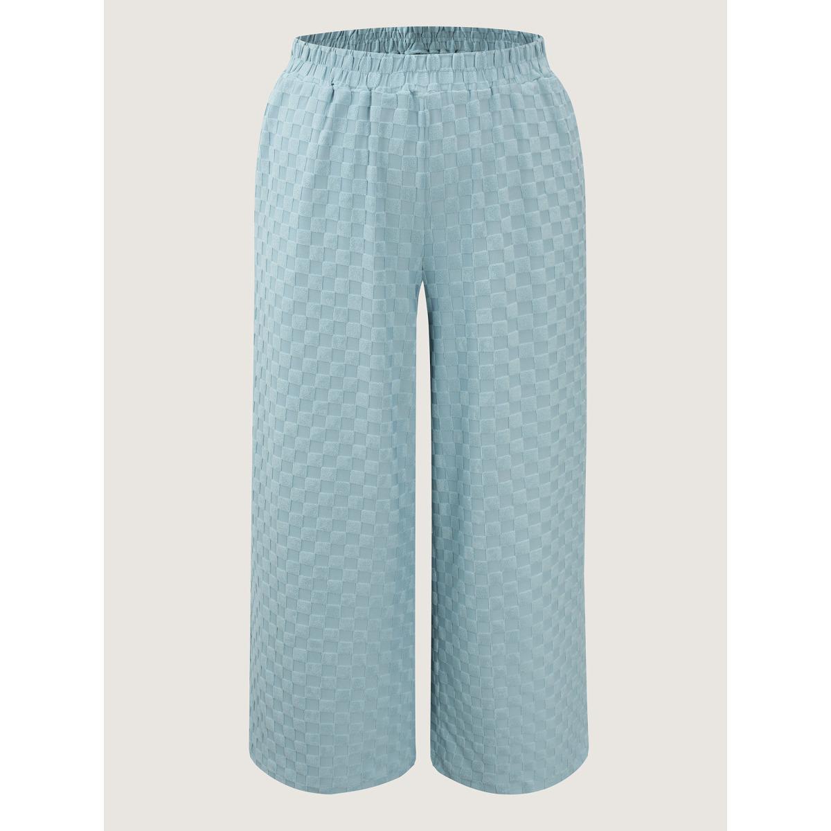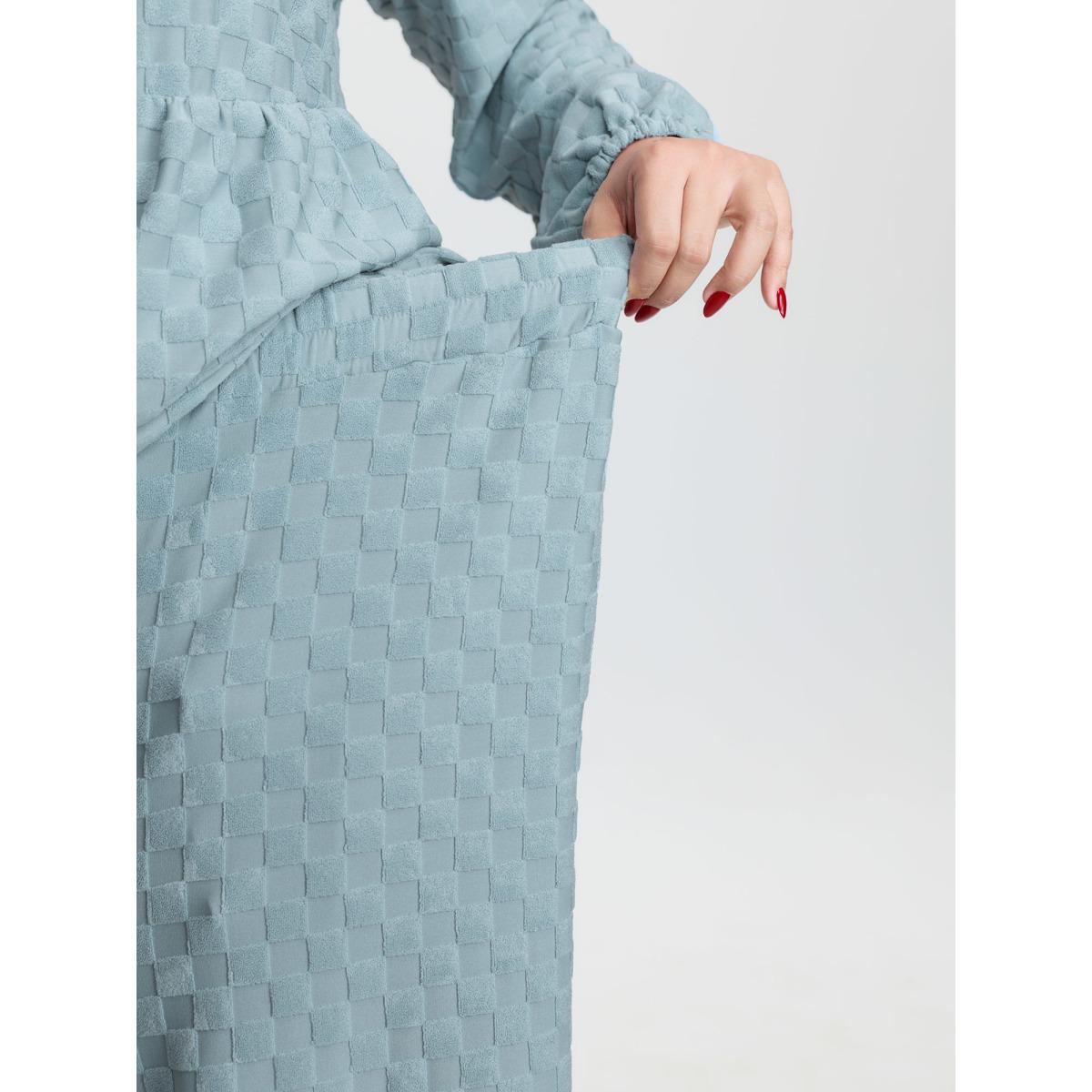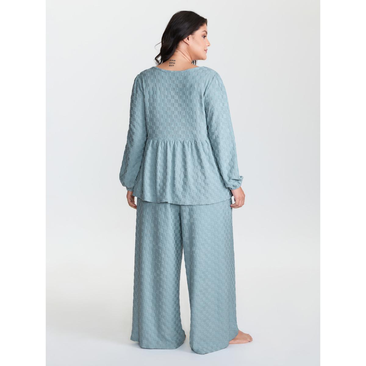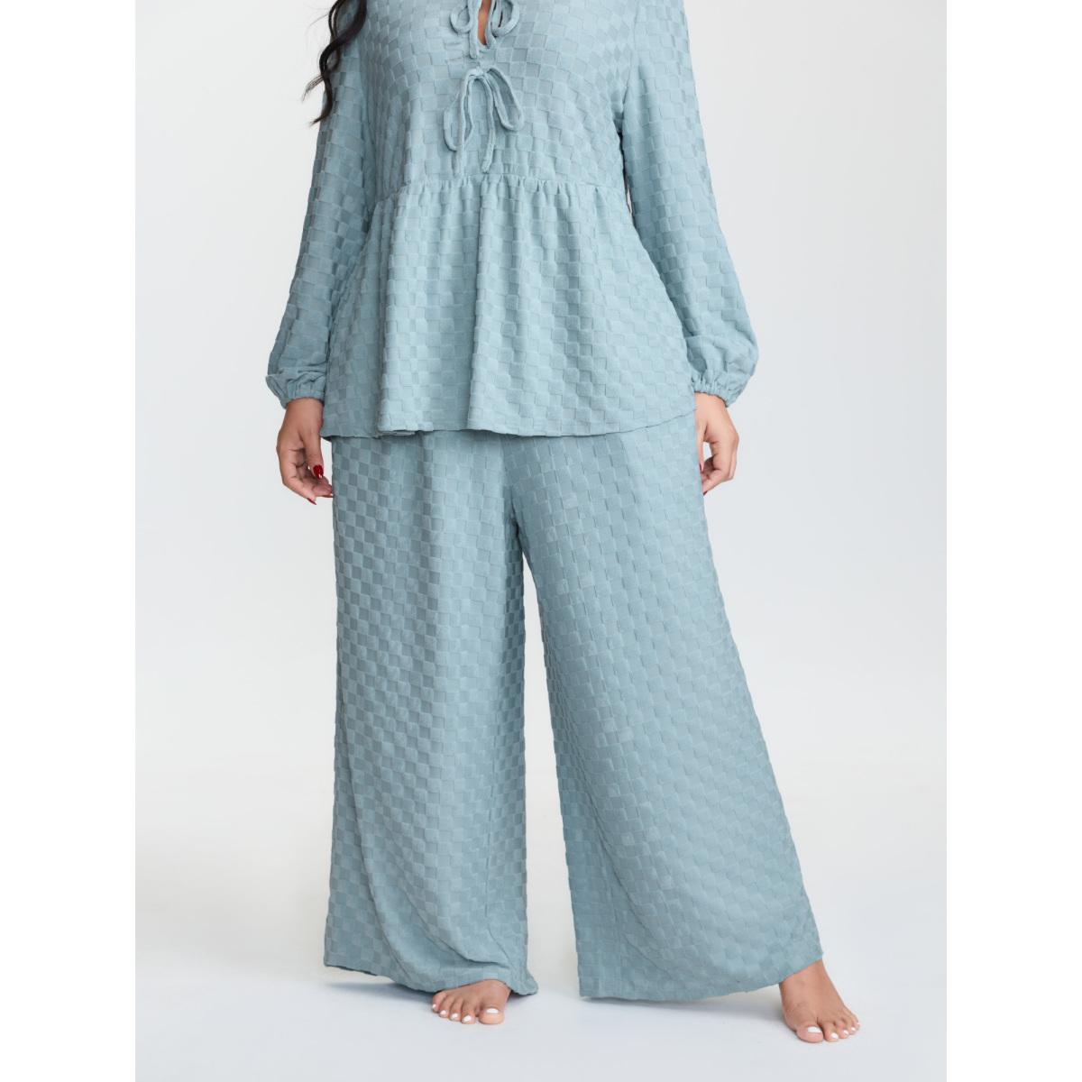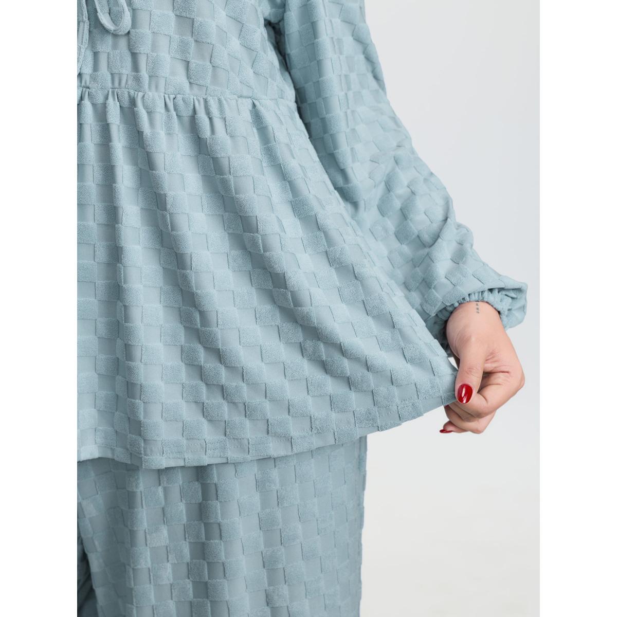 Plus Size Checkered Textured Co-ord Lounge Set Women LightBlue Tie knot Extra Long Sleeve V-neck Leisure Loungewear Sets BloomChic 30/6X