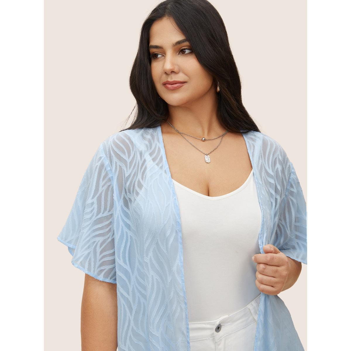 Plus Size Chiffon Texture Ruffles See Through Kimono Women LightBlue Elegant Texture Everyday Kimonos BloomChic 30/6X Product Image
