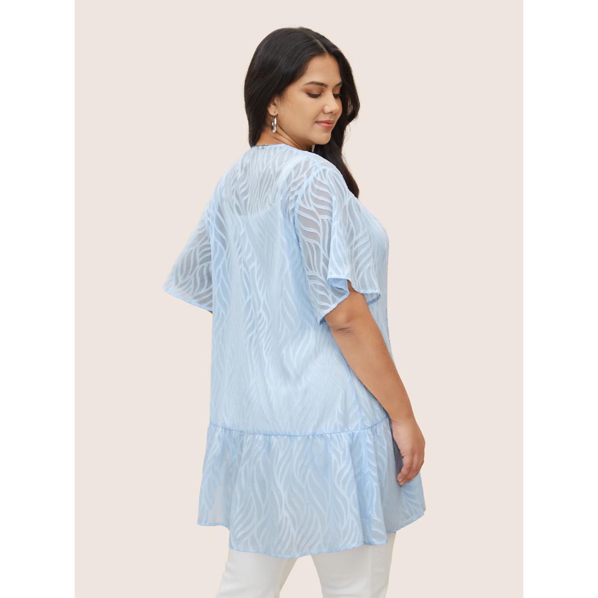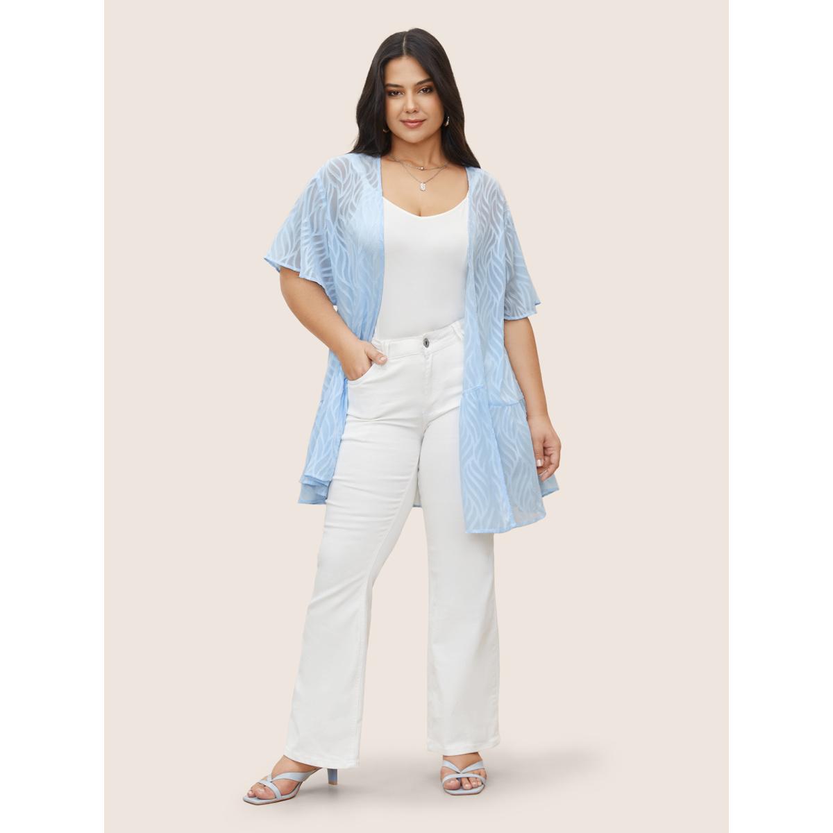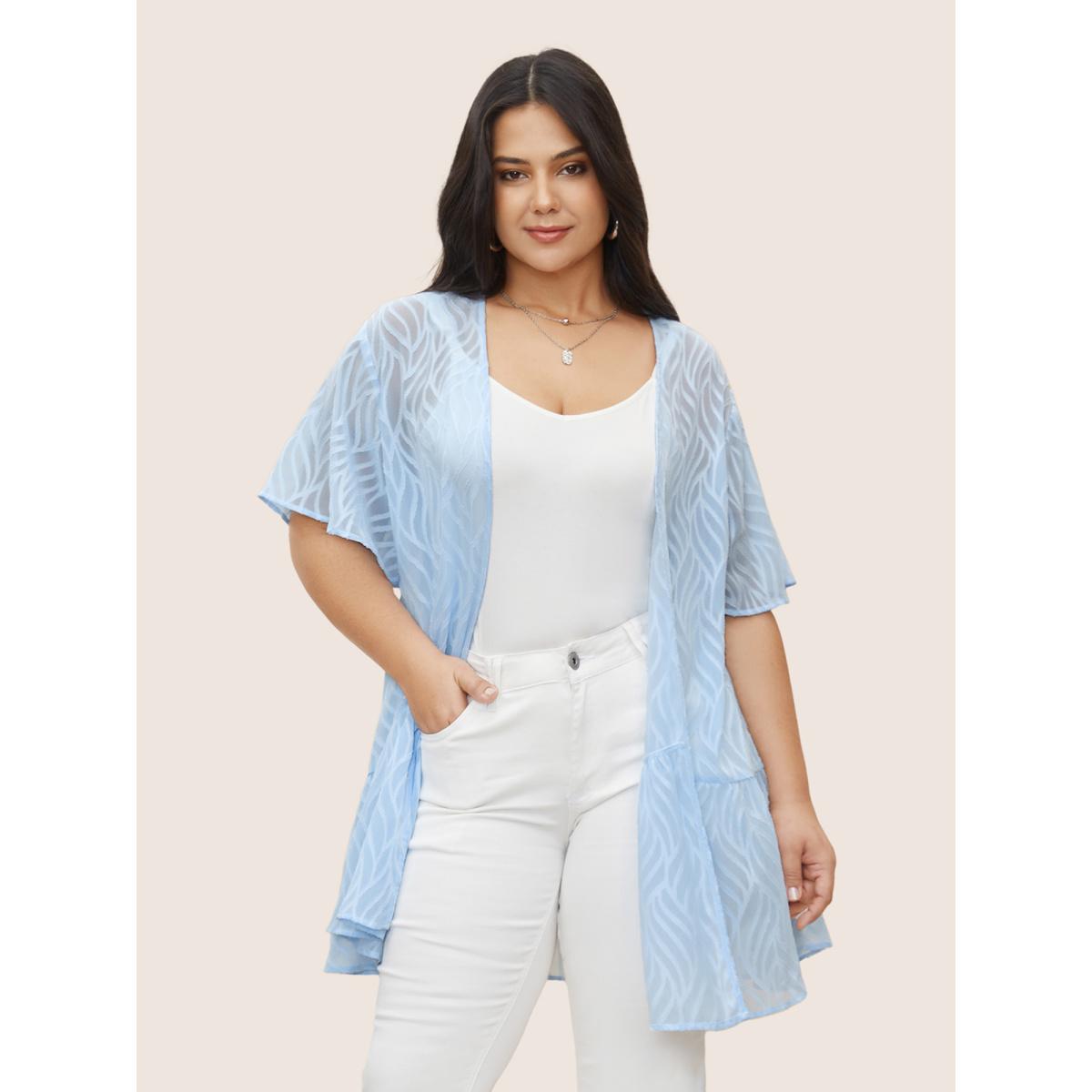 Plus Size Chiffon Texture Ruffles See Through Kimono Women LightBlue Elegant Texture Everyday Kimonos BloomChic 30/6X