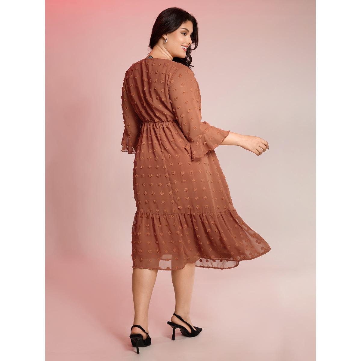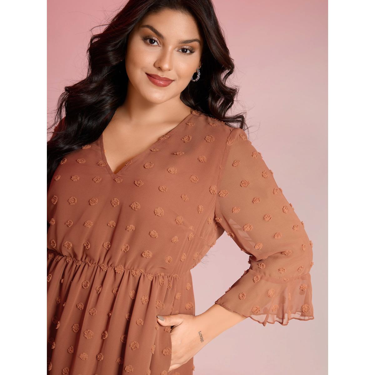 Plus Size Chiffon Textured Semi Sheer Maxi Dress Coral Women Timeless Non V-neck Elbow-length sleeve Curvy BloomChic 18-20/2X Product Image