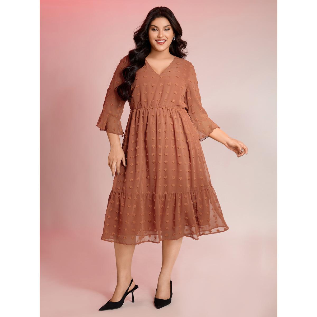 Plus Size Chiffon Textured Semi Sheer Maxi Dress Coral Women Timeless Non V-neck Elbow-length sleeve Curvy BloomChic 18-20/2X